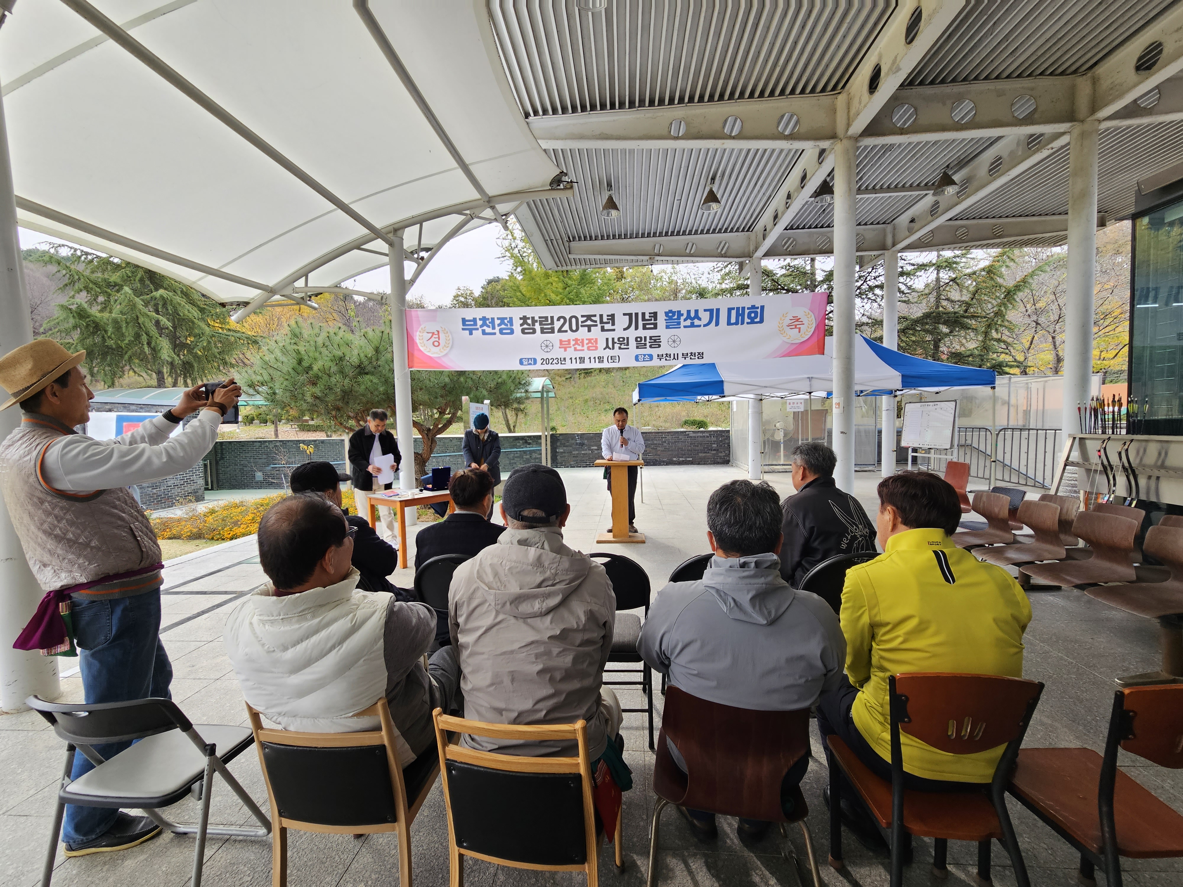 소속된 활터의 창립20주년 기념으로 인근의 활터의 사우들을 초대하여 같이 활쏘기대회를 하는 날이다.