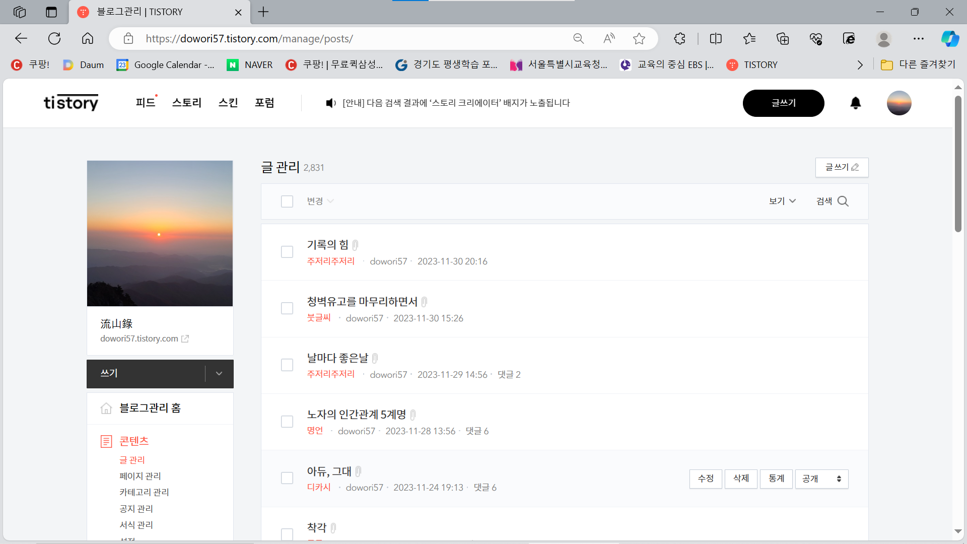 그간 누적하여 포스팅한 글이 2,830여개가 되었고 조만간 3,000개가 될 것이다.