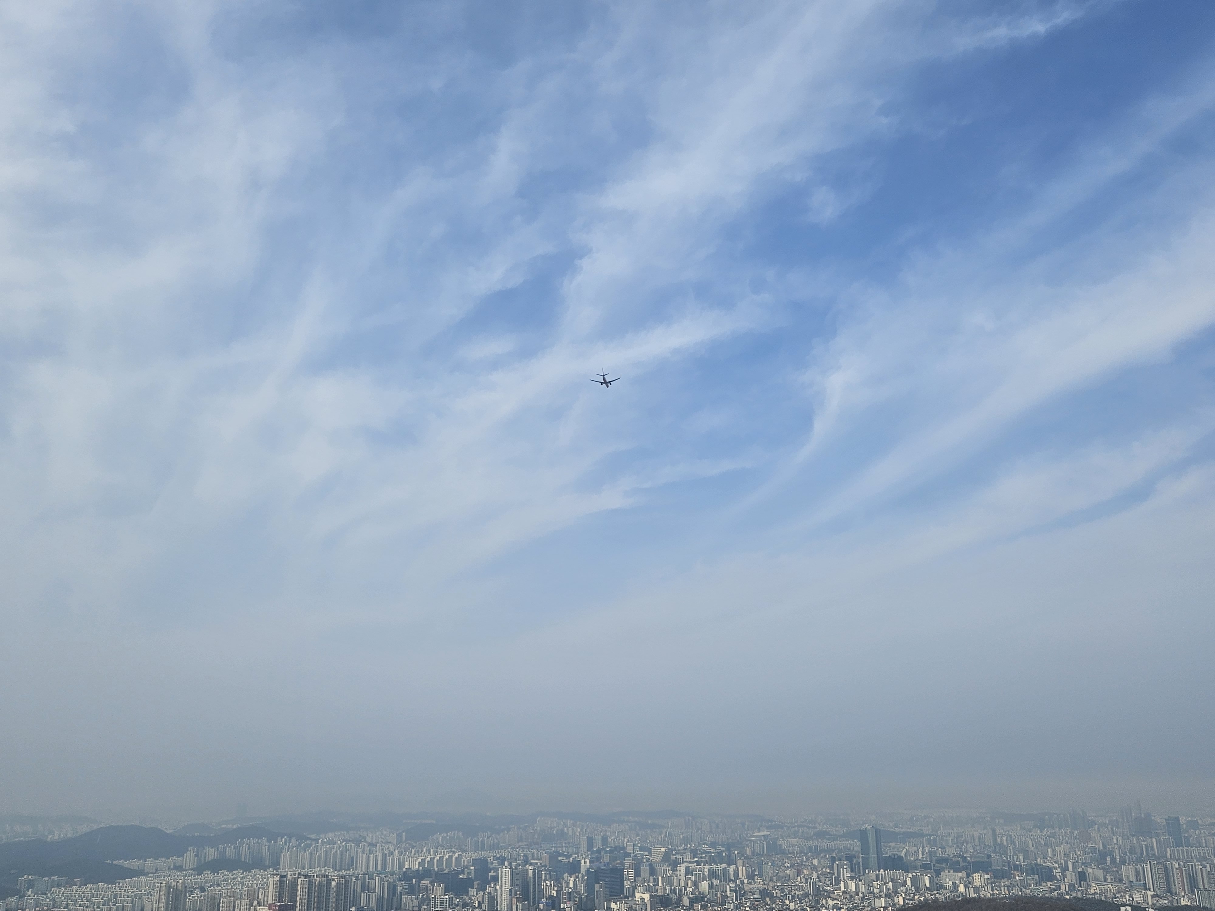 김포로 향하는 항로가 바로 머리위여서 수시로 비행기가 지나가는데,거의 5분간격으로 착륙을 한다.