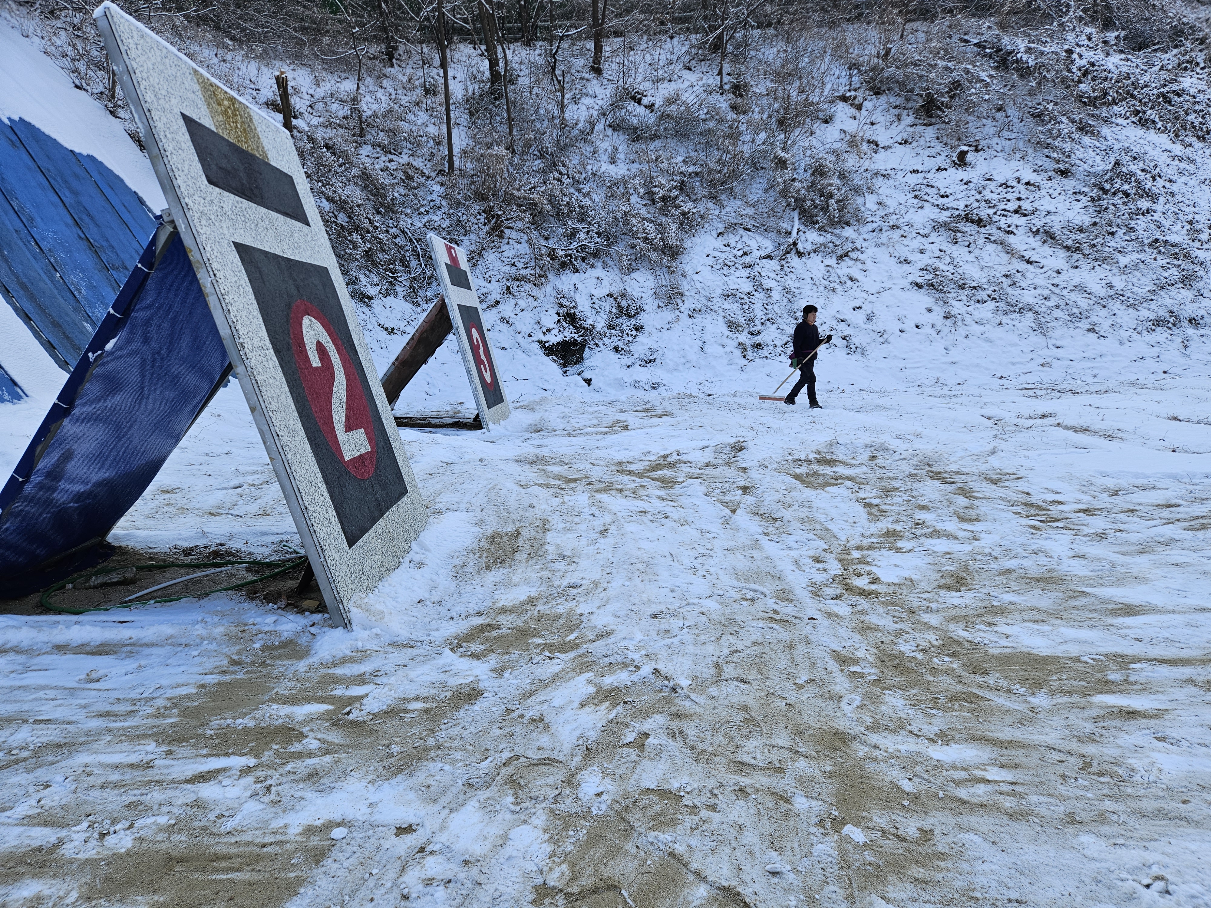 눈을 적당히 치우고 오가는 길도 만들고 다시 사대에 선다.