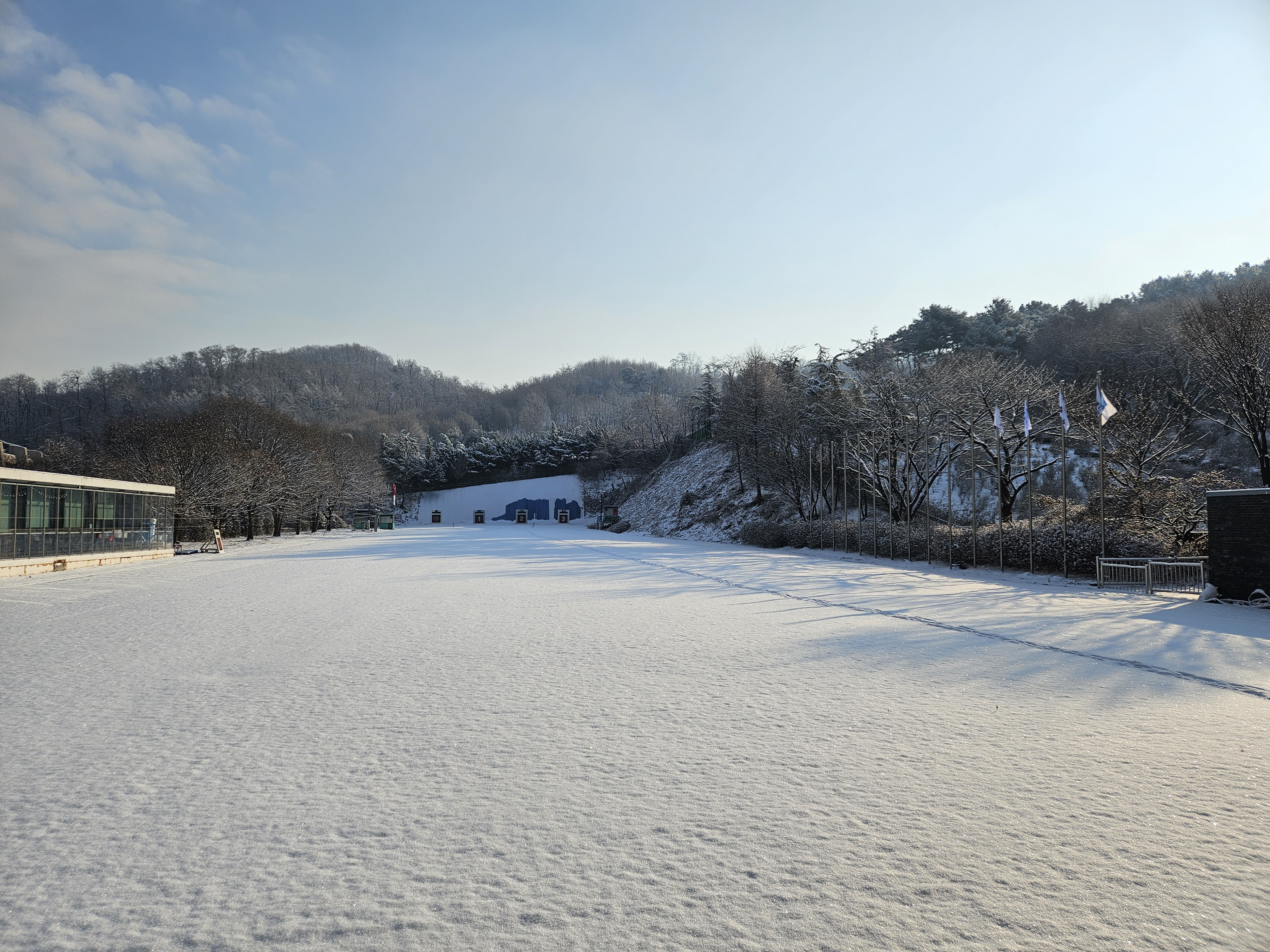 활터는 아무도 밟지않은 눈이 수북히 쌓여 잔디밭은 그야말로 눈밭이다.