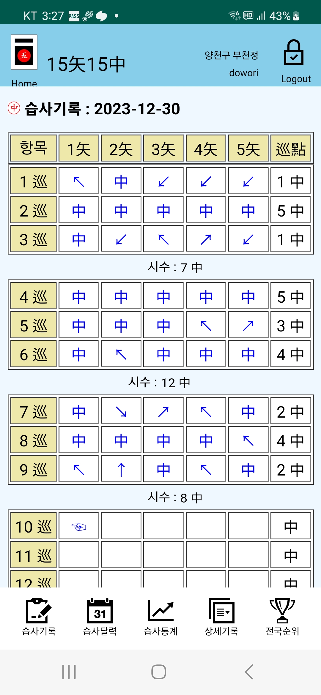 금년한해-내일 하루가 남았지만 -열심히 활을 쏘았고 연초부터 시작한 카운터에서 몰기는 39회를,