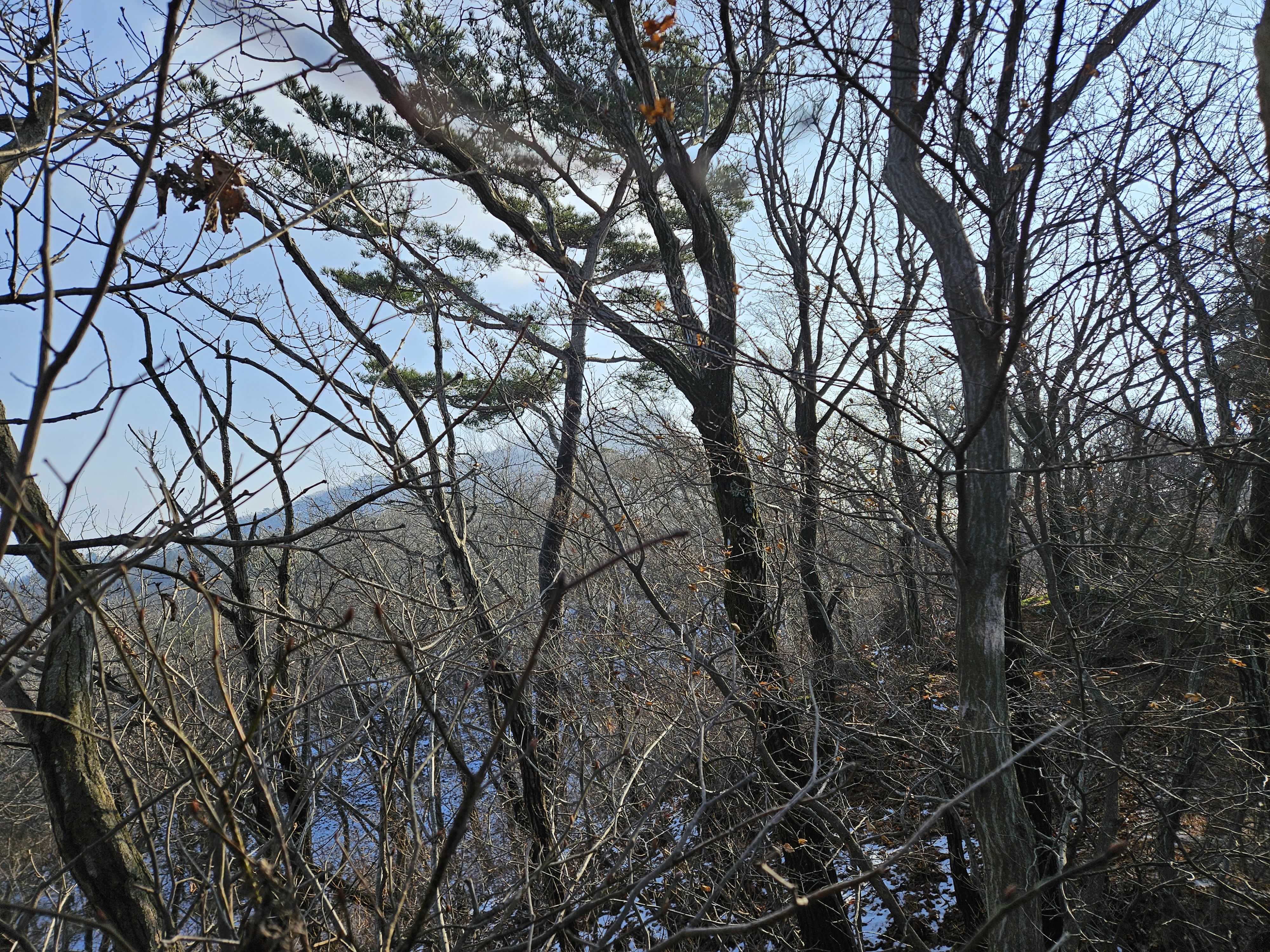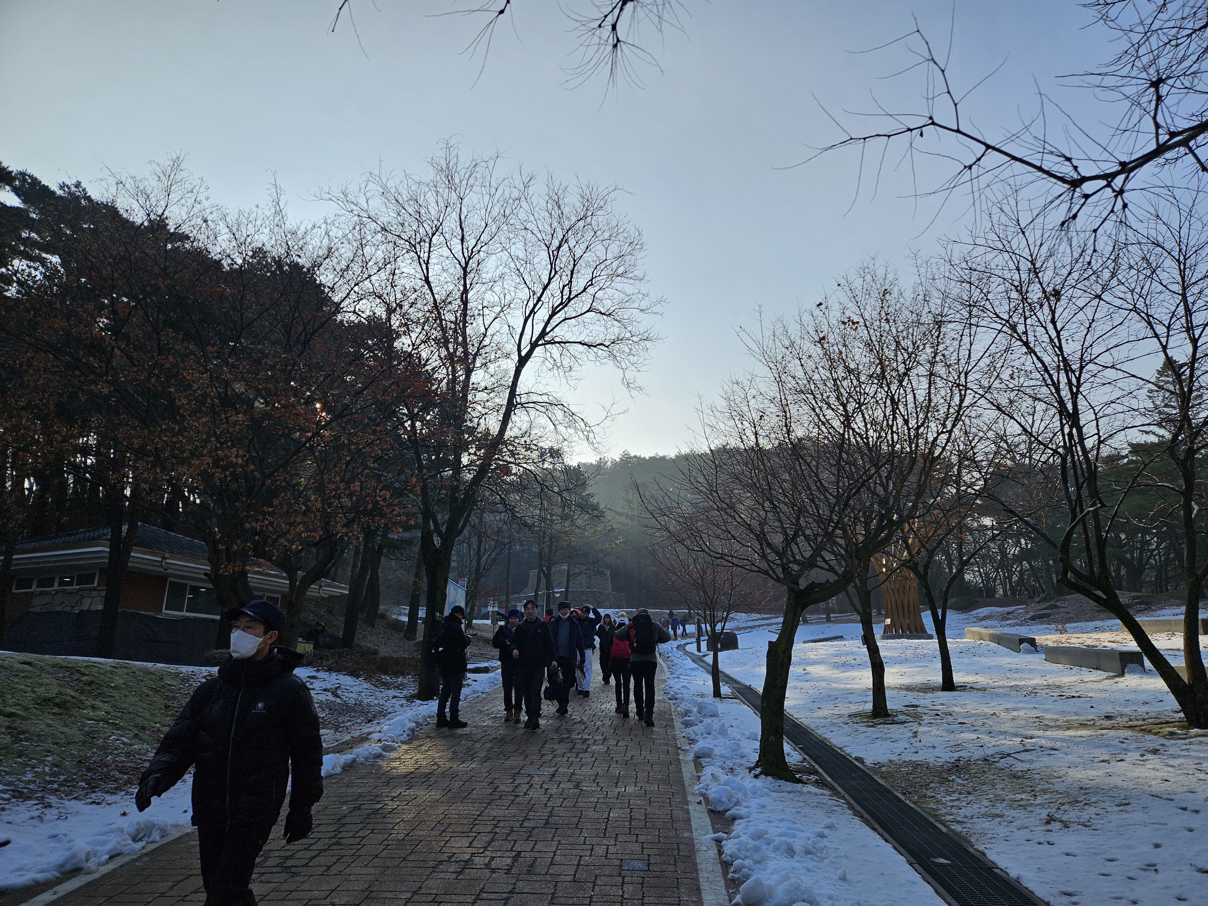 날씨가 포근하여 마치 어느 봄날인 듯하고 오르다보니 곳곳이 눈이 녹아 질척거린다.