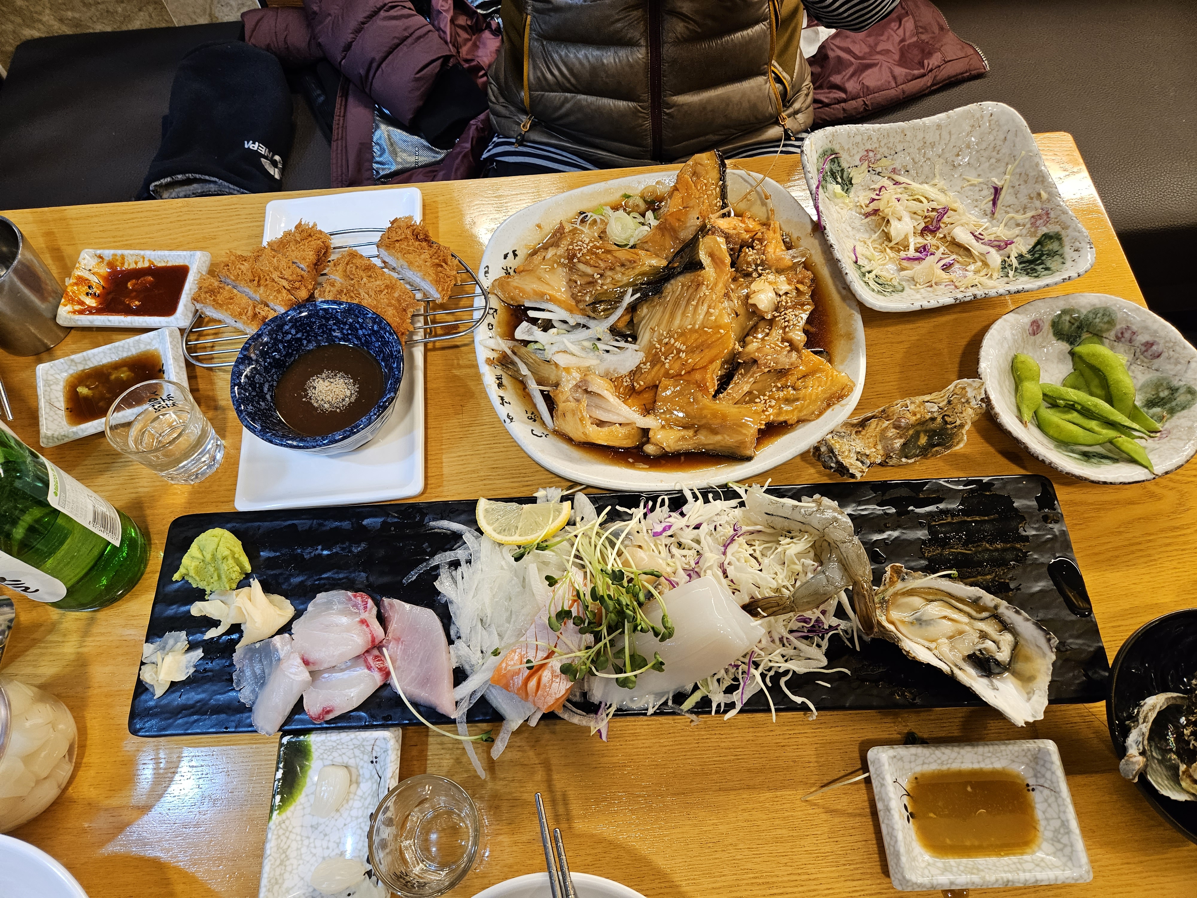 그리고는 송어머리구이와 돈가스가 나오니 제법 양은 많다.