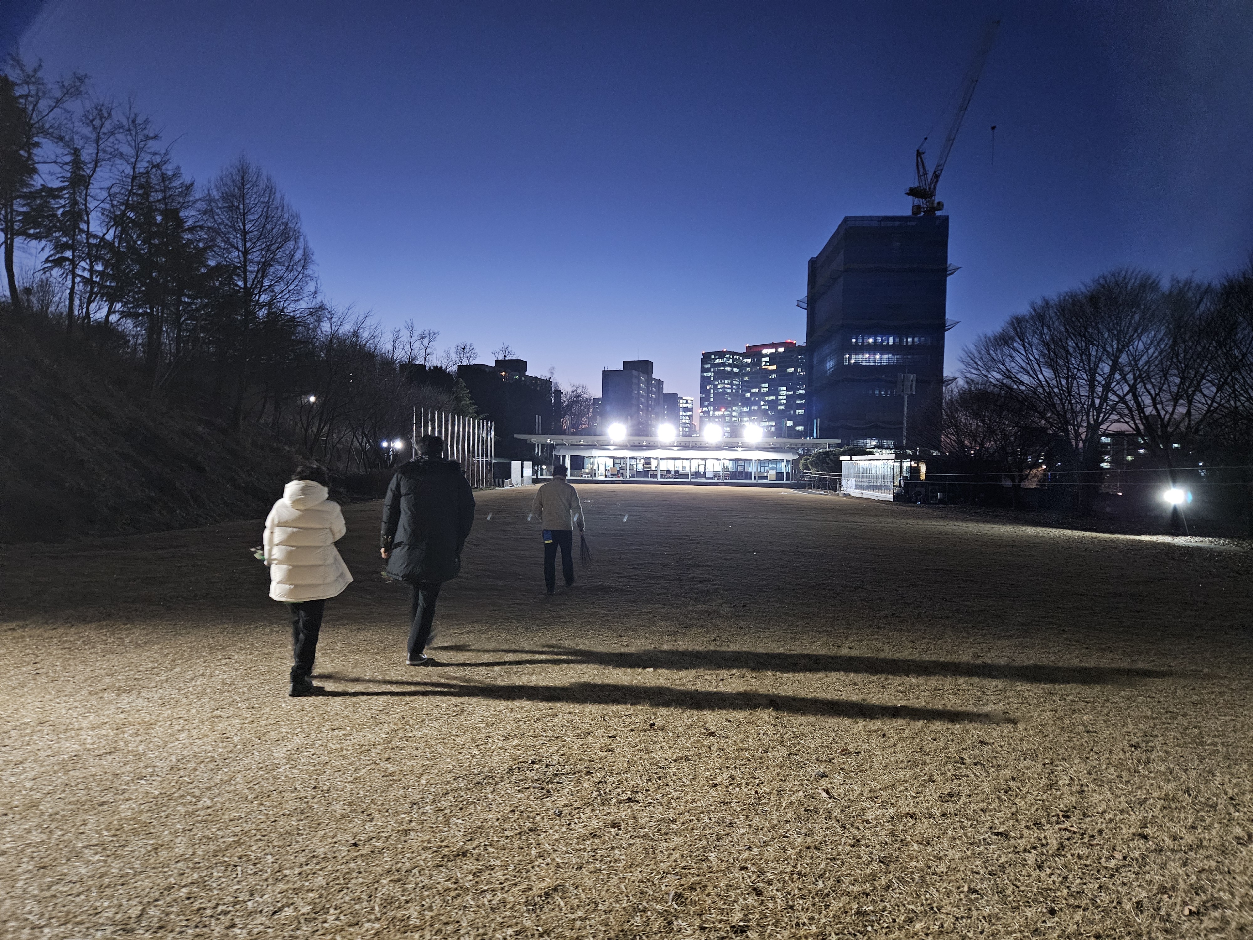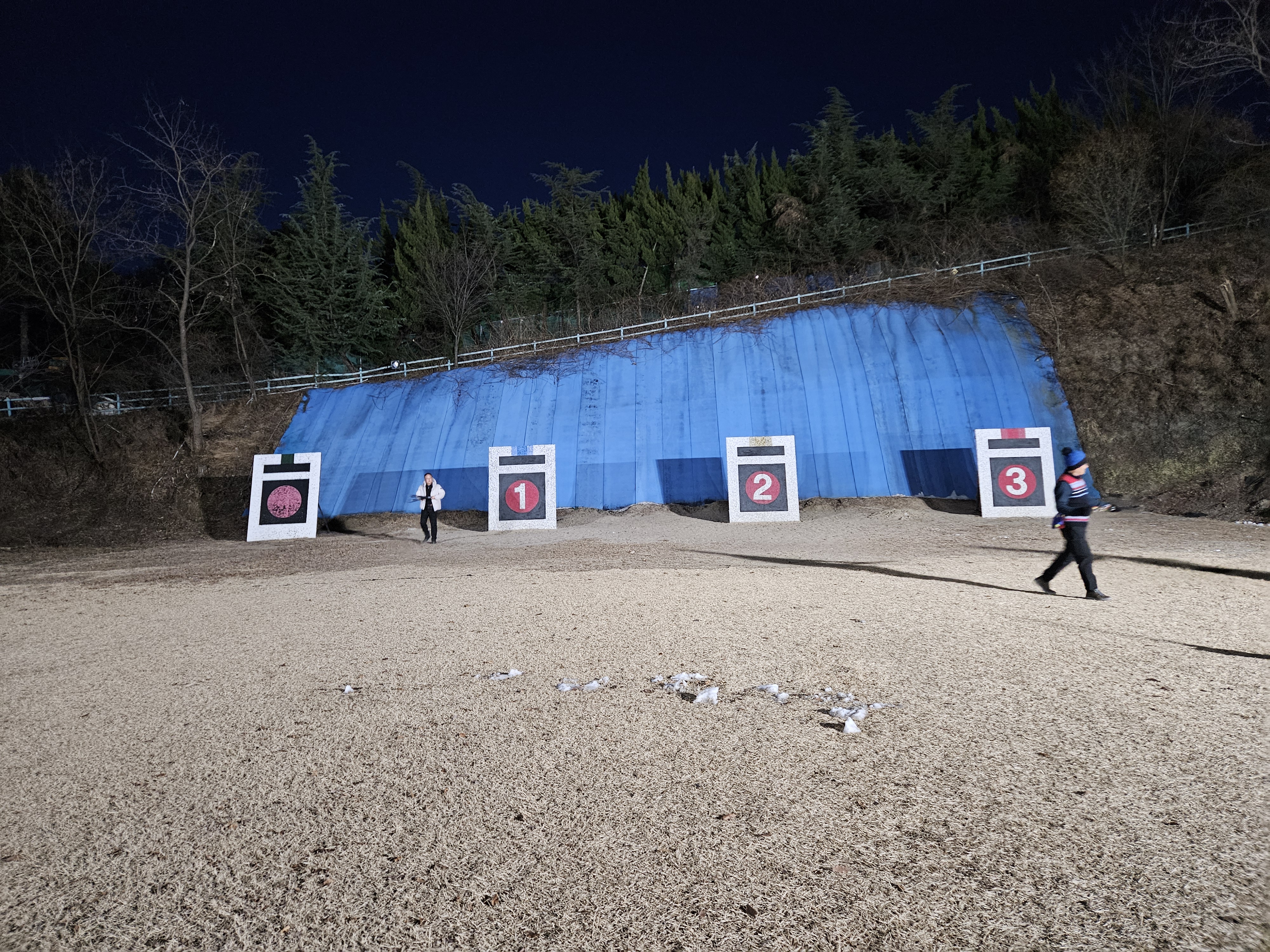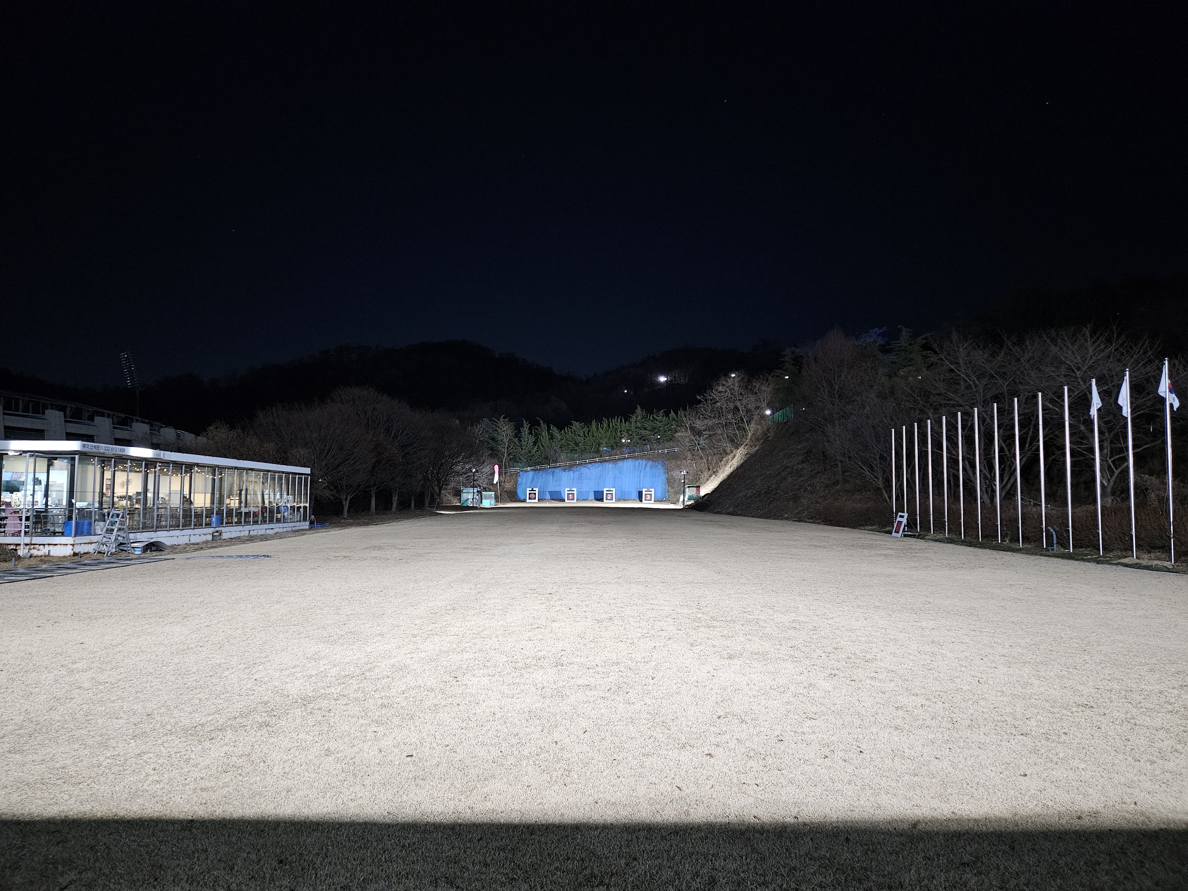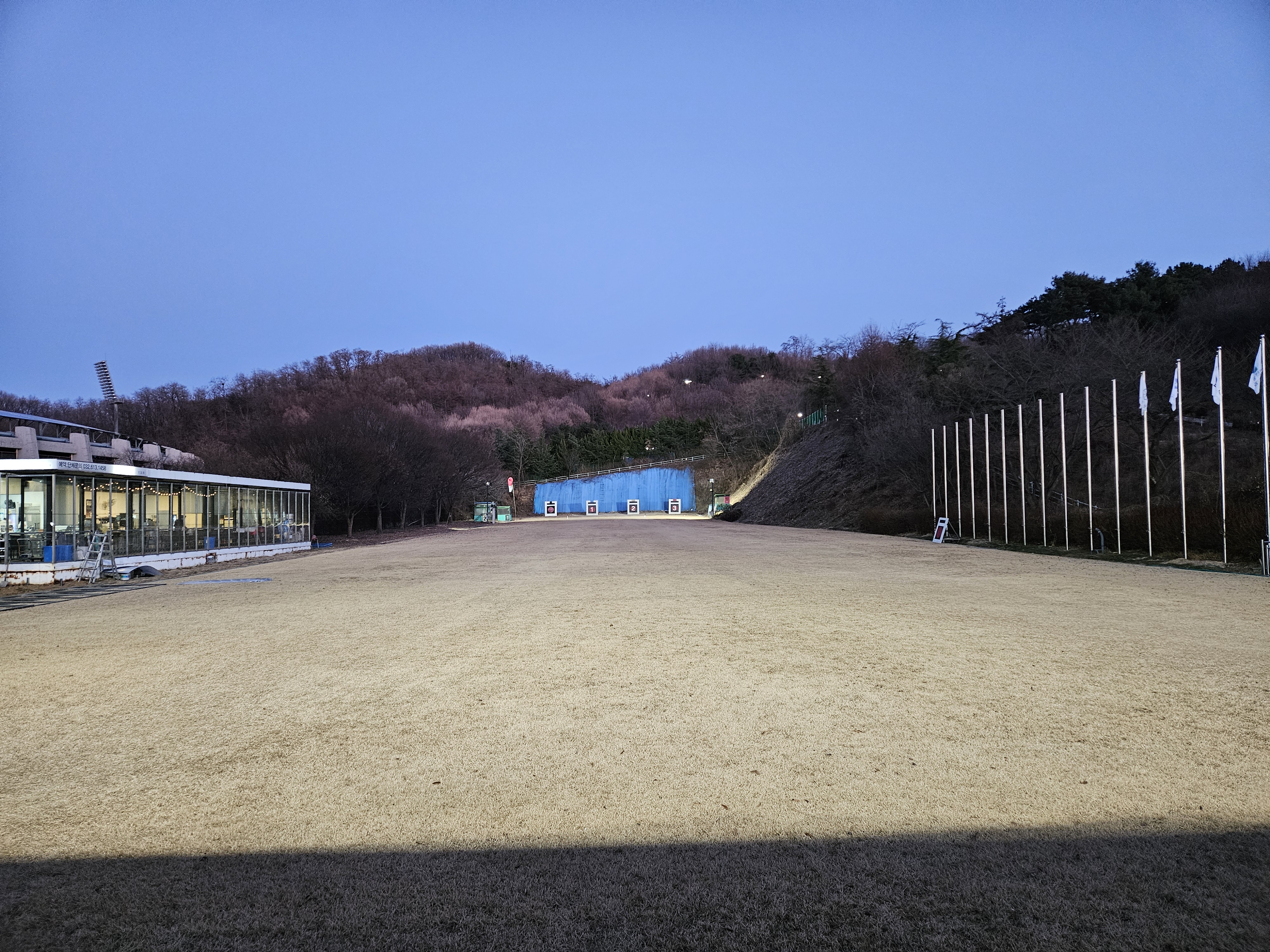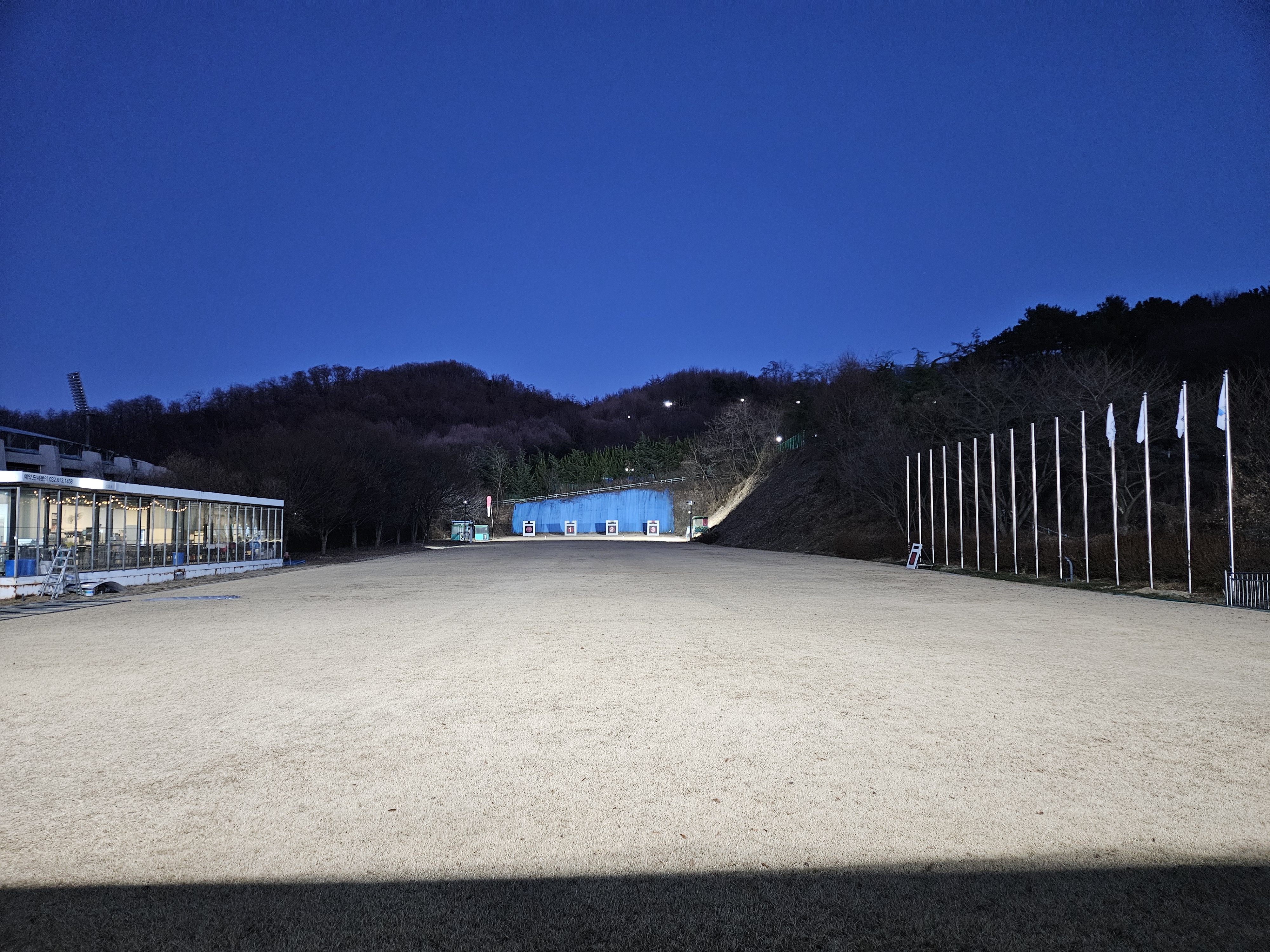 활터의 팬스 설치공사로 인해 주간에 습사를 금지하니 하는수 없이 공사가 종료된 저녁무렵에 사대에 오른다.