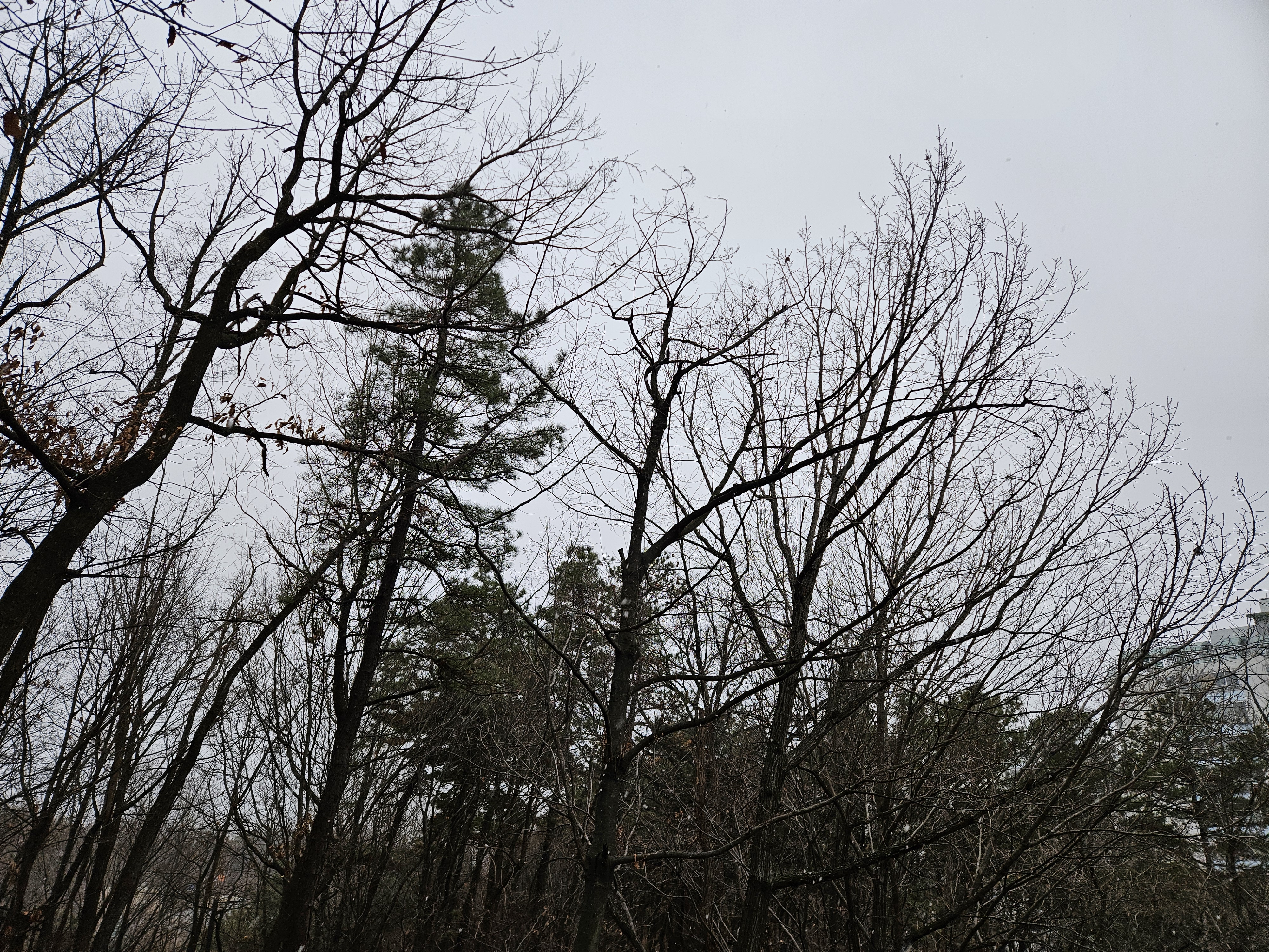 따스한 날씨에 오후부터 눈발이 비치더니 시간이 지나면서 하늘을 덮어오는 눈이다.