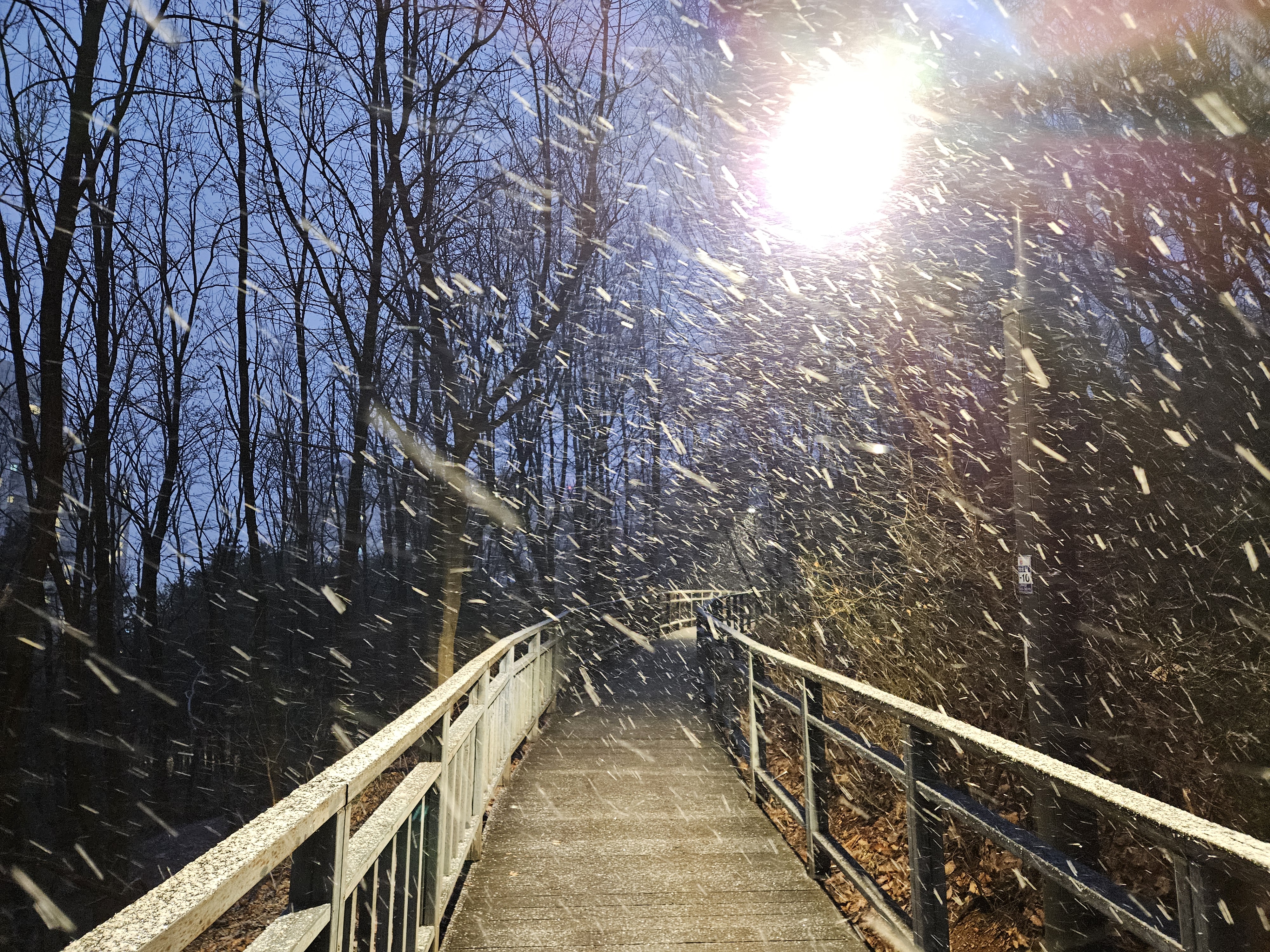 가로등 빛을 받아 내리는 눈이 핸드폰카메라에서도 멋지게 촬영이 된다.