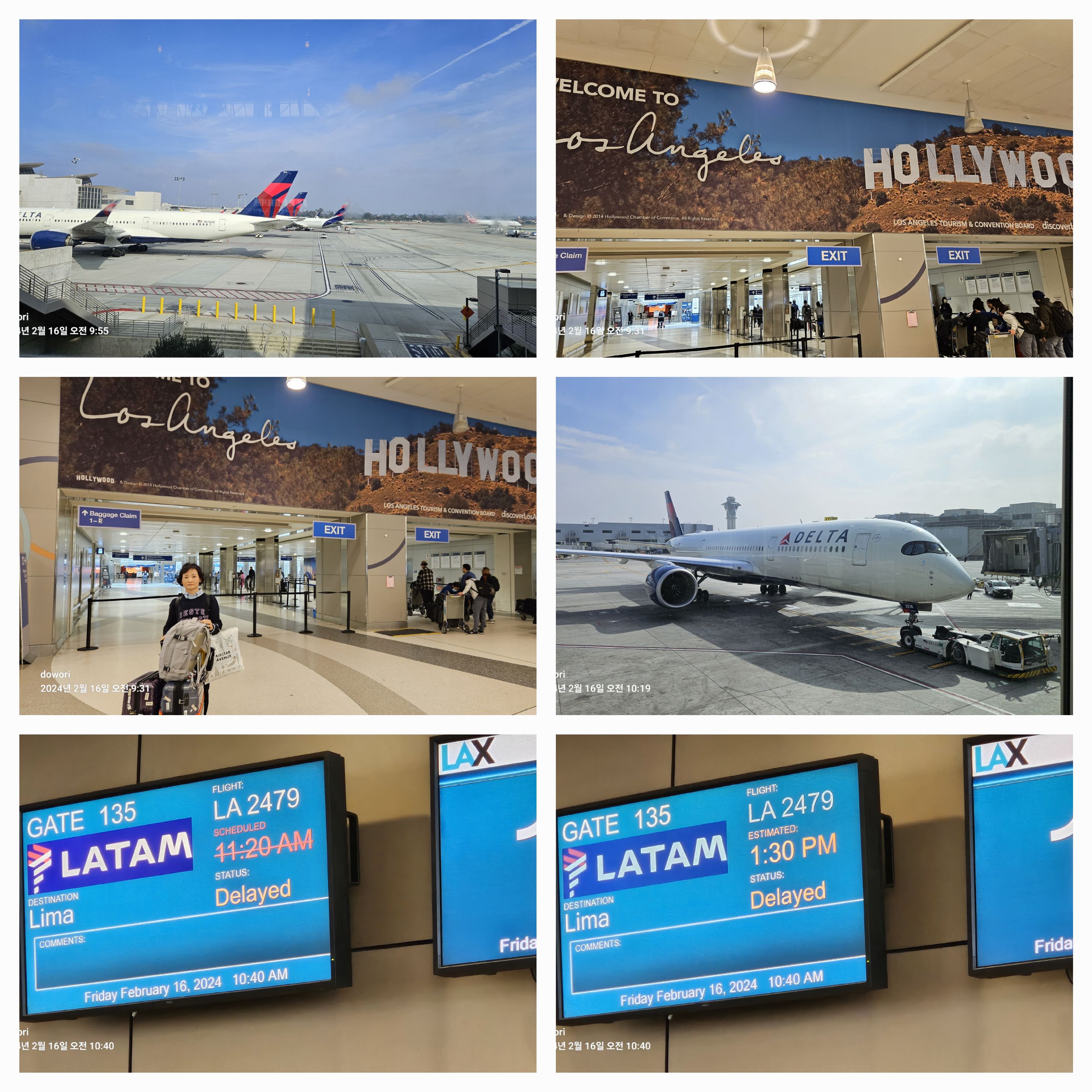 10시간 30분을 날아 LA에 도착하였는데 여전히 2월16일 아침 8시전이다.