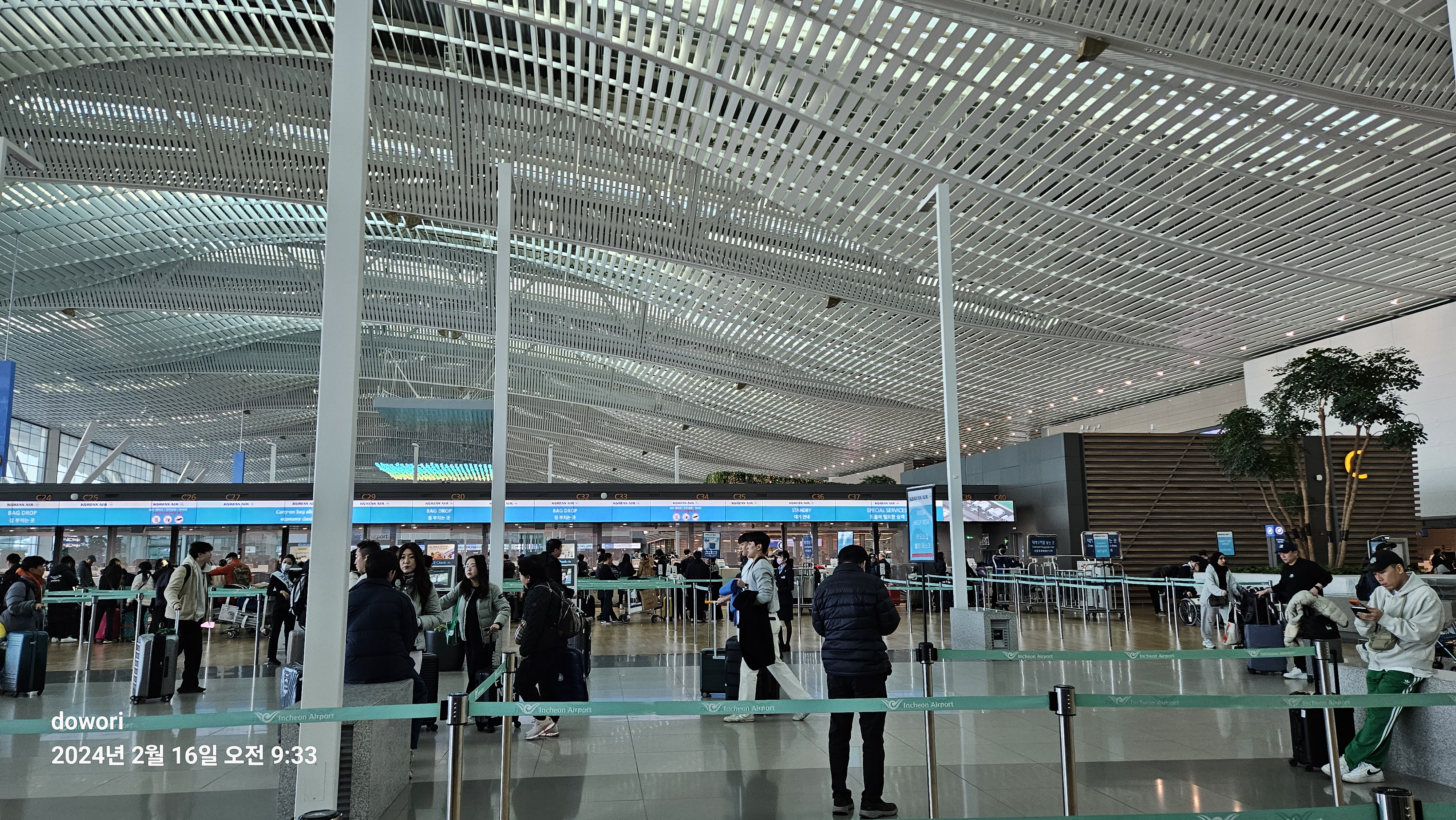 티켓팅후 캐리어를 체크하고 단체팀을 조우한다.