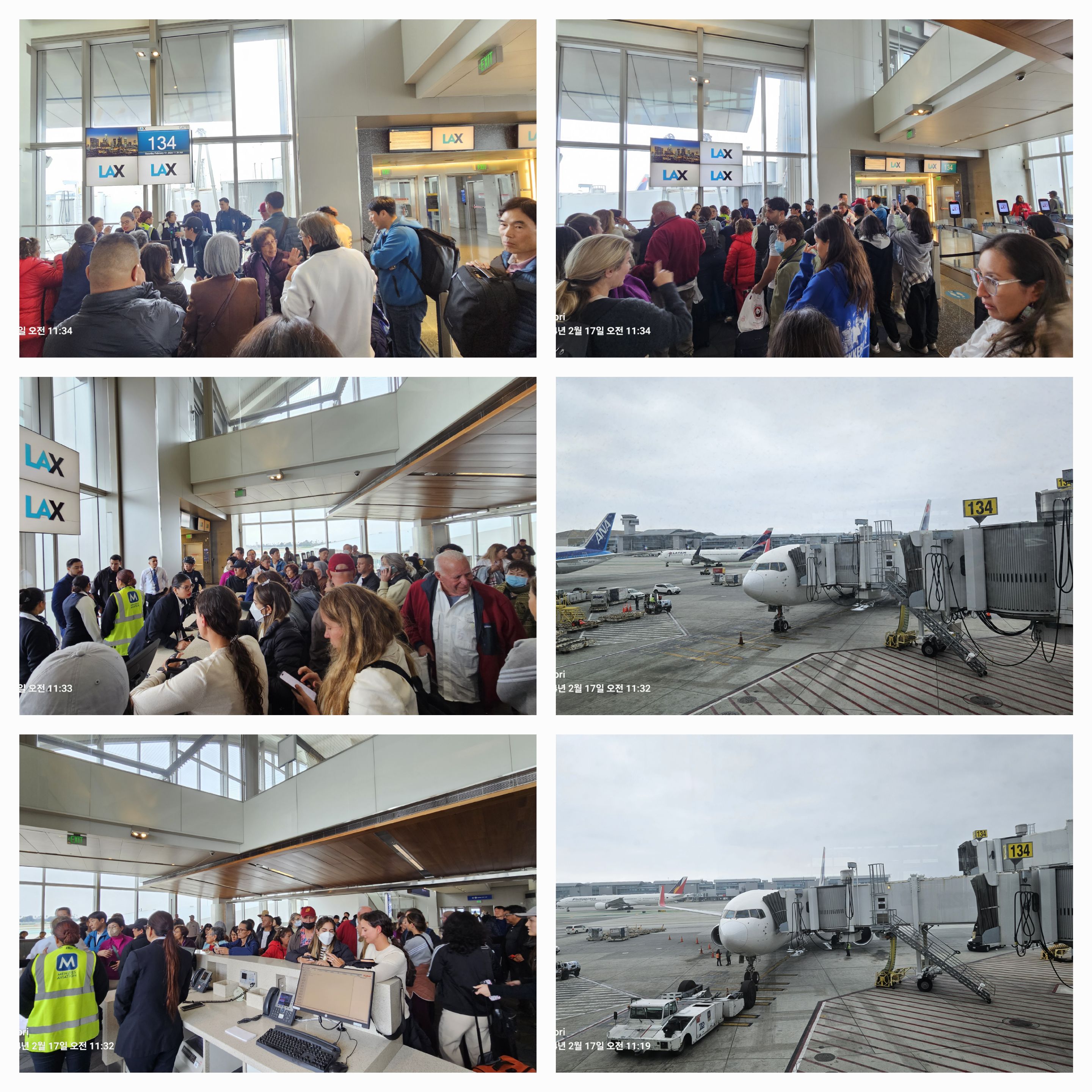 어제하루종일 한일은 아침에 LA에 도착하여 리마로 트랜짓하였는데 항공편이 지연되고 또 이륙하려다 고장으로 브릿지로