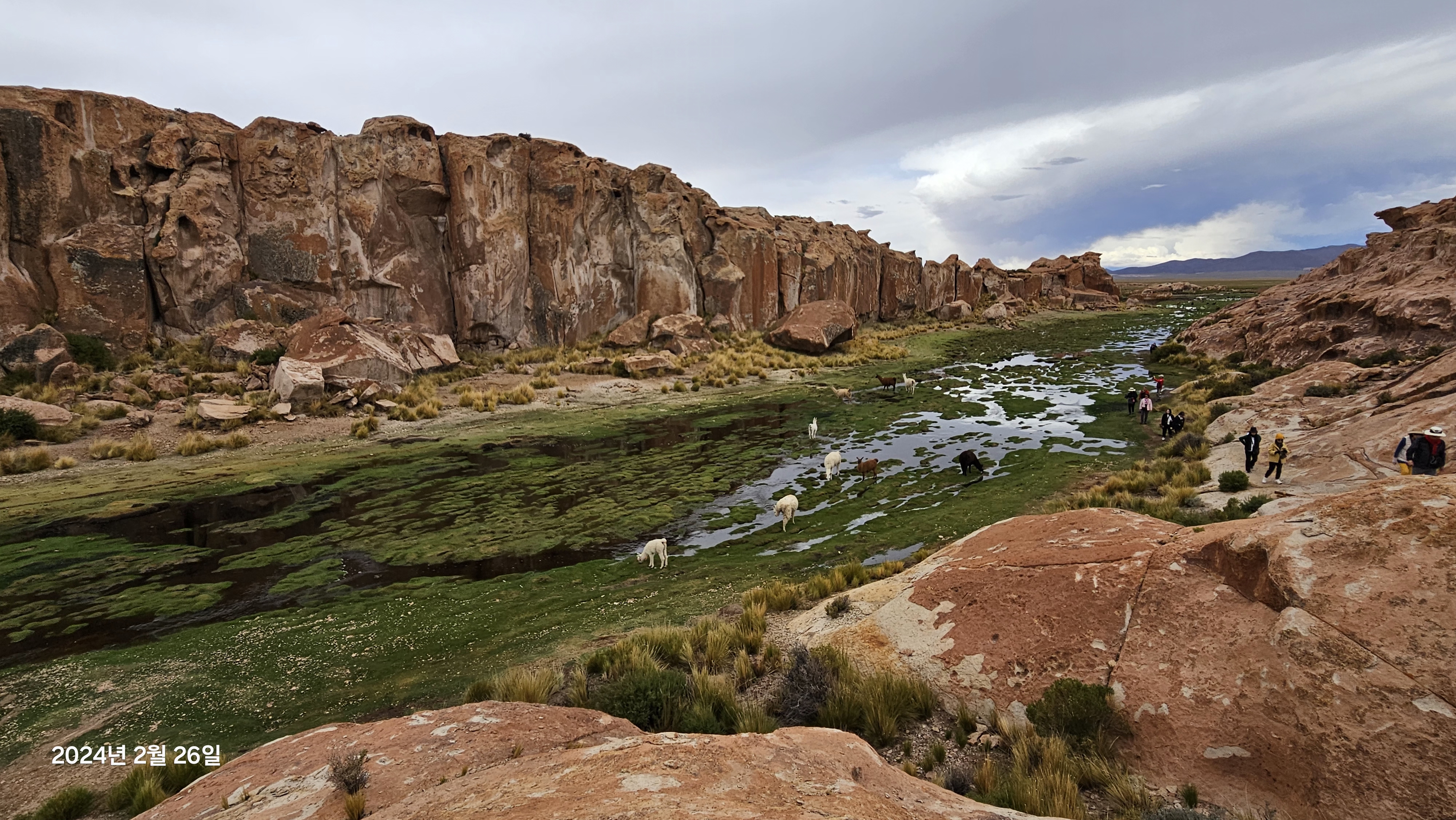 라구나빈또라는 지역에서 야마와 플라맹고를 구경하고는 기암괴석이 어우러진 이탈리아빼르디다를 둘러본다.