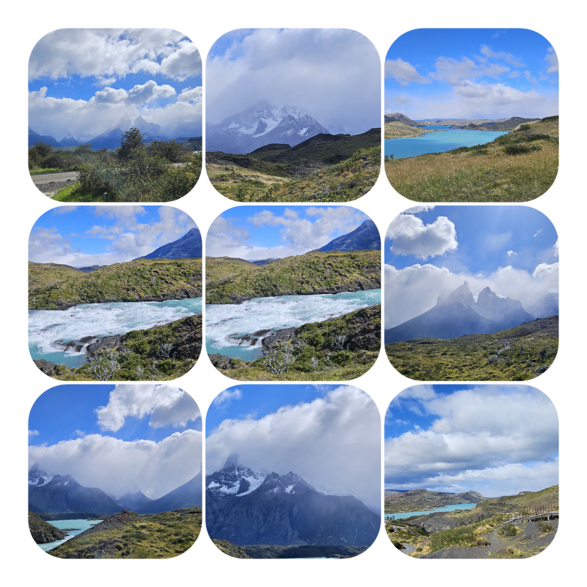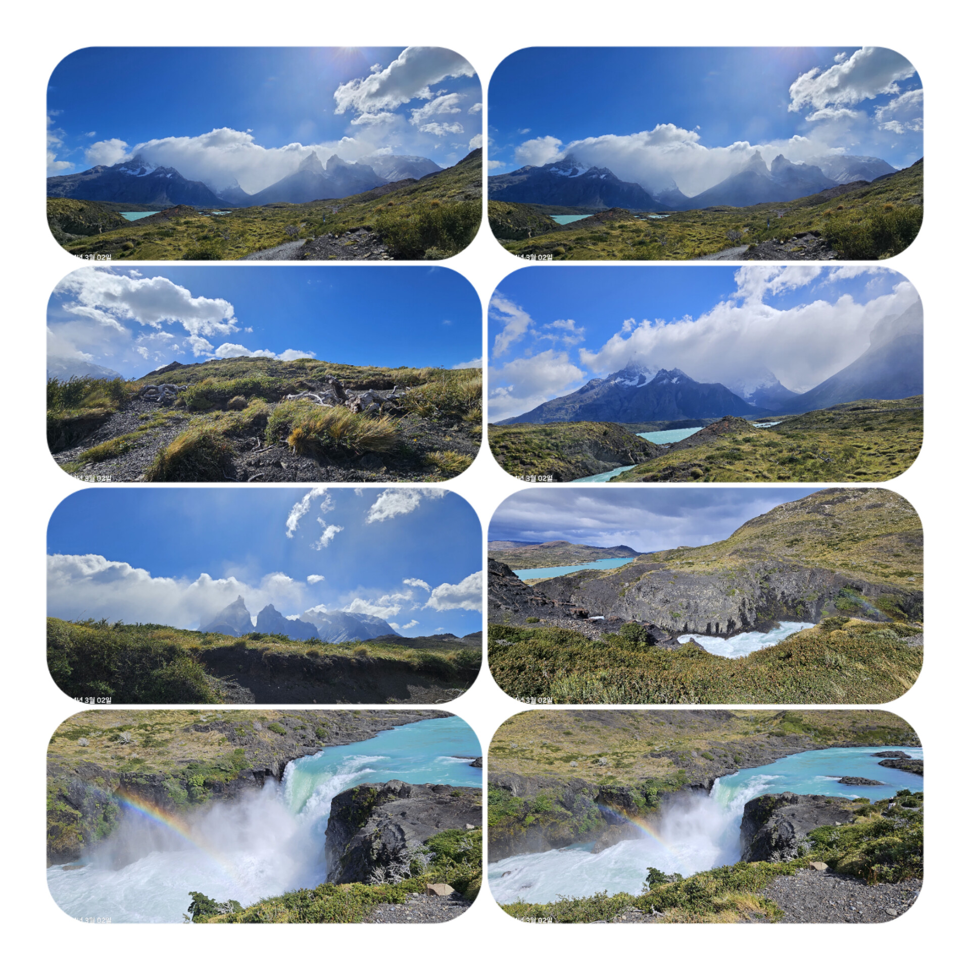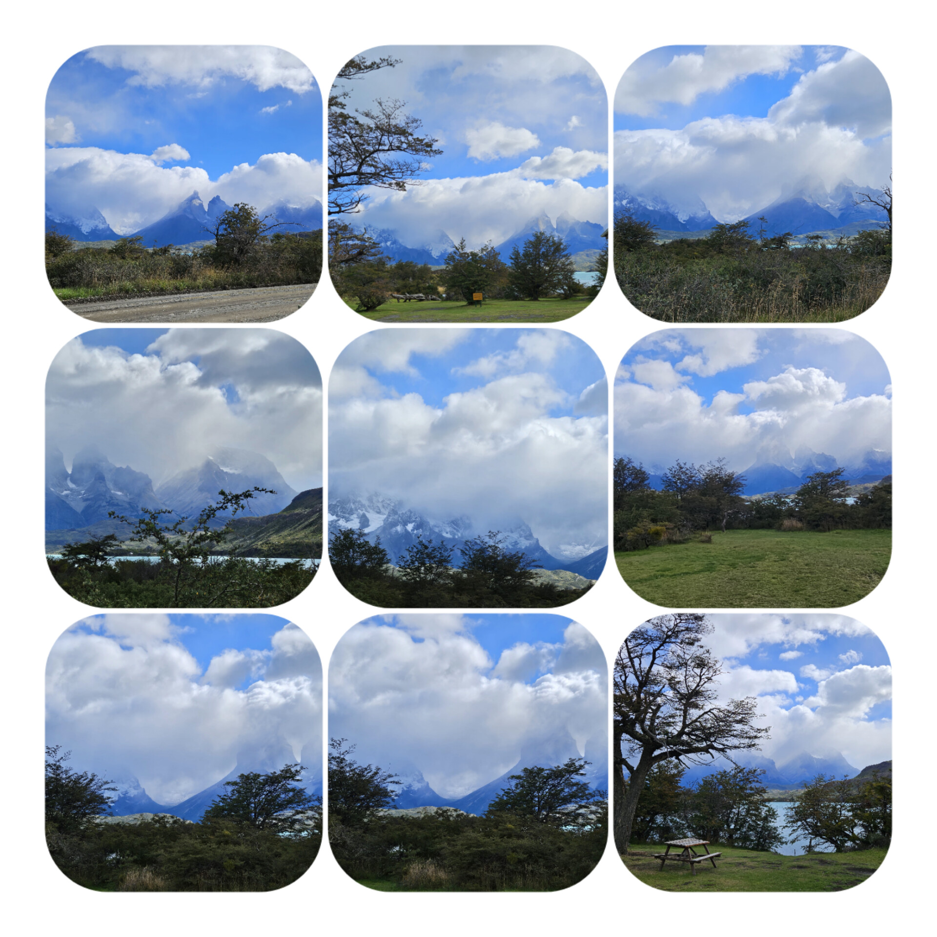 멋진 풍경을 가슴속에 남길 토레스 델 파이네를 뒤로하는데 세개의 봉우리를 방향을 바꿔가며 바라보니 장관이다.