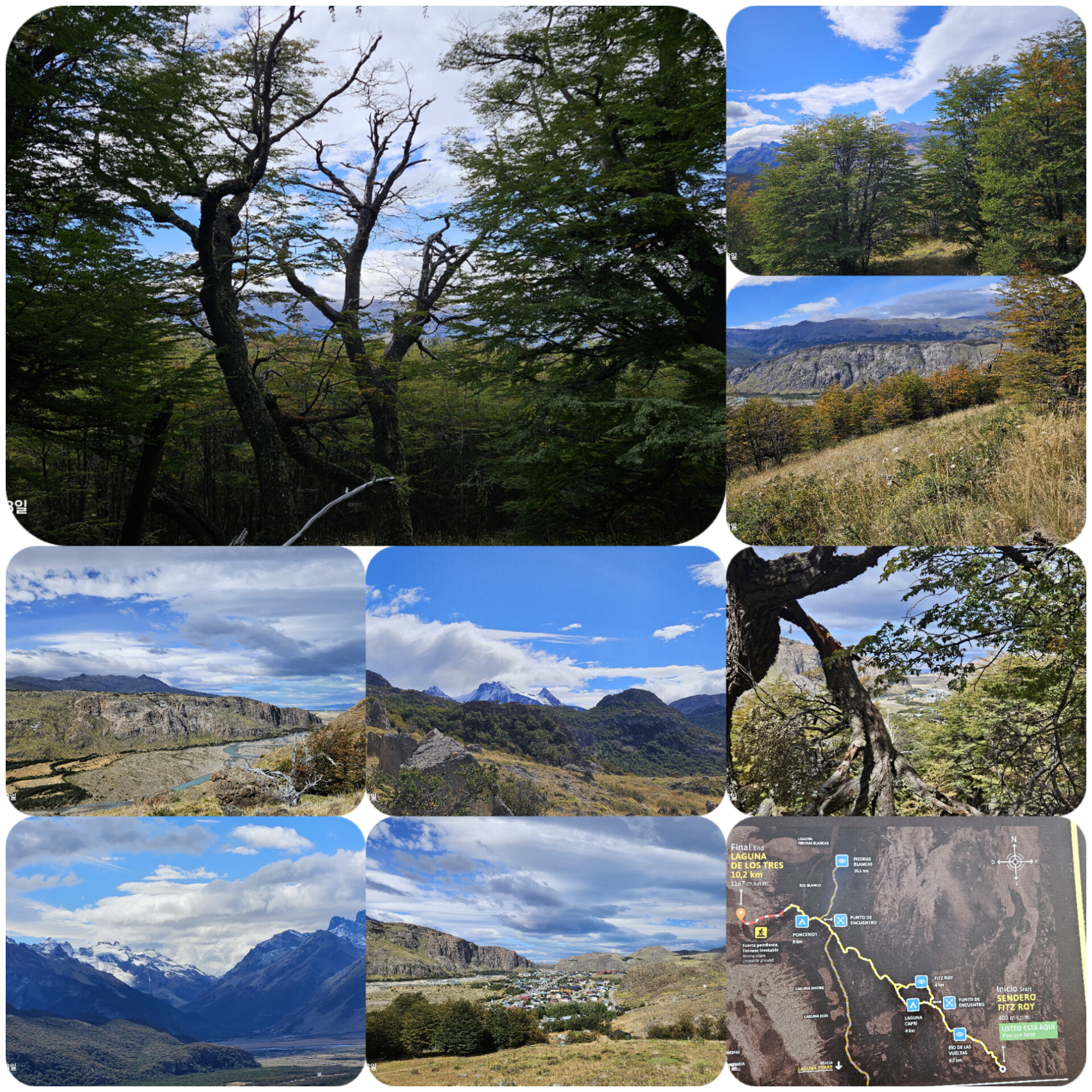 예전에 연기가 피어올라 접근하지 못하고 붙여진 지명이라하며 이곳에서 피츠로이 트레킹이 시작된다.