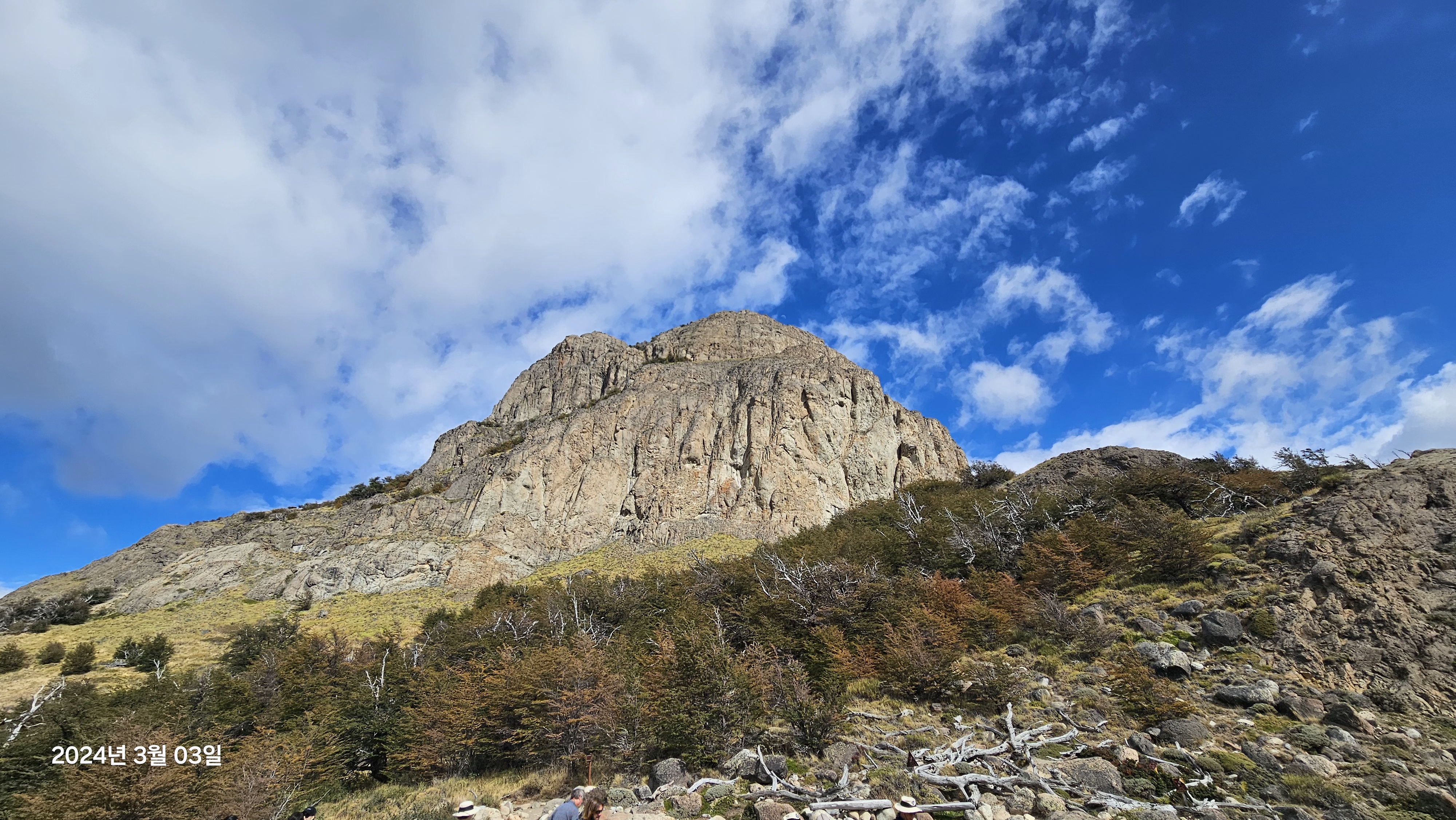 산객이 줄을 지어 오르는데,대부분은 트레킹족이고, 피츠로이를 오르려고 장비를 가지고 오르는 사람들도 보인다.