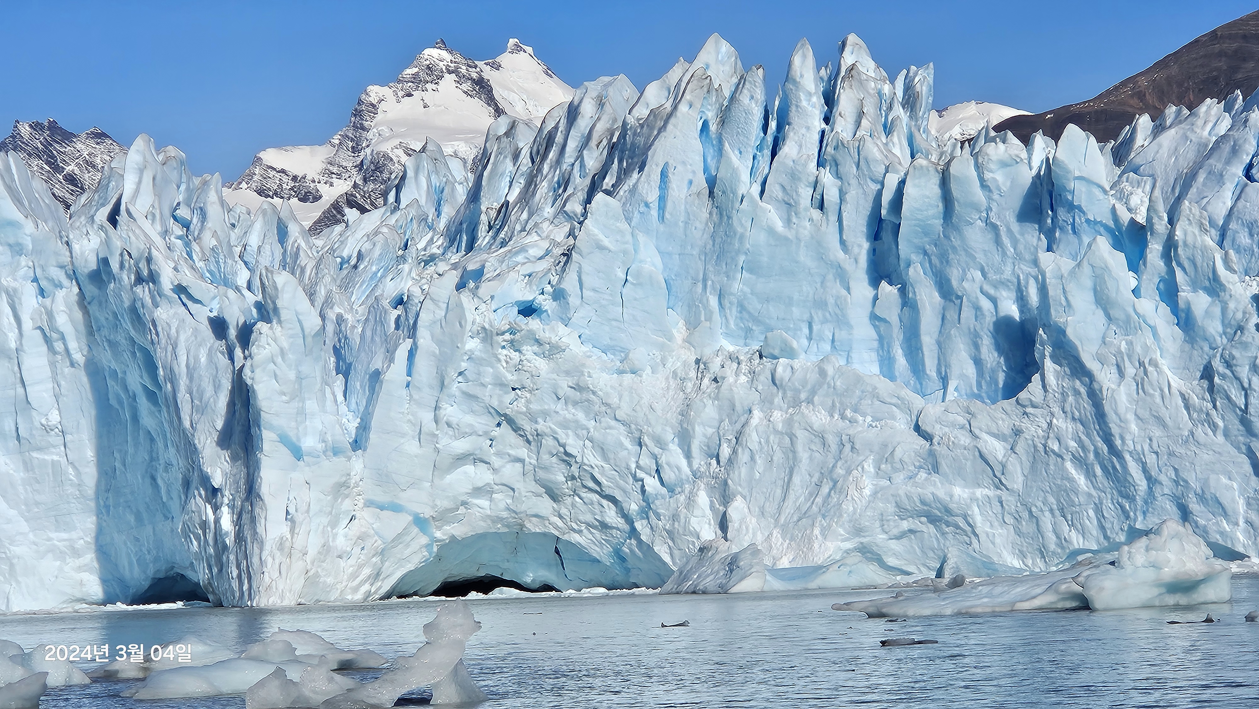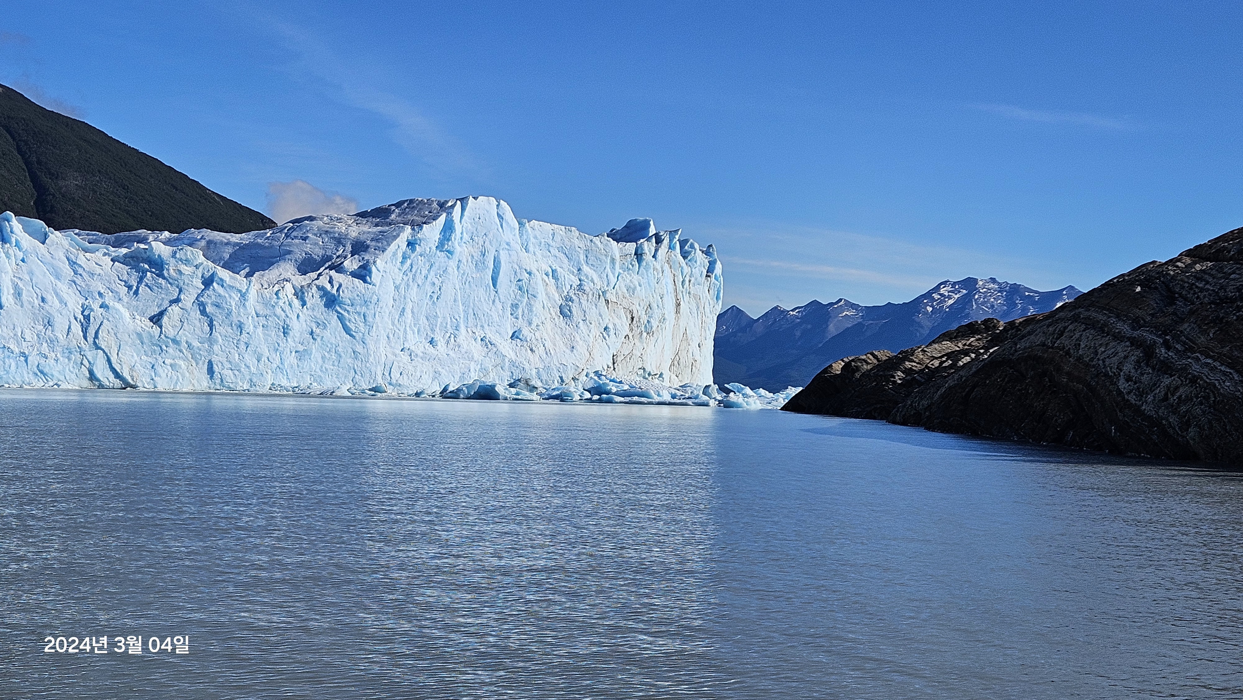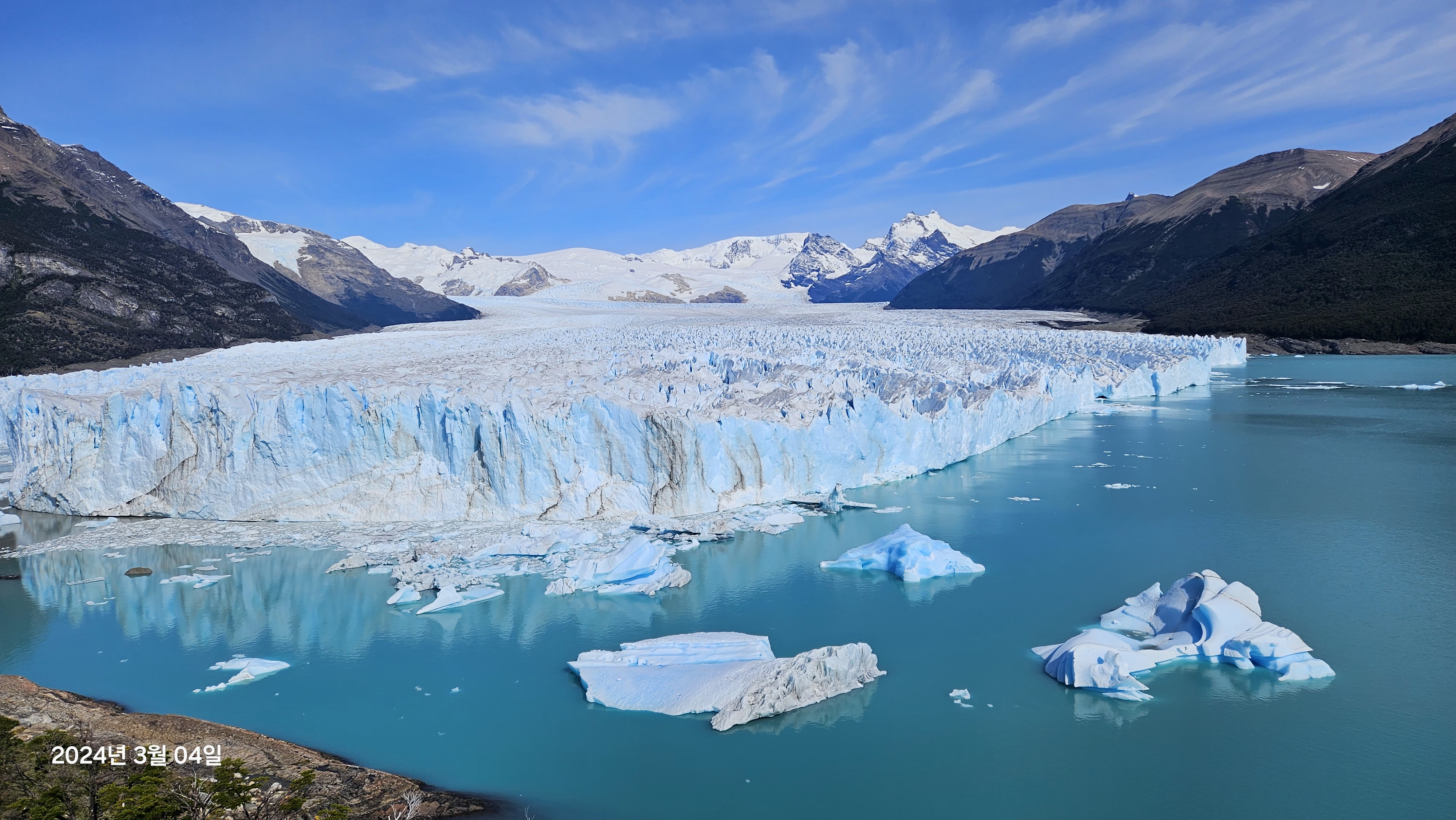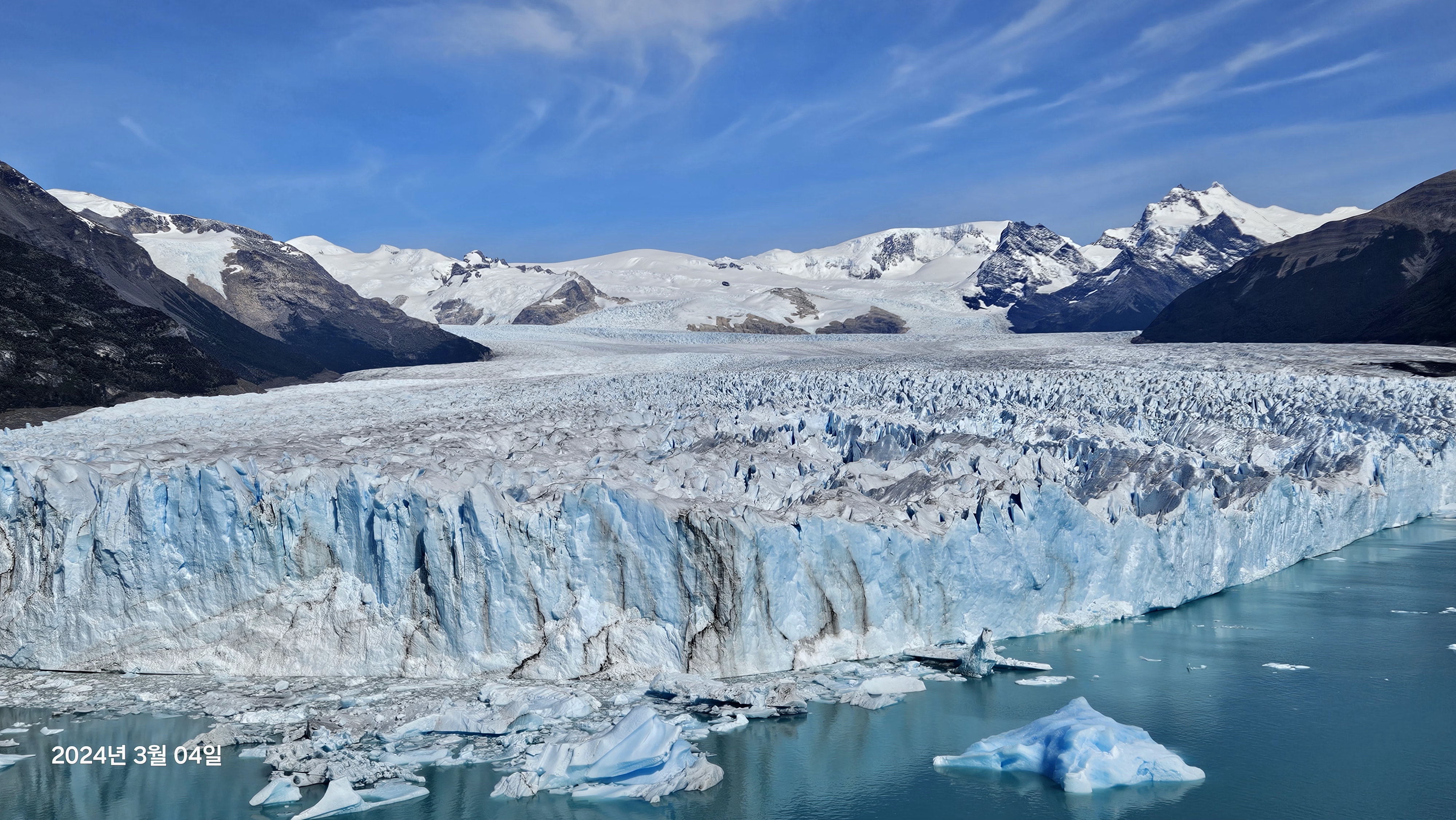 페리토 모레노 빙하는 남극과 그린란드 다음으로 가장 큰 방하이며 약 5km의 너비를 자랑한다고한다.