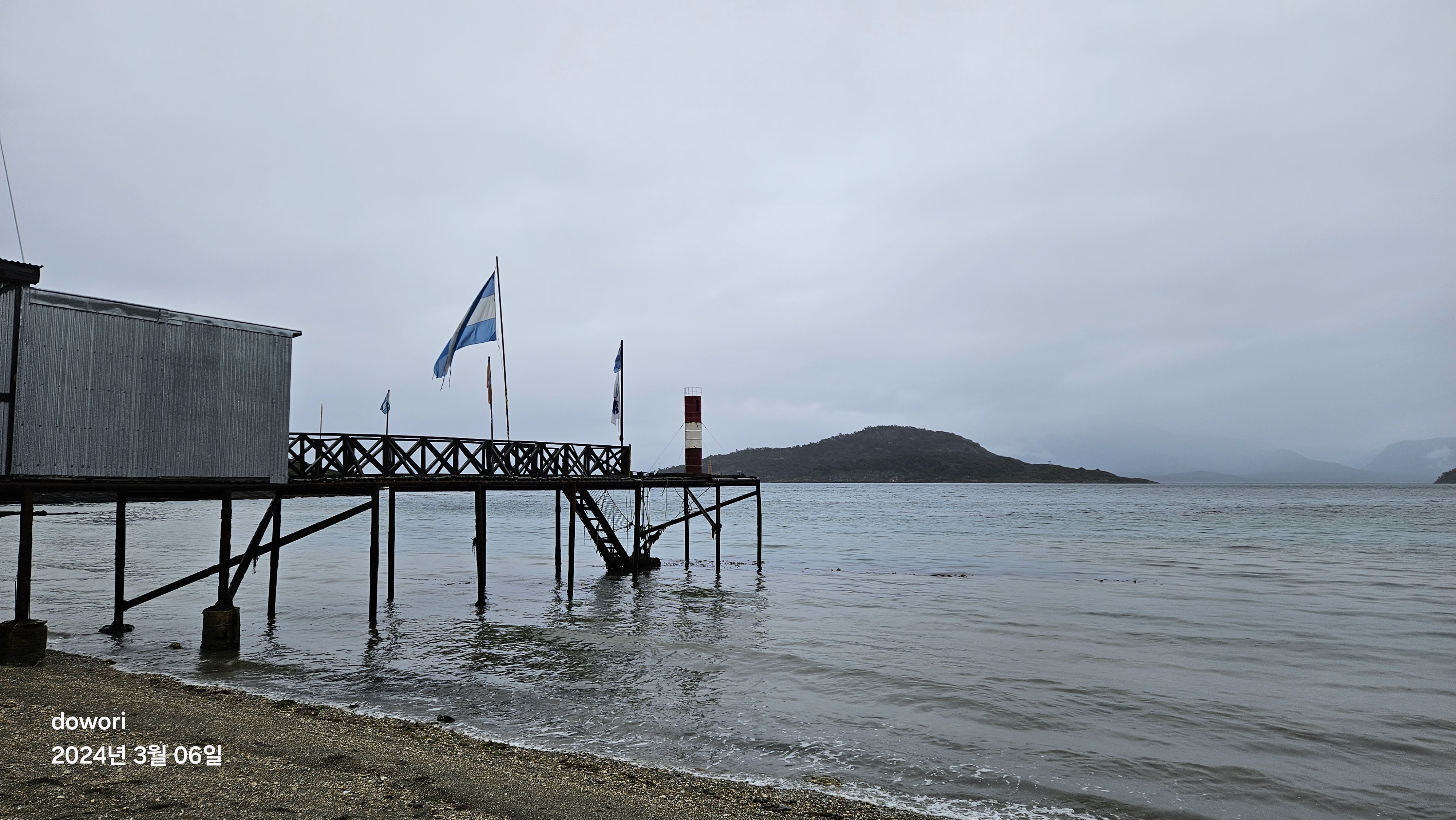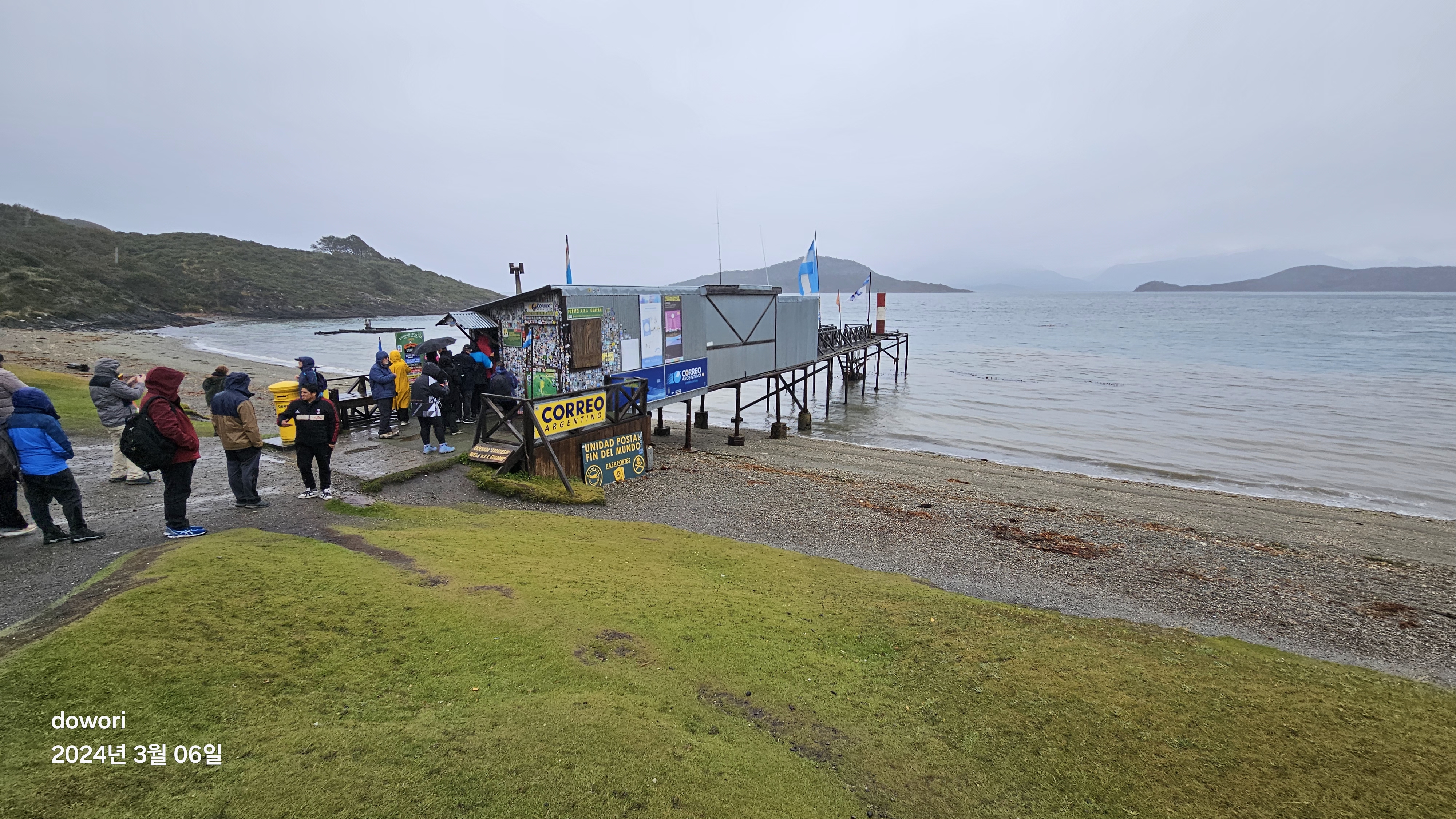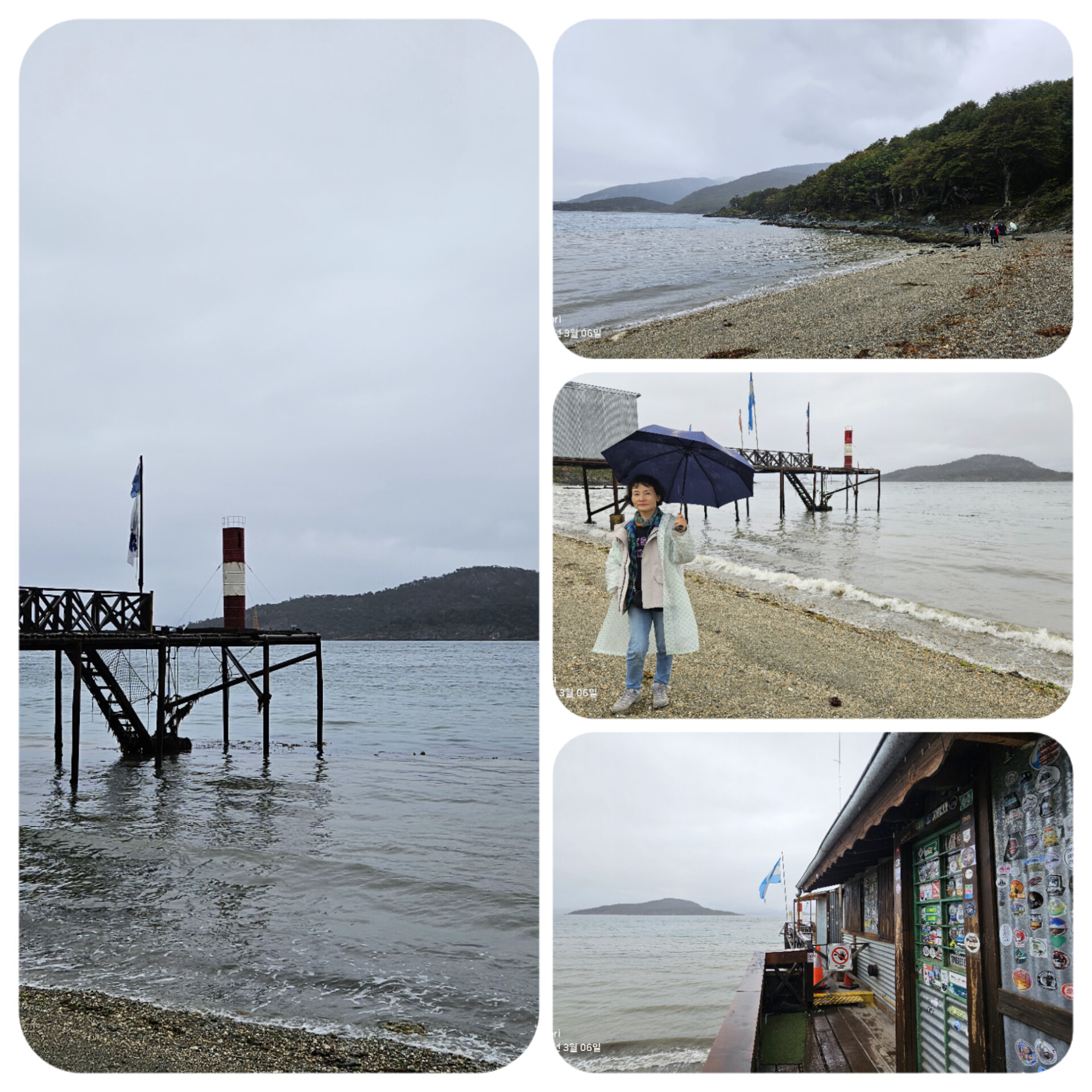 우체국앞에서니 대양과 함께 바로앞에는 아르헨티나의 섬이,멀리는 칠레의 섬이 바라보인다.