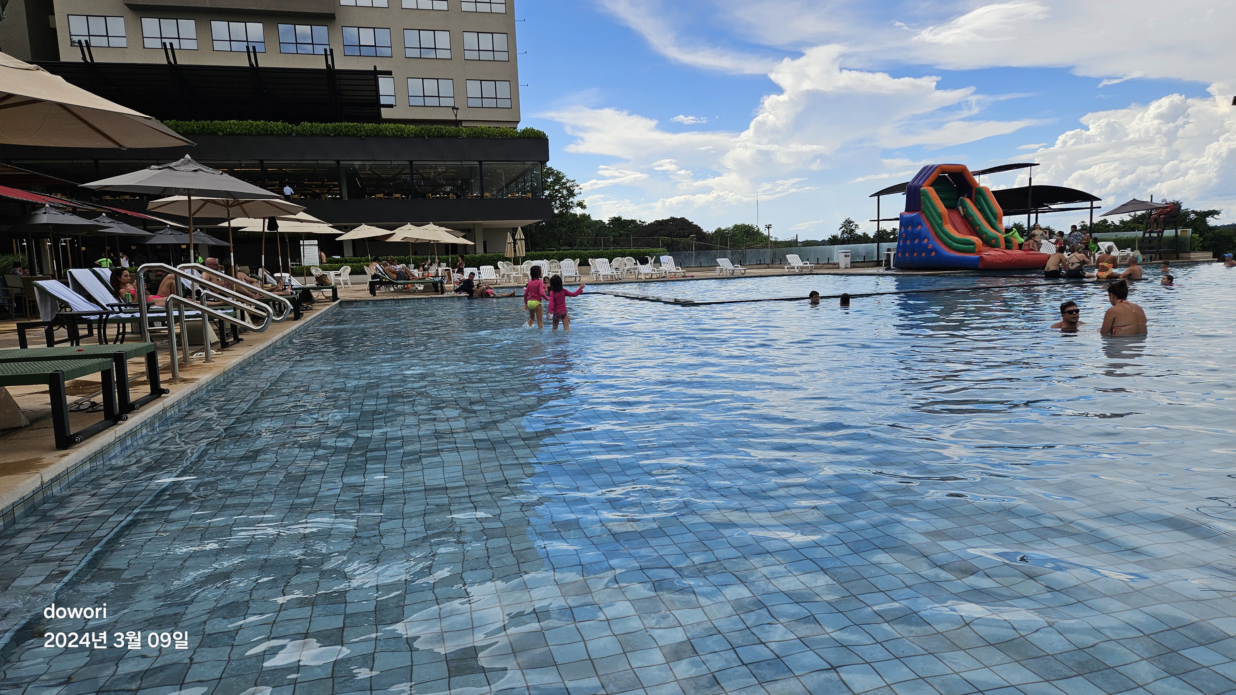3시가 조금지나 수영장에 내려가 한시간정도 수영을 즐기며 릴렉스를 하고는 사우나후 숙소로 들어가