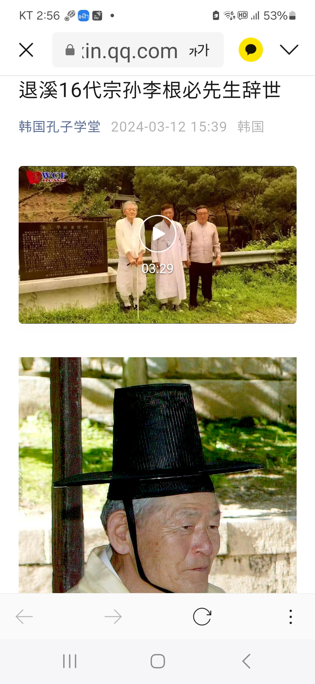 해외여행중 퇴계16대종손인 근필옹의 장례가 있었다.