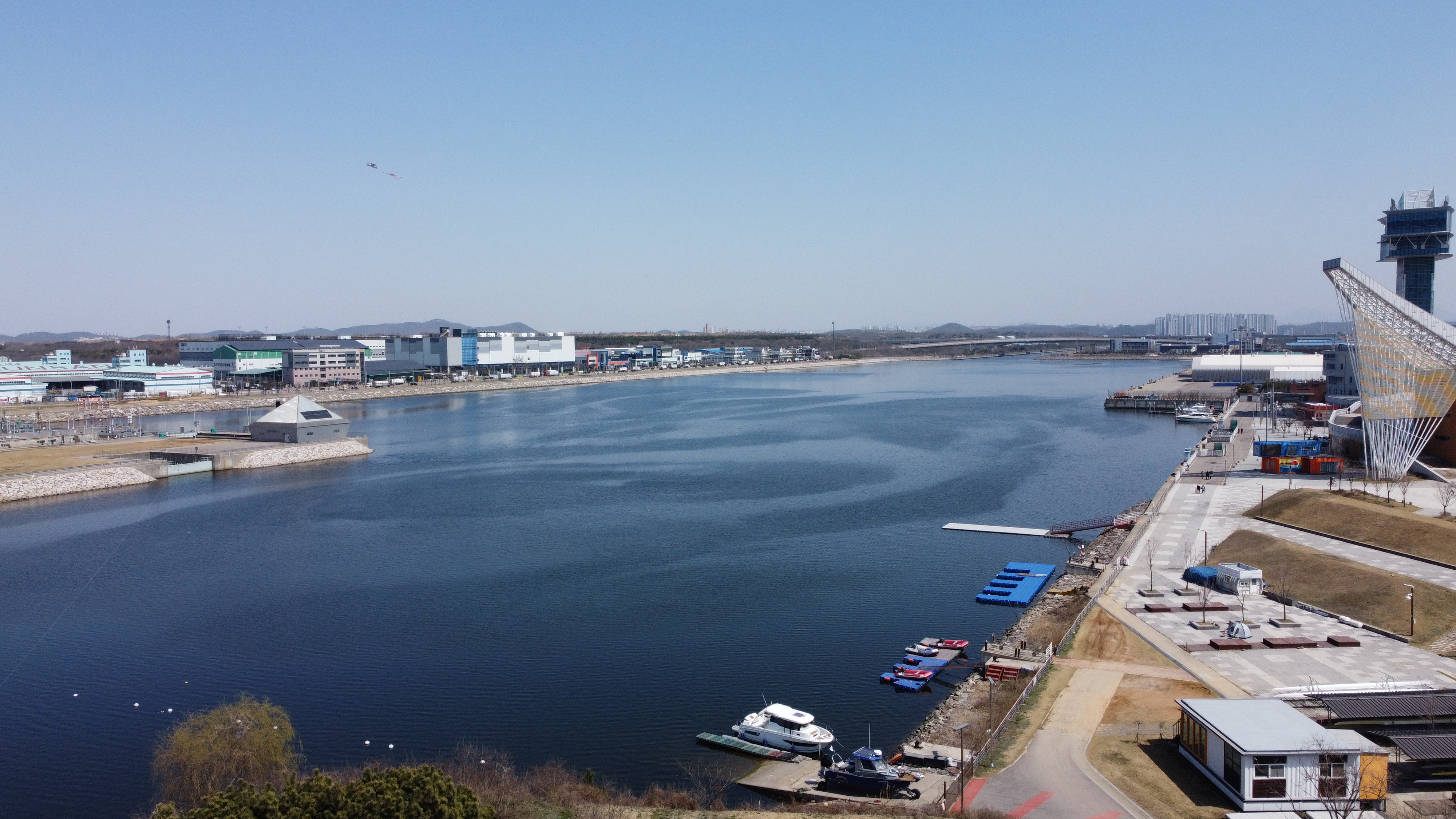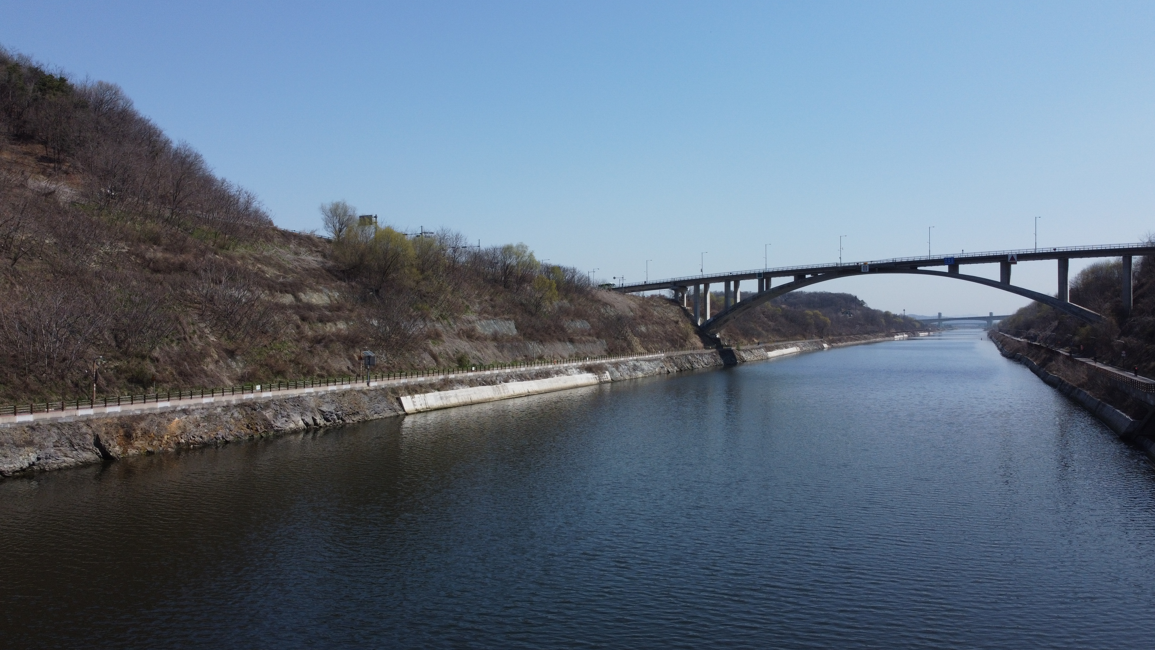 계양대교를 지나니 엉덩이가 슬슬 아파오니 잠시 벤치에 앉아 과일도 먹고 휴식을 취하며 드론을 날려본다.
