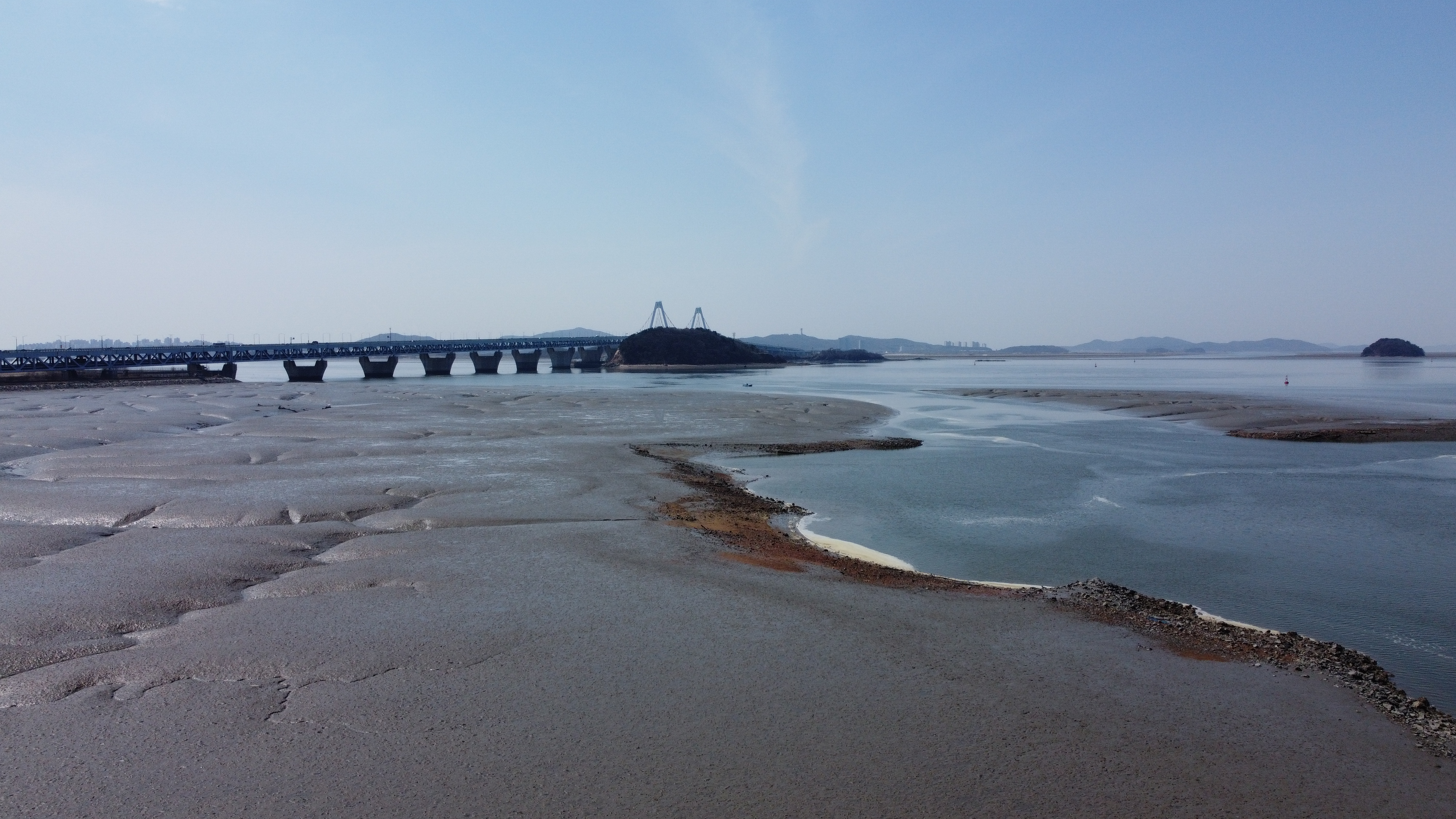 서해바다를 바라보며 잠시휴식을 취하는데 멀리 영종대교와 영종도가 아스라히 보인다.
