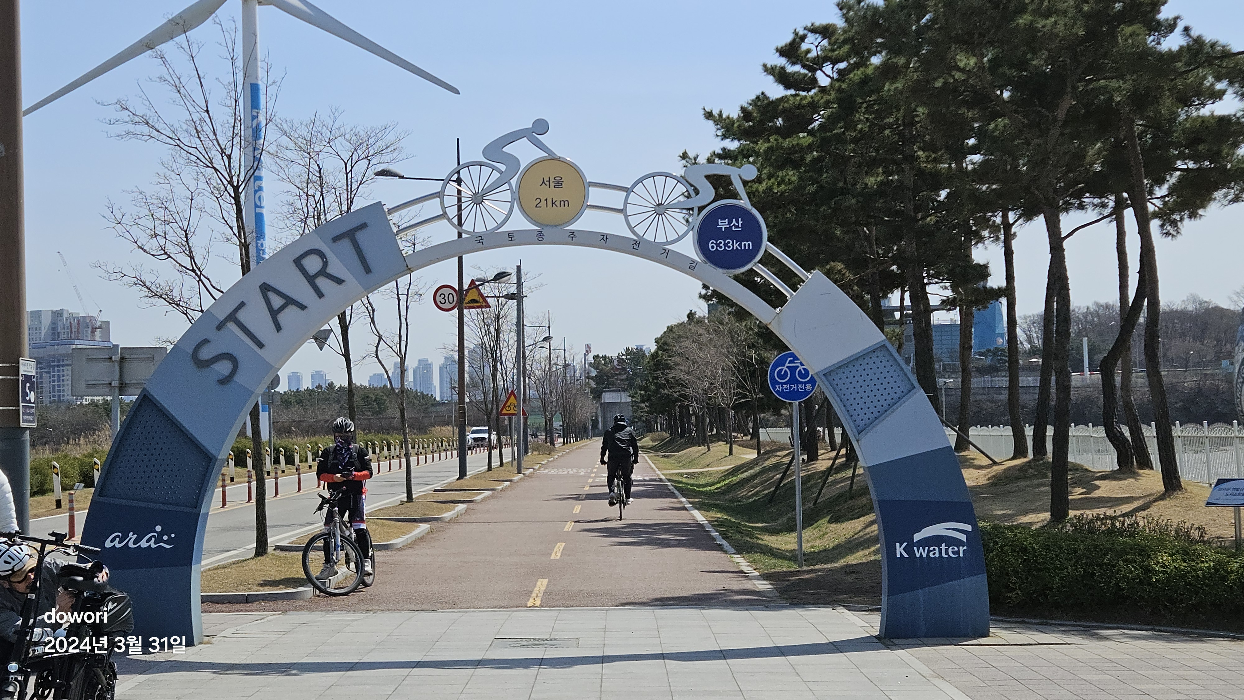 한강을 달려 방화대교를 지나 아라뱃길 판개목에서 뱃길로 접어드는데 시내구간을 지나야하니 다소 불편하다.