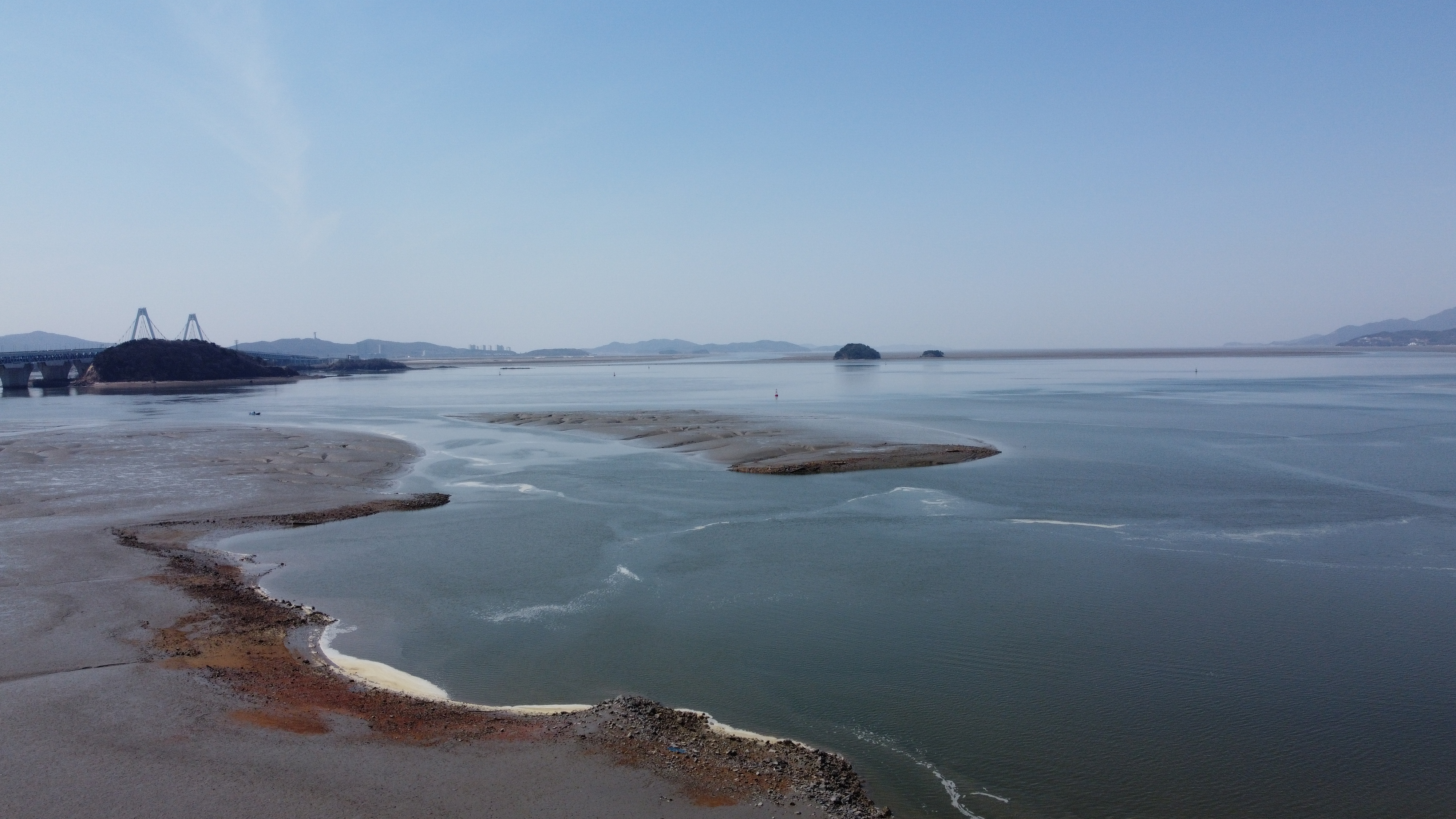 서해바다를 바라보며 잠시휴식을 취하는데 멀리 영종대교와 영종도가 아스라히 보인다.