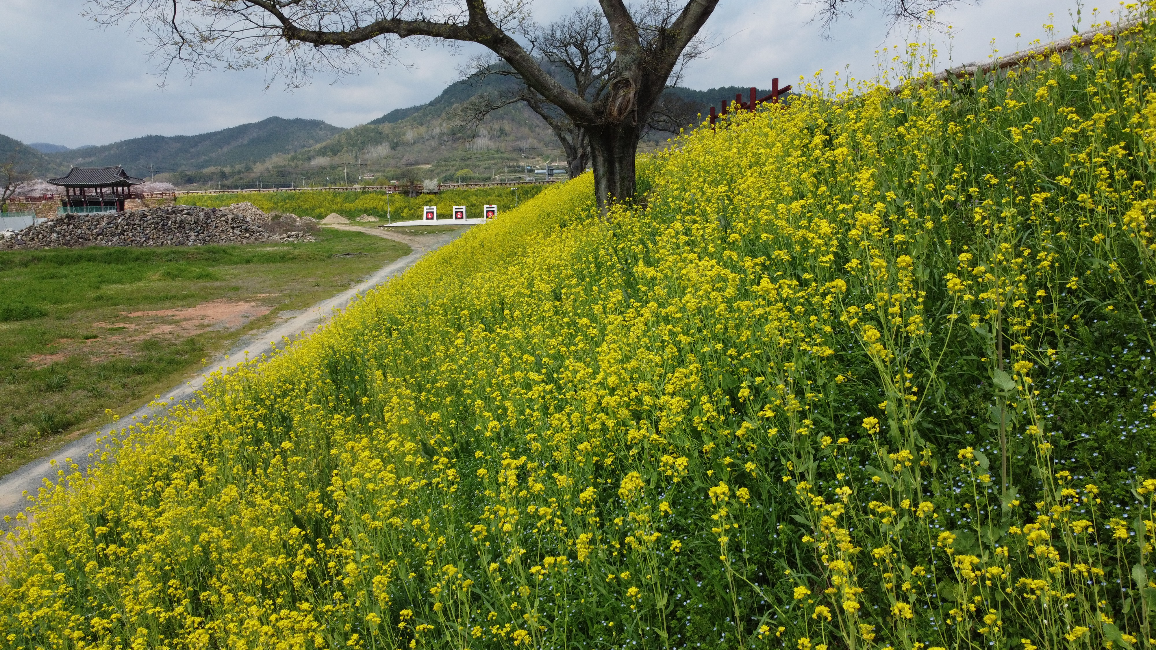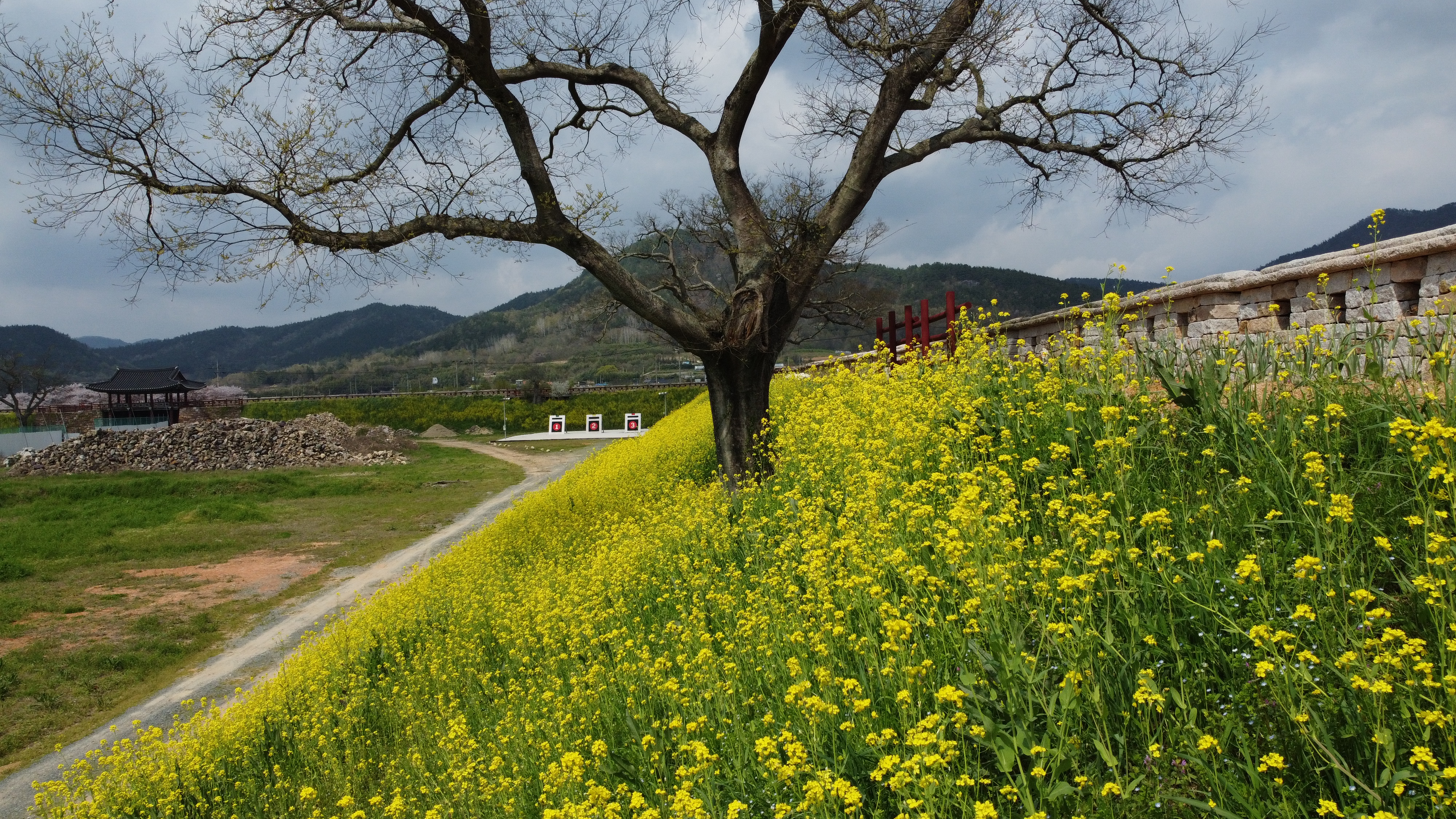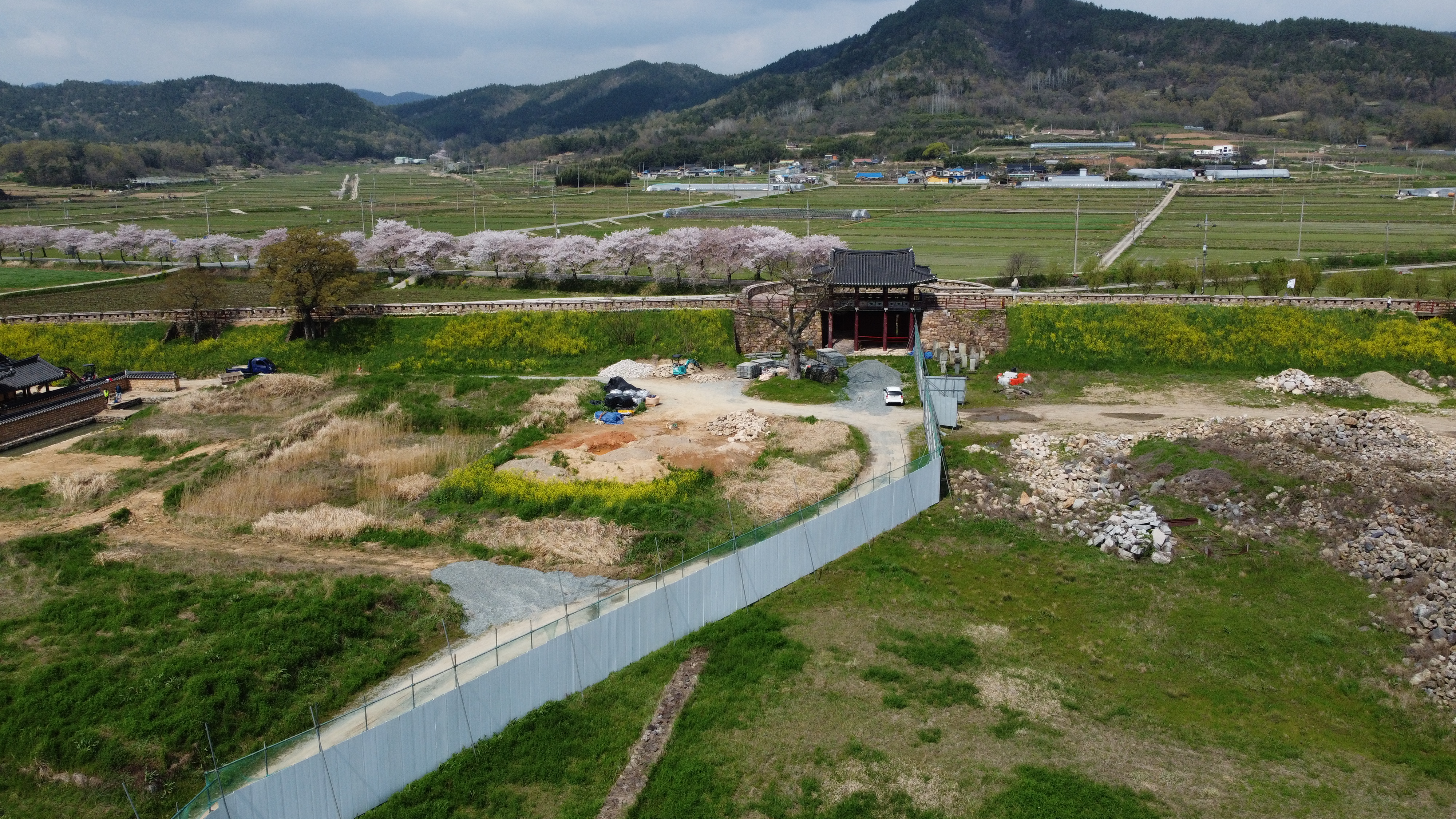 그리고는 전라병영성에 올라 봄꽃이 만발한 풍광을 즐기며 드론도 띄워본다.