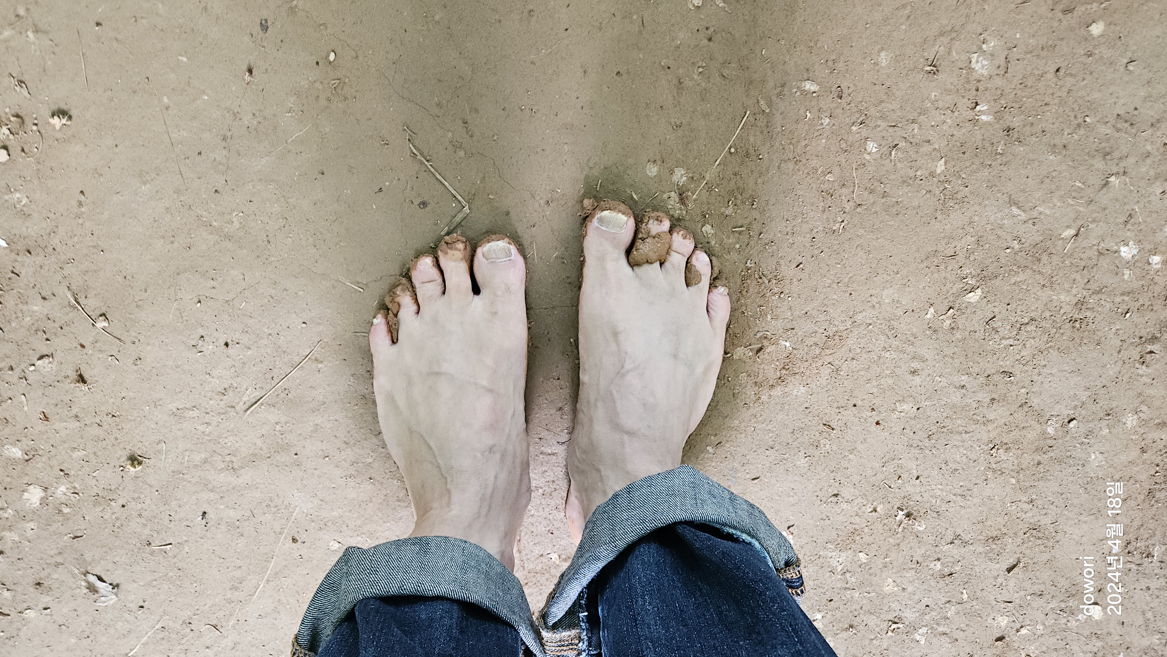 생각보다는 맨발로 걷는 촉감이 상당히 괜찮다.