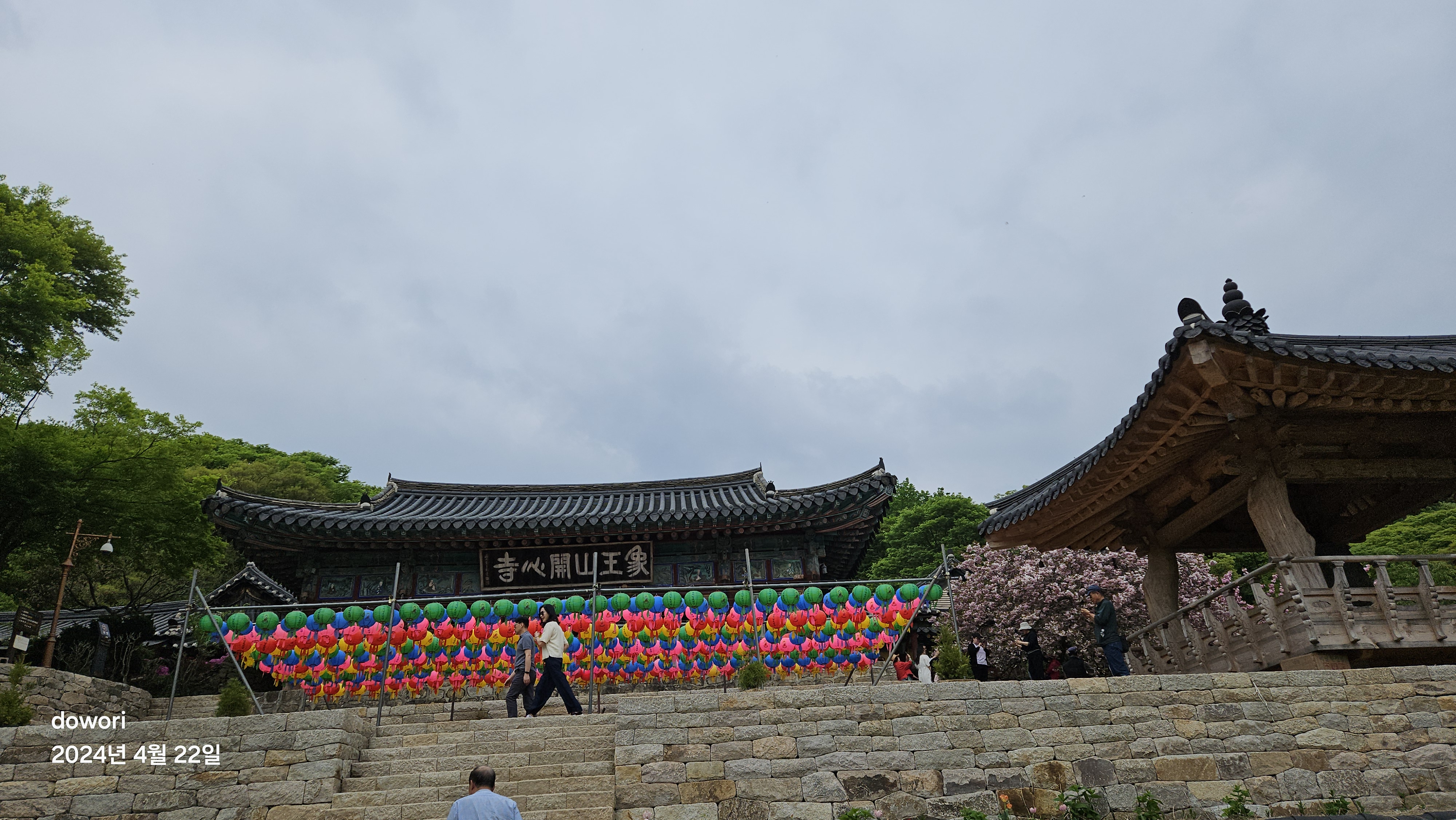 마침 겹벚꽃이 만개하면서 축제가 열리어 절집은 많은 인파로 붐빈다.