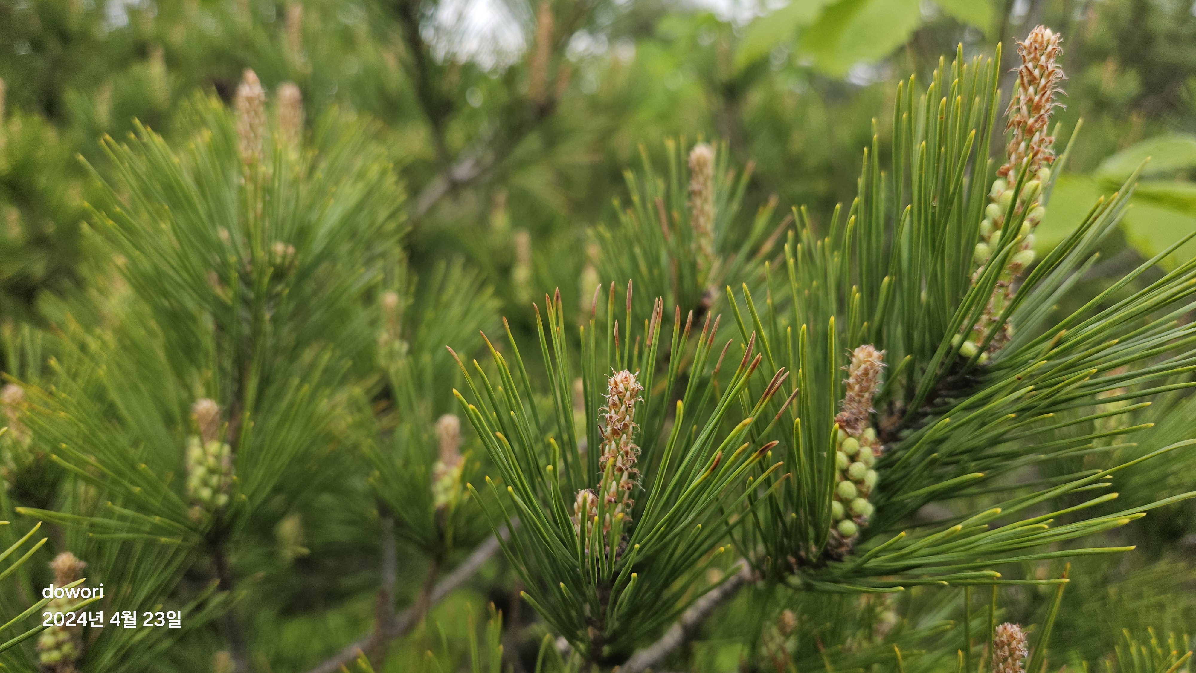 봄날의 산속은 푸르 름의 연속이고 철죽도 피어나고,어느사이 송화가 맺히기 시작한다.