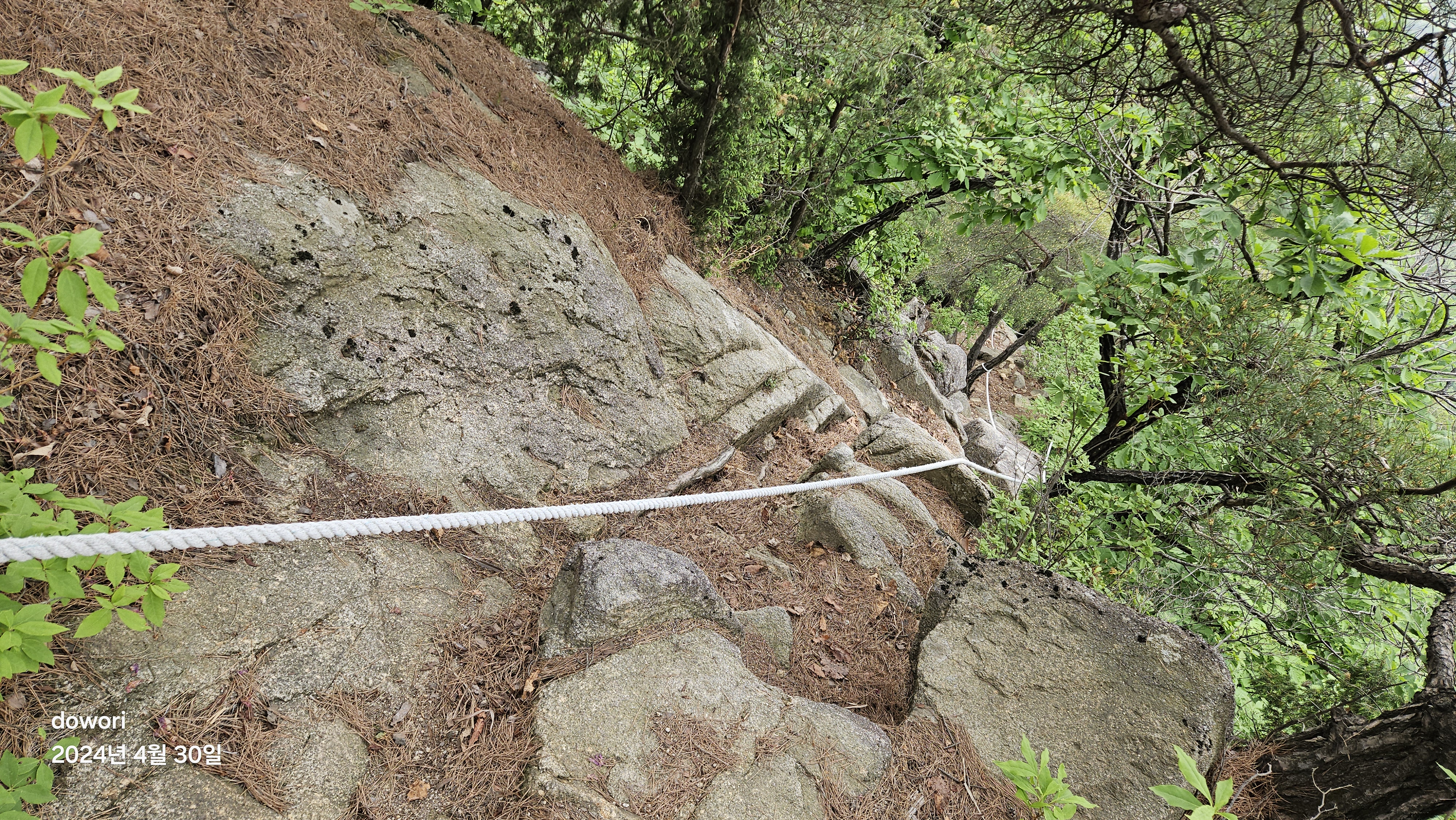 군데군데 바위길에 밧줄을 설치하여놓아 그나마 쉽게 내릴 수가 있다.