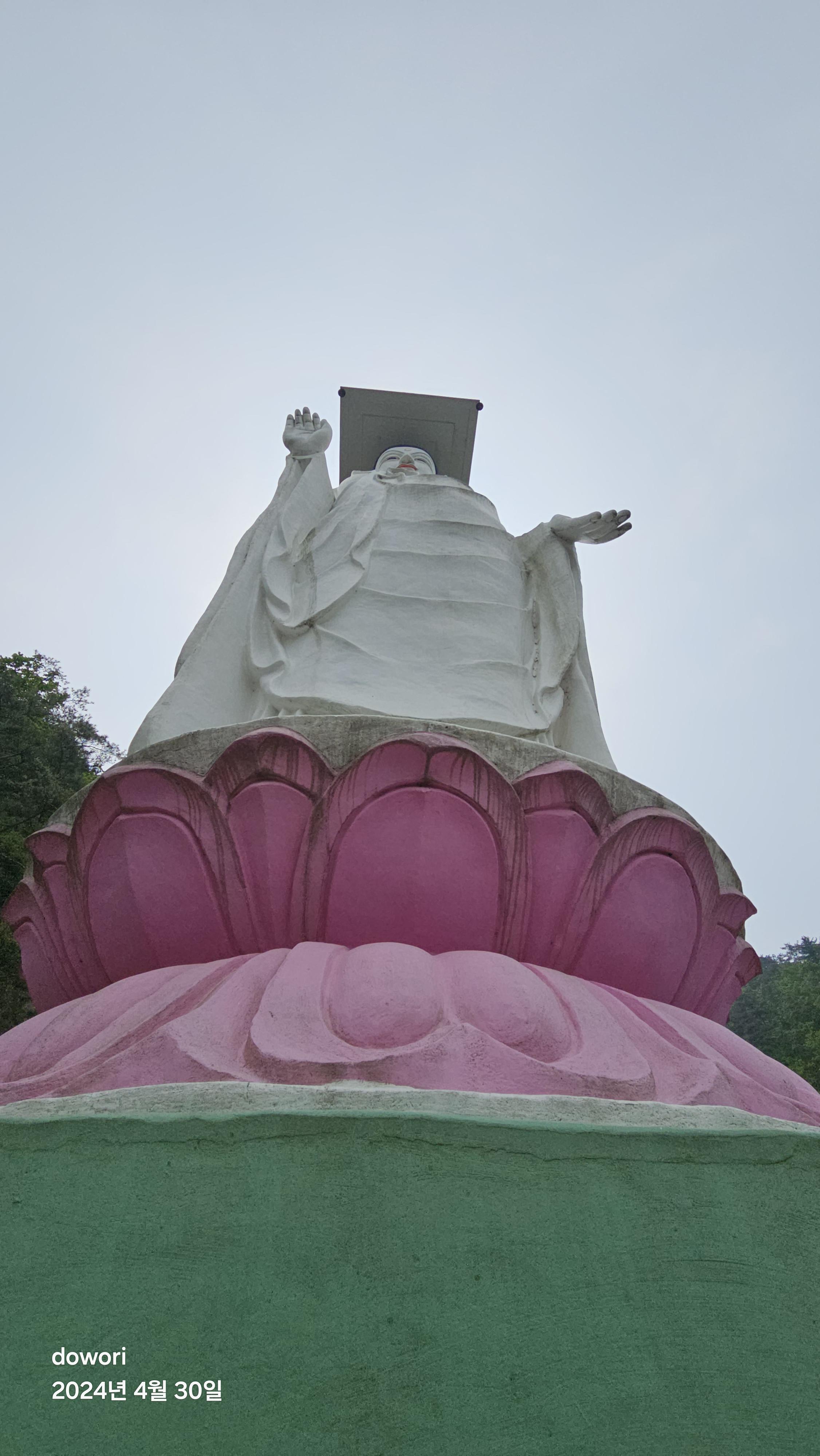 대웅전을 찾아 삼배를 드리고는 보살님의 안내로 들머리를 오르니 입구에 커다란 부처님의 입상이 우뚝서있다.