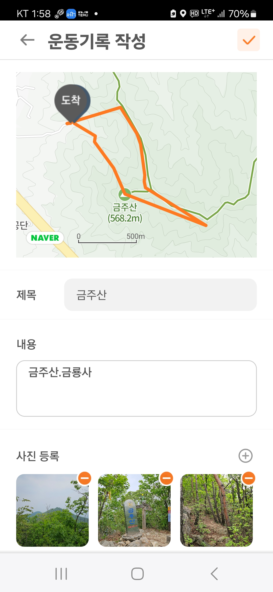 정상을 올랐다가 금용사를 가운데두고 우회하면서 내리는 길을 하산코스로 선택하였는데,