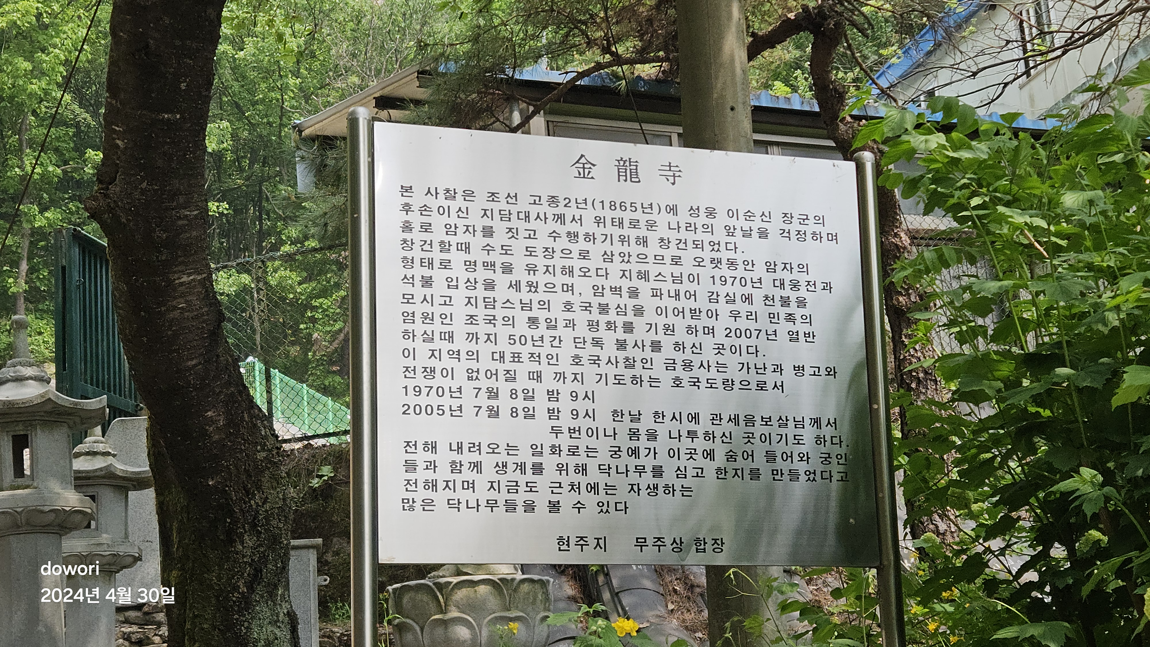 열심히 차를 몰고 금영사입구에 도착하니 열한시가 다되어가는 시각이다.