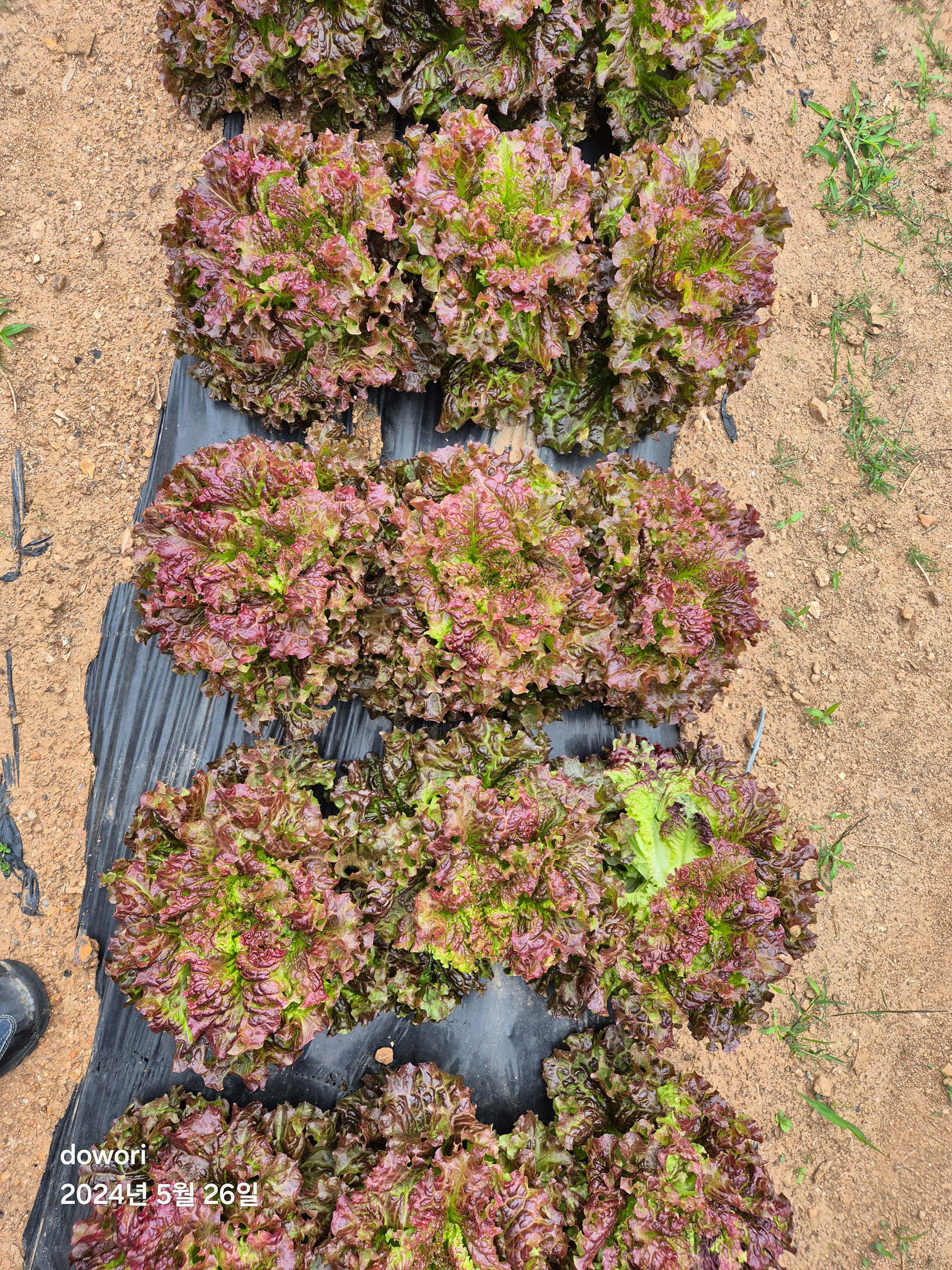 농막에서 삼겹살을 구워 밭에서 따온 상추와 부추등으로 쌈을 싸서먹으니
