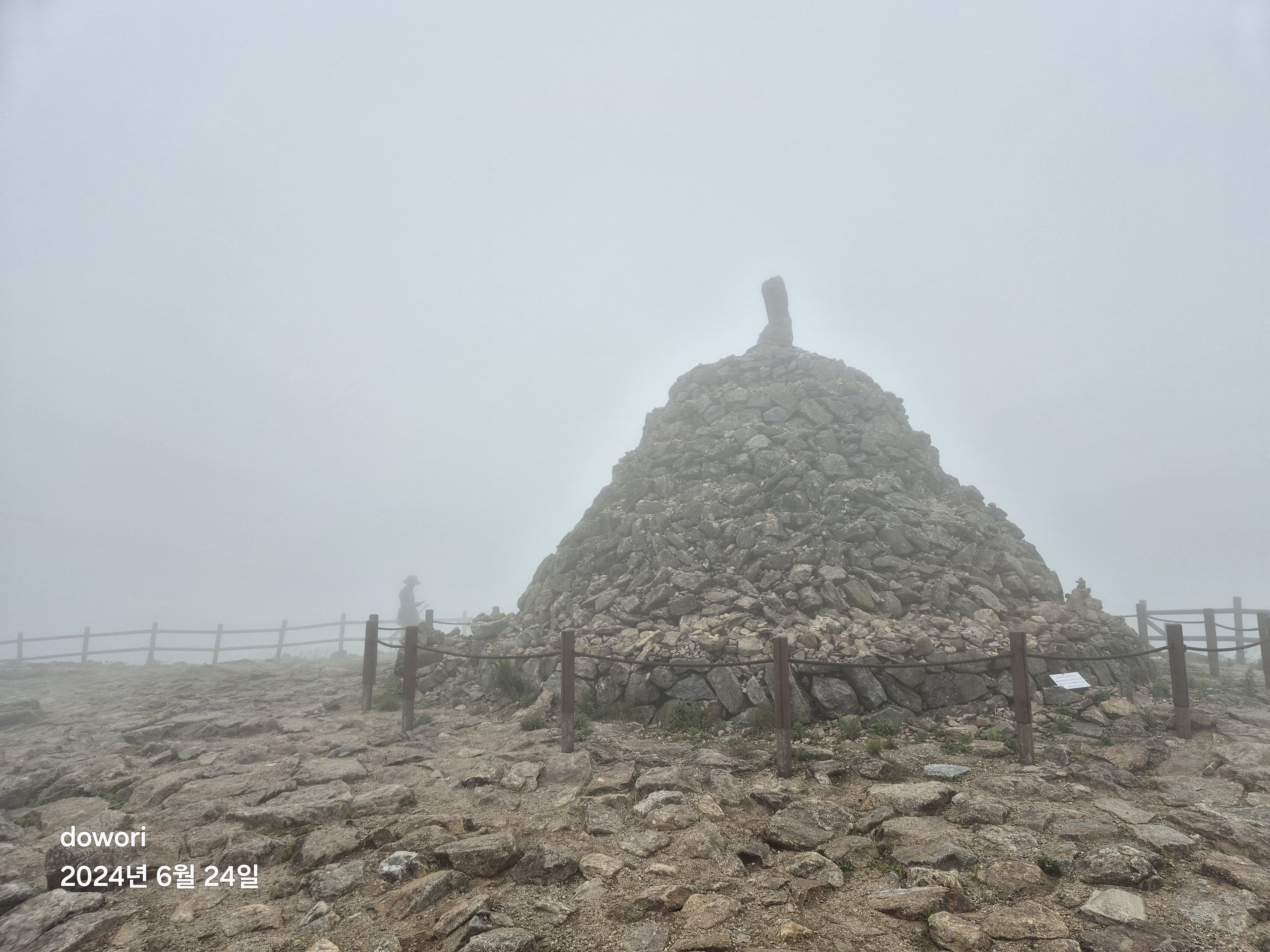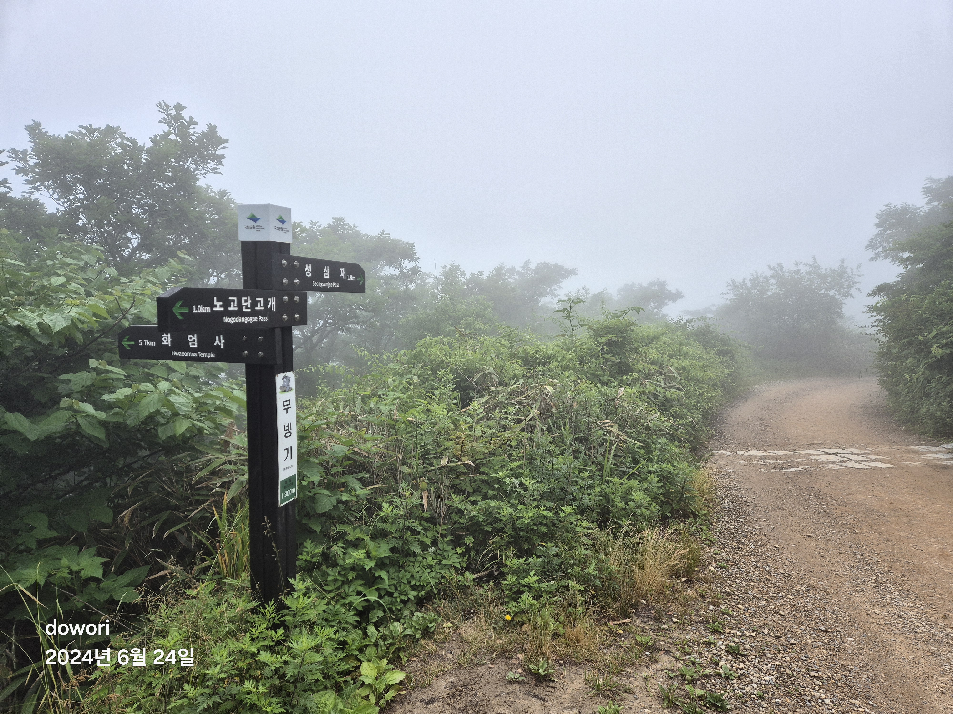 그런데 안개가 자욱해지며 비탈은 계속되고 습하니 땀이 흘러내리고 힘들어진다.