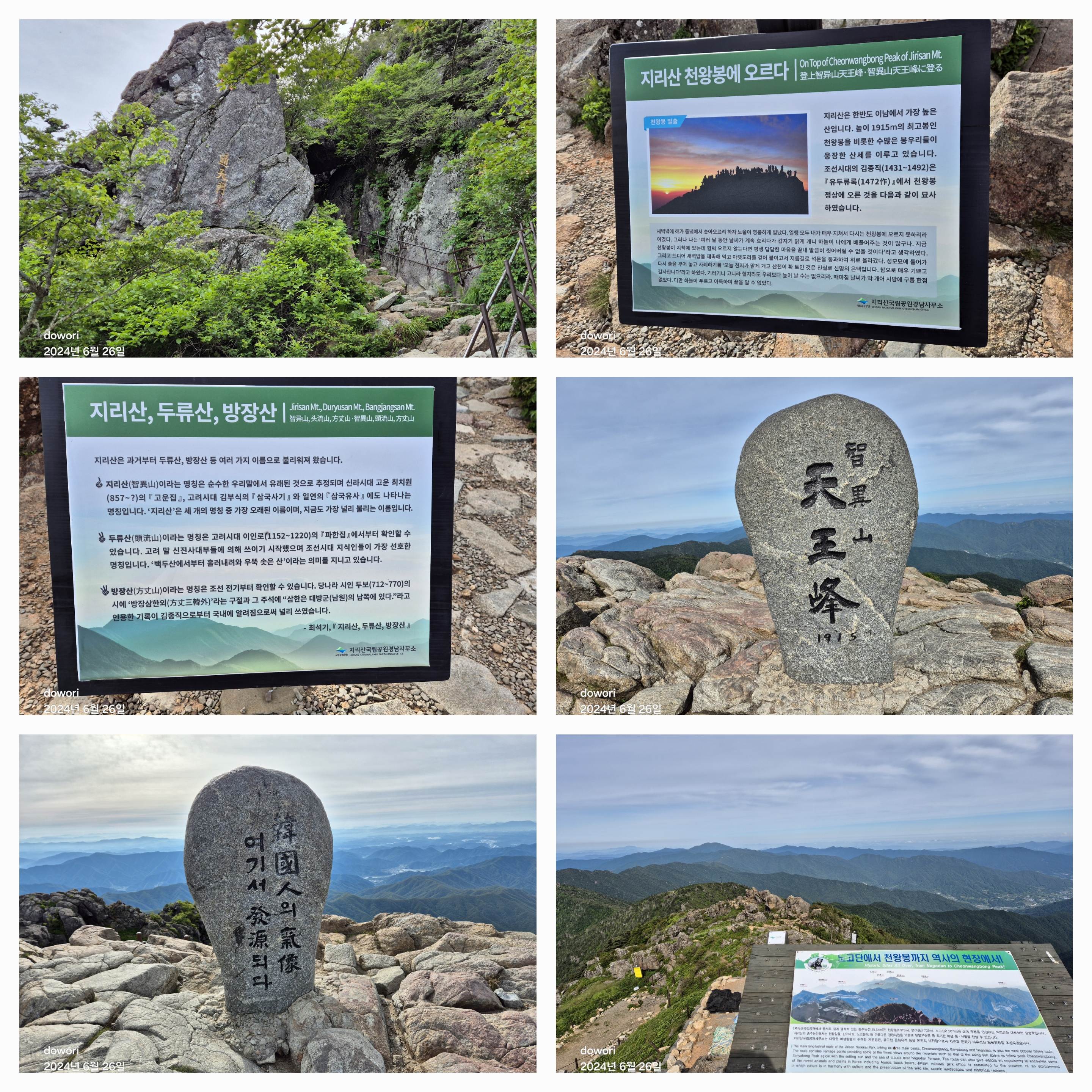 3.세석-촛대봉-연하봉-장터목-제석봉-통천문-천왕봉-중봉-치밭목-유평-대원사,15.3km