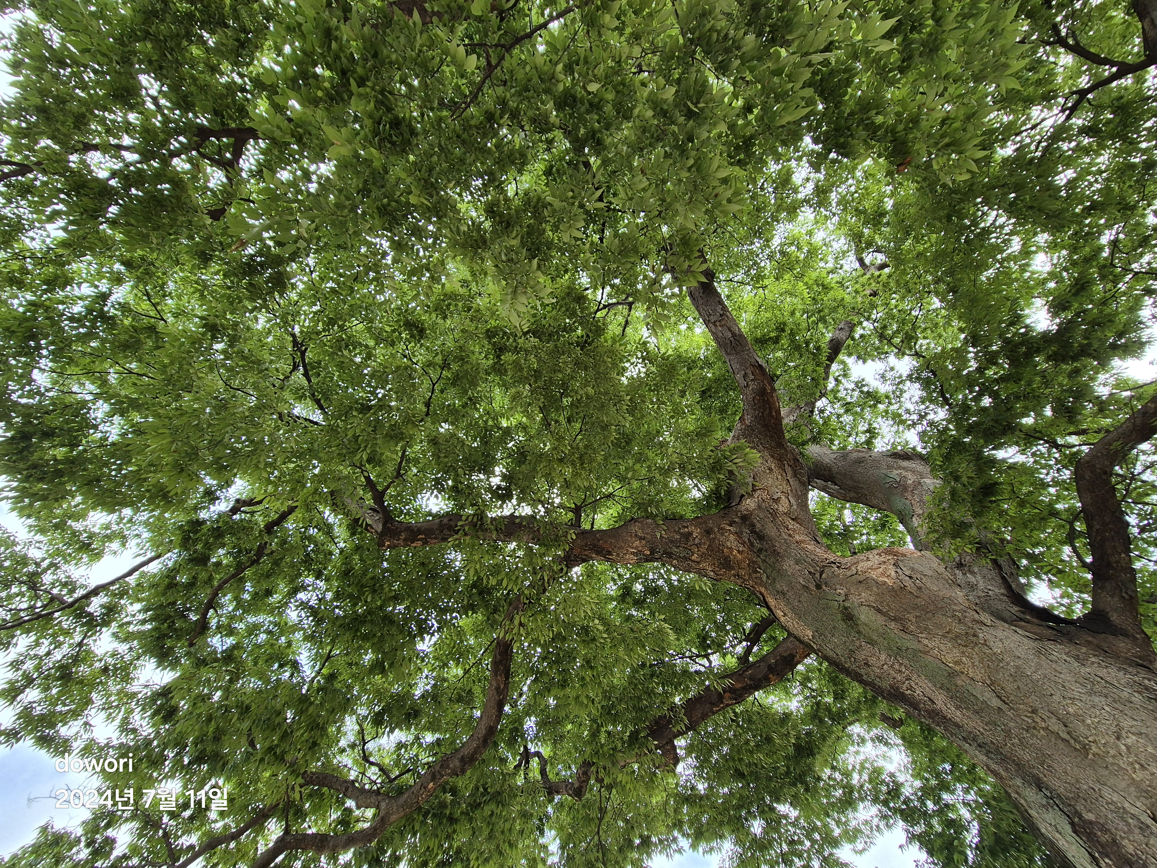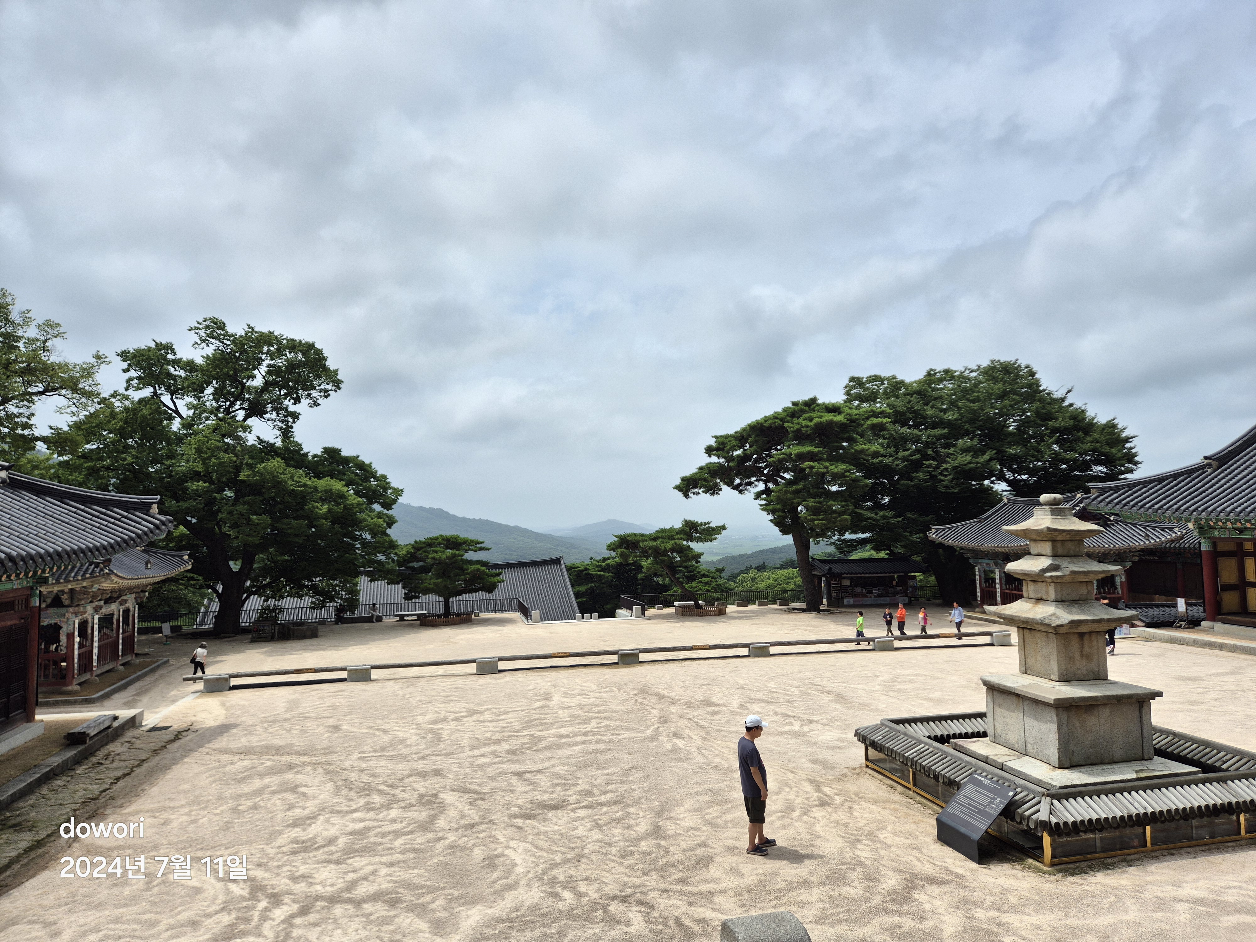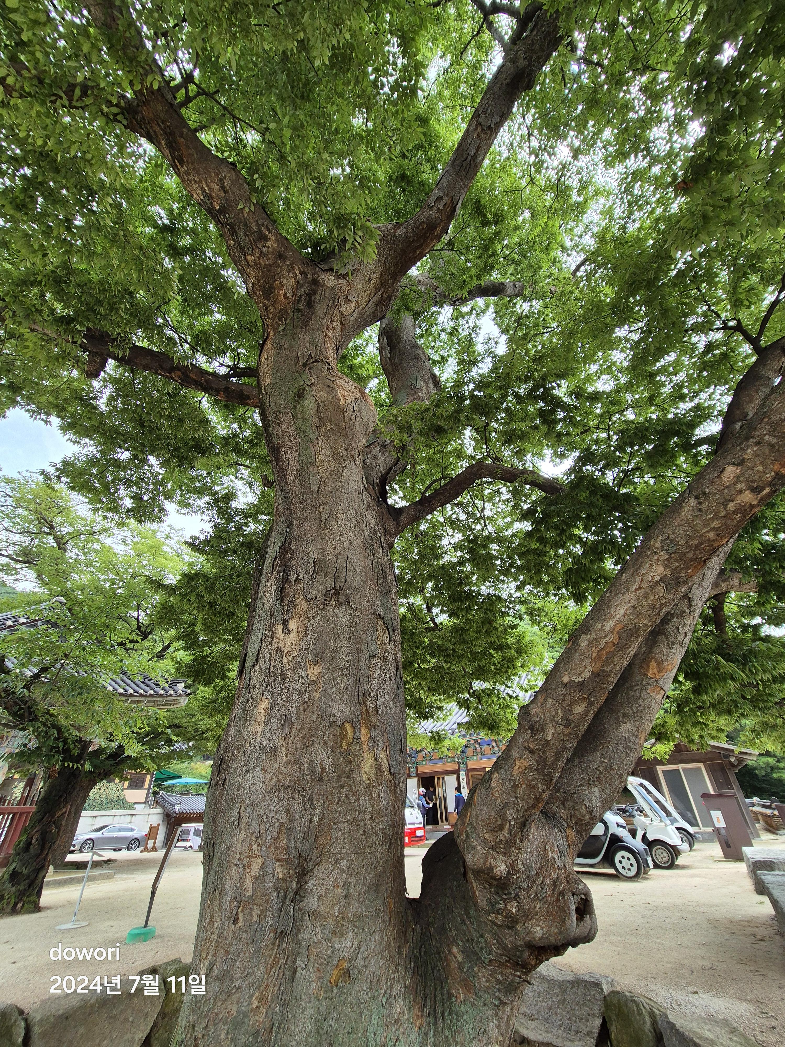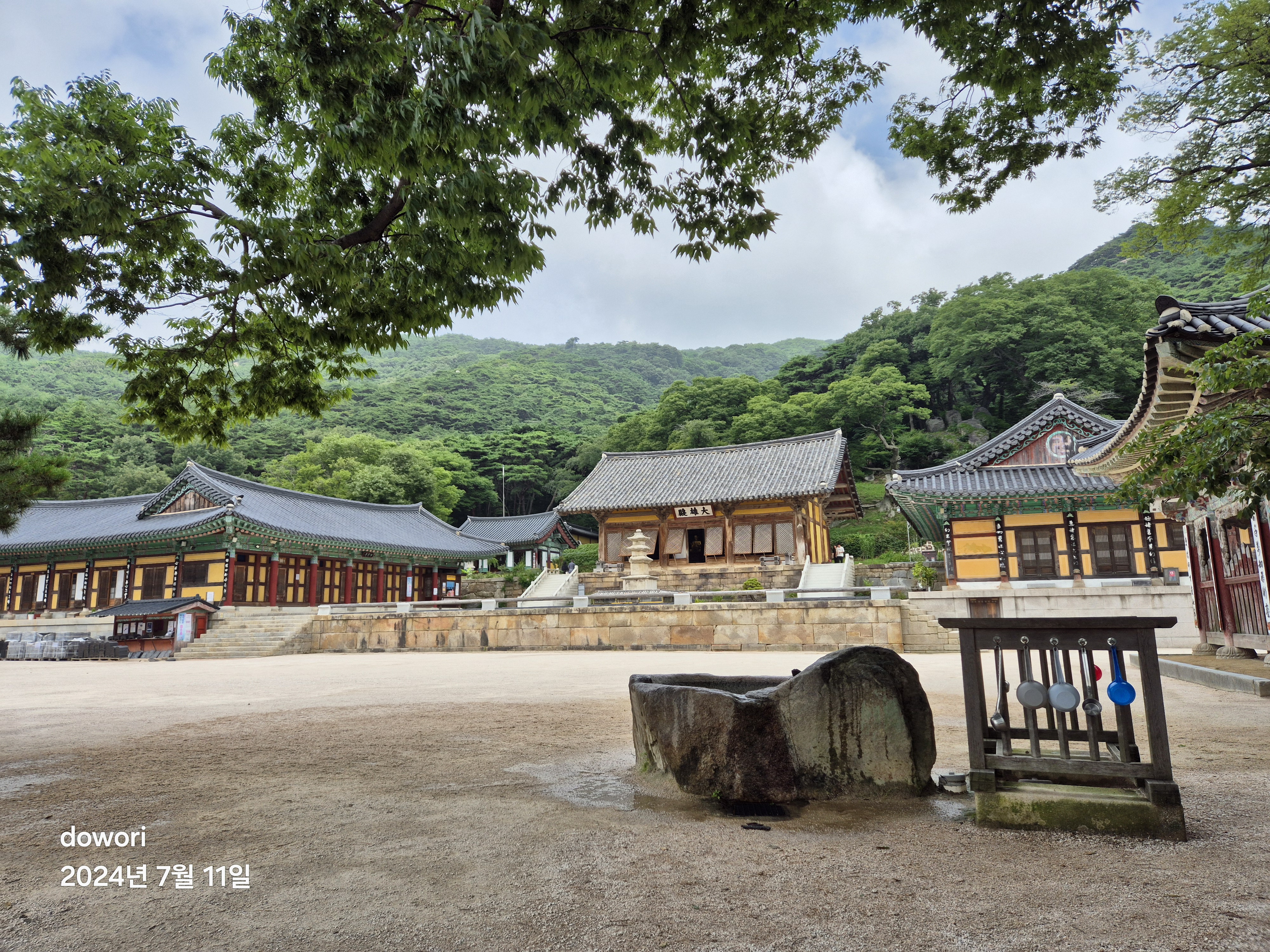 대웅전 앞뜰의 커다란 나무밑 그늘에 앉아 물한모금을 마시며