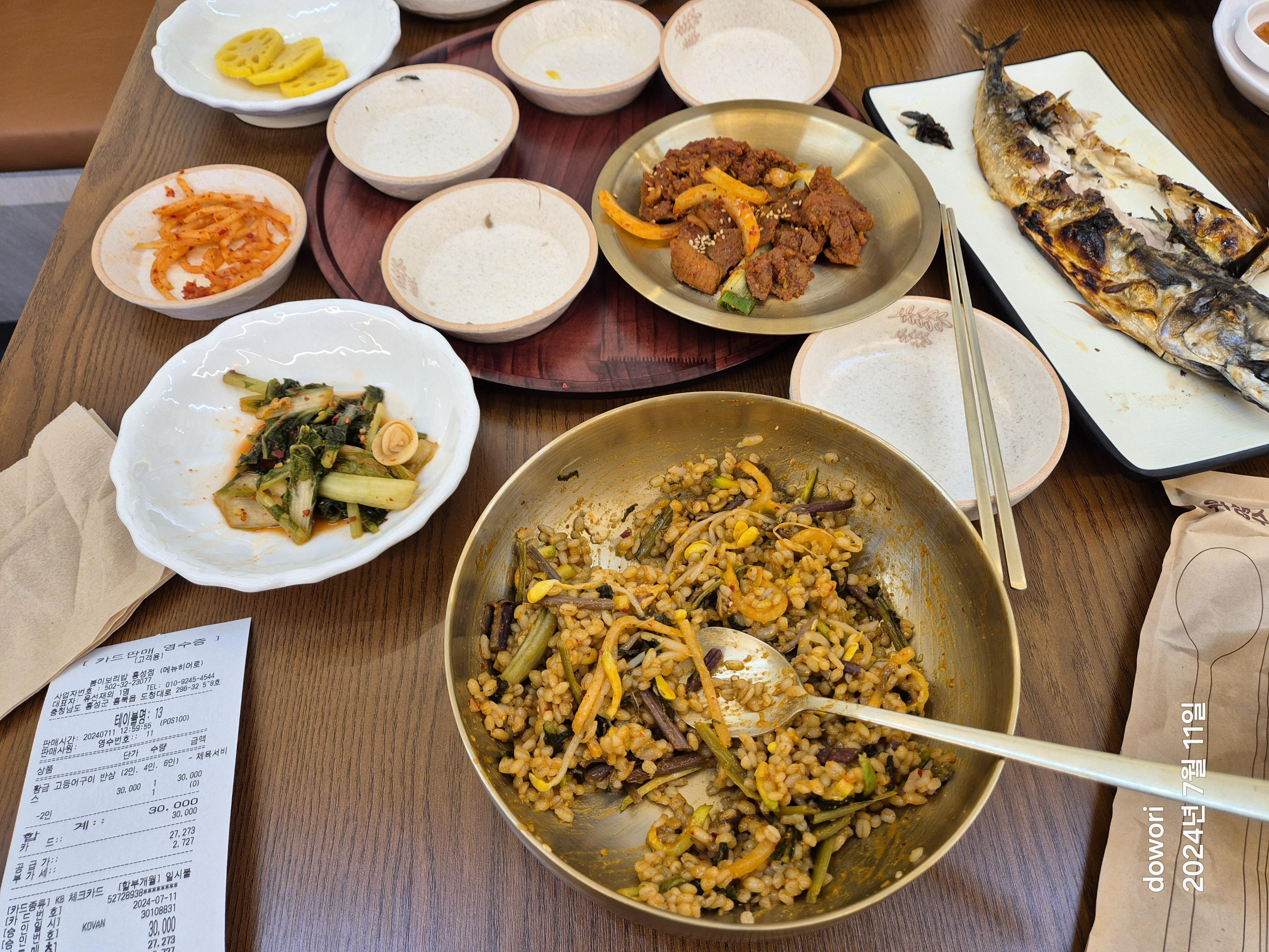 고등어구이까지 첨가된 식사는 양이 많아 다 먹을 수가 없다.