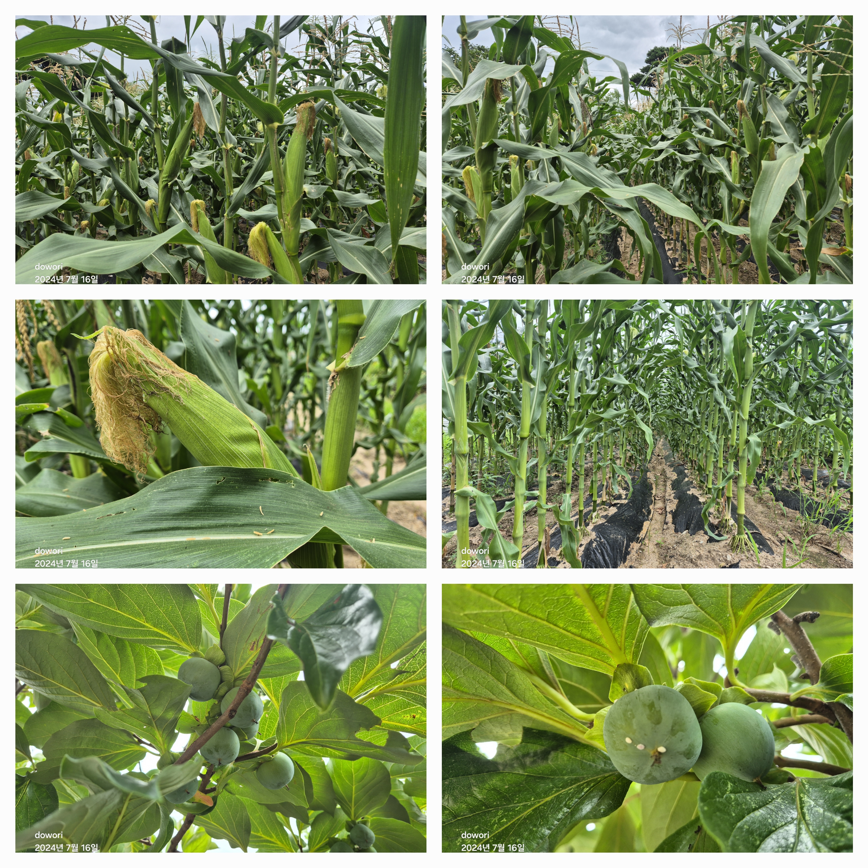 들려서 옥수수도 먹고 수확물을 가져가란다.