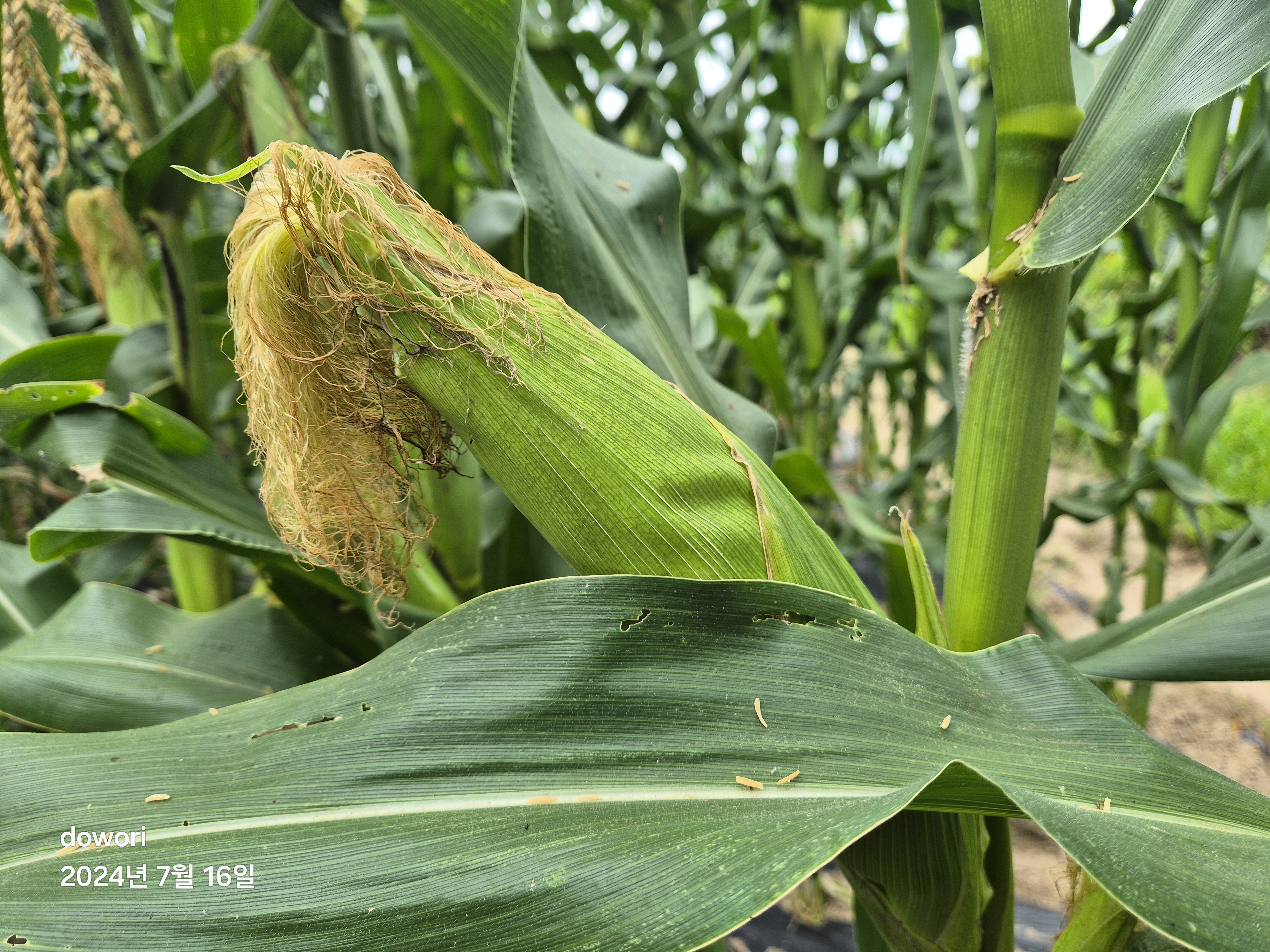 들려서 옥수수도 먹고 수확물을 가져가란다.