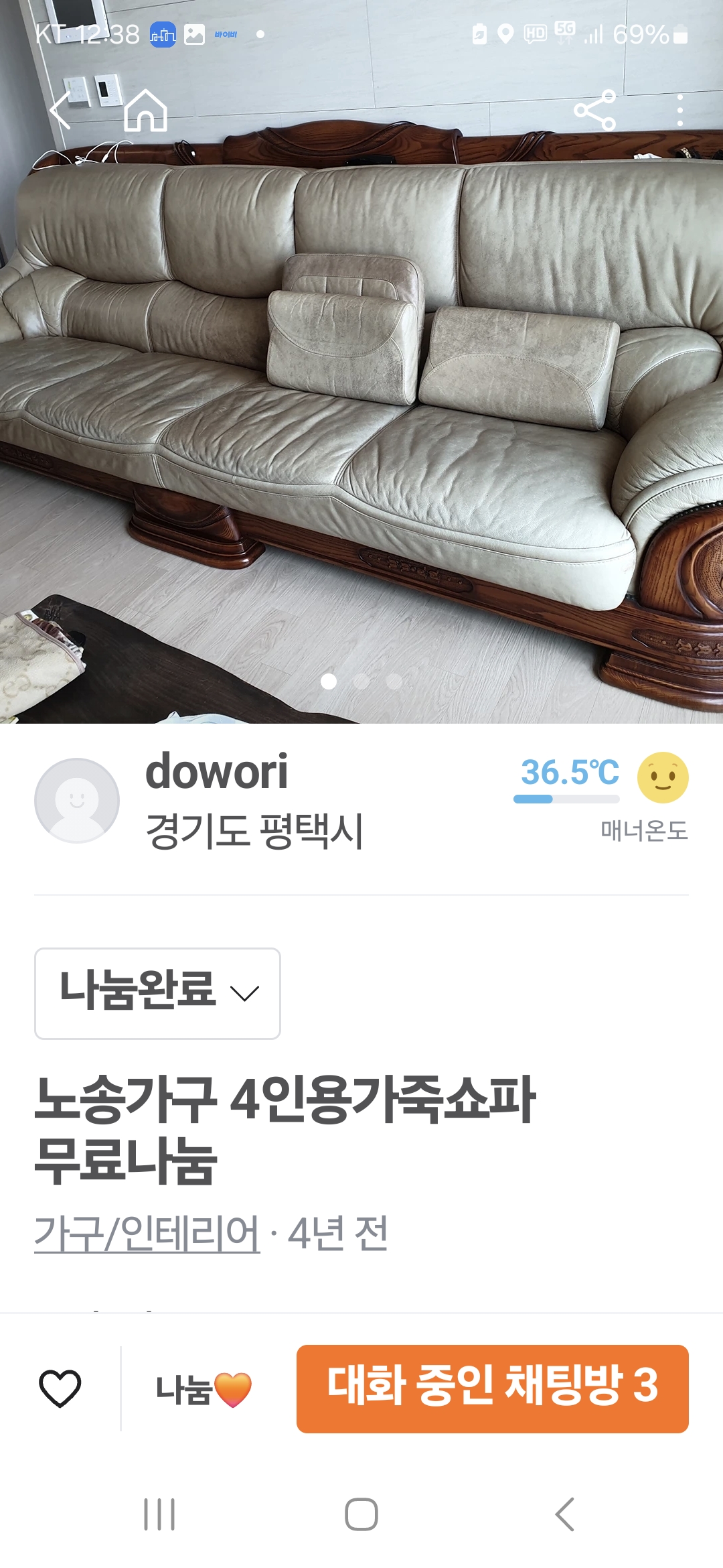 다시 두군데 무료나눔으로 올렸는데 가구라서 쉬이 수요자가 나타나지 않다가