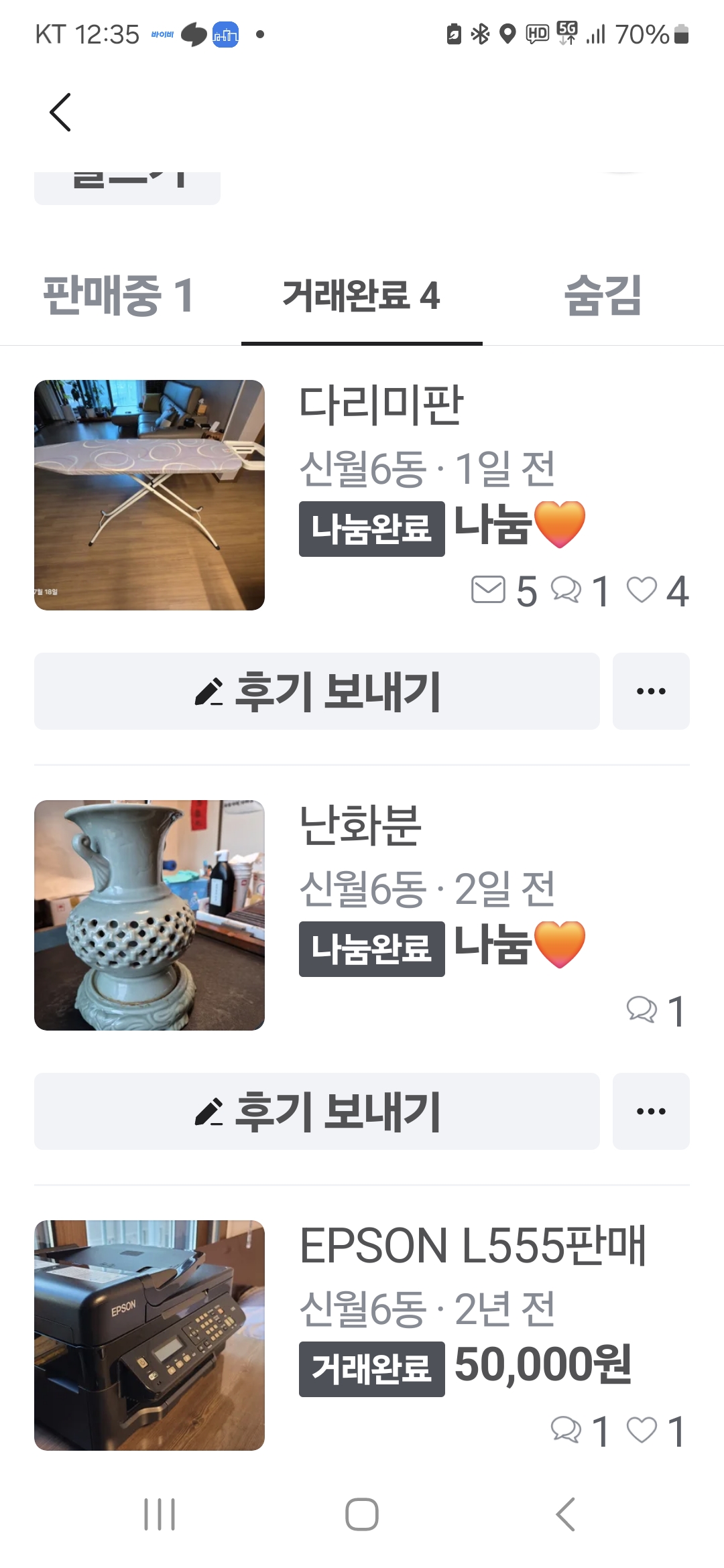 이사를 준비하면서 필요없는 물품을 아파트너와 당근에