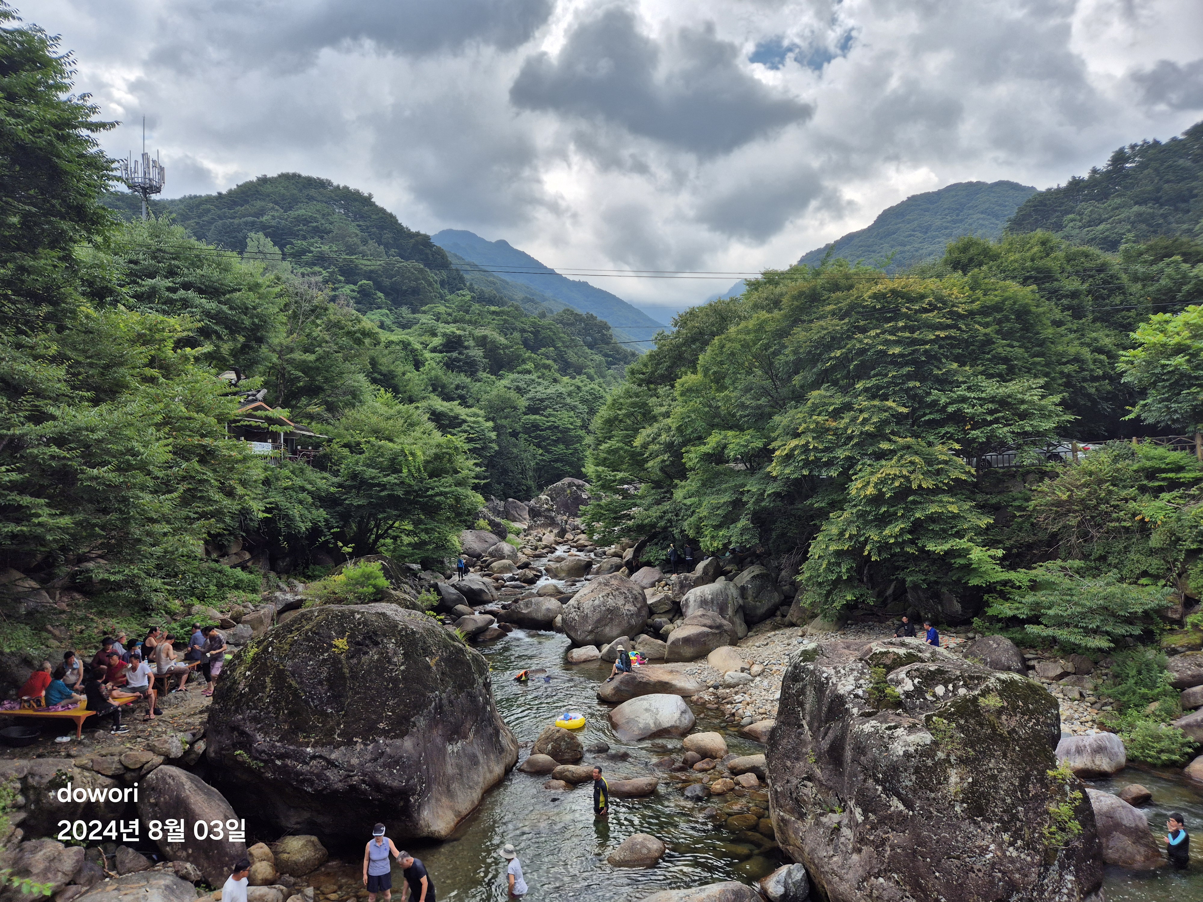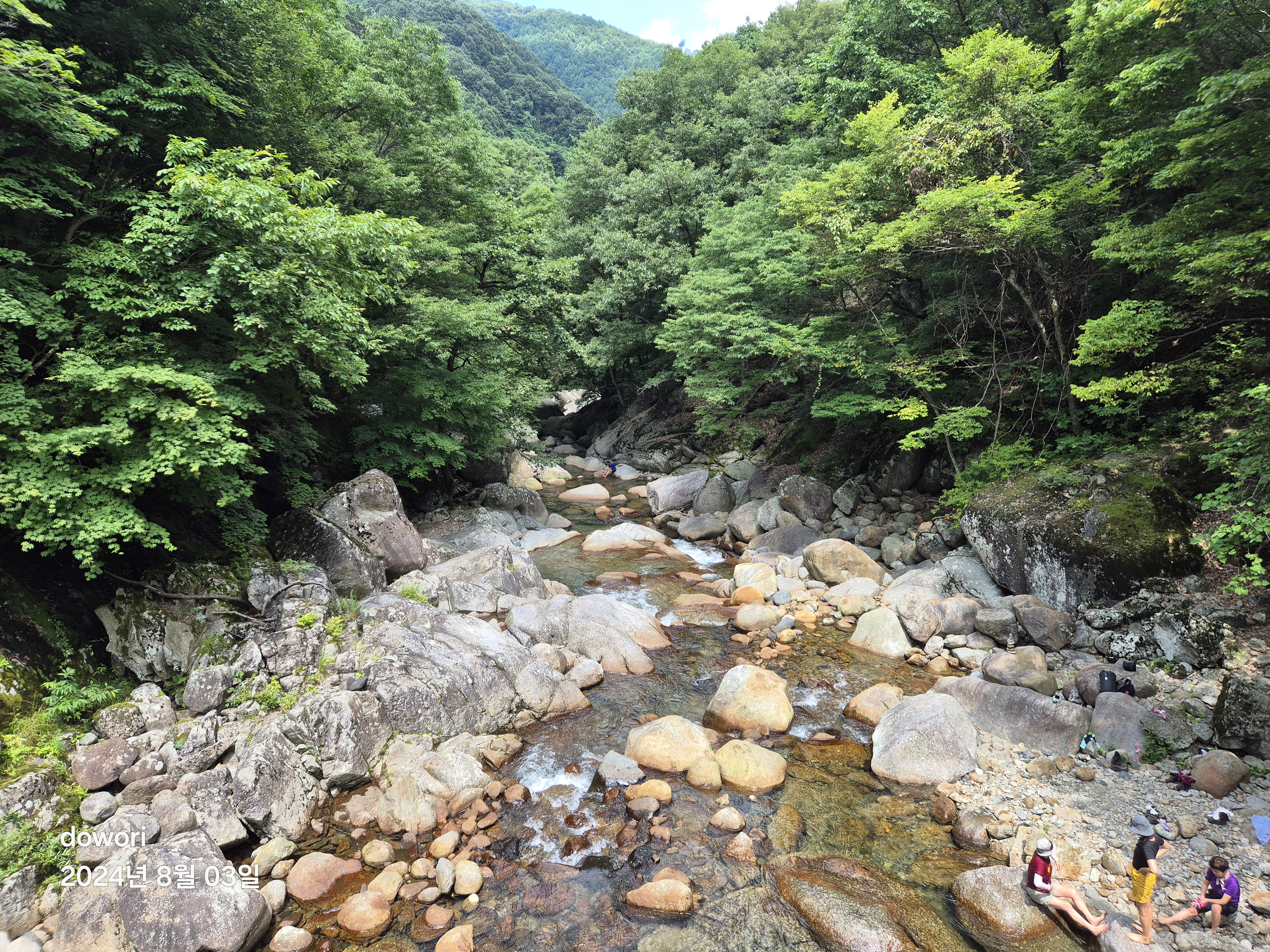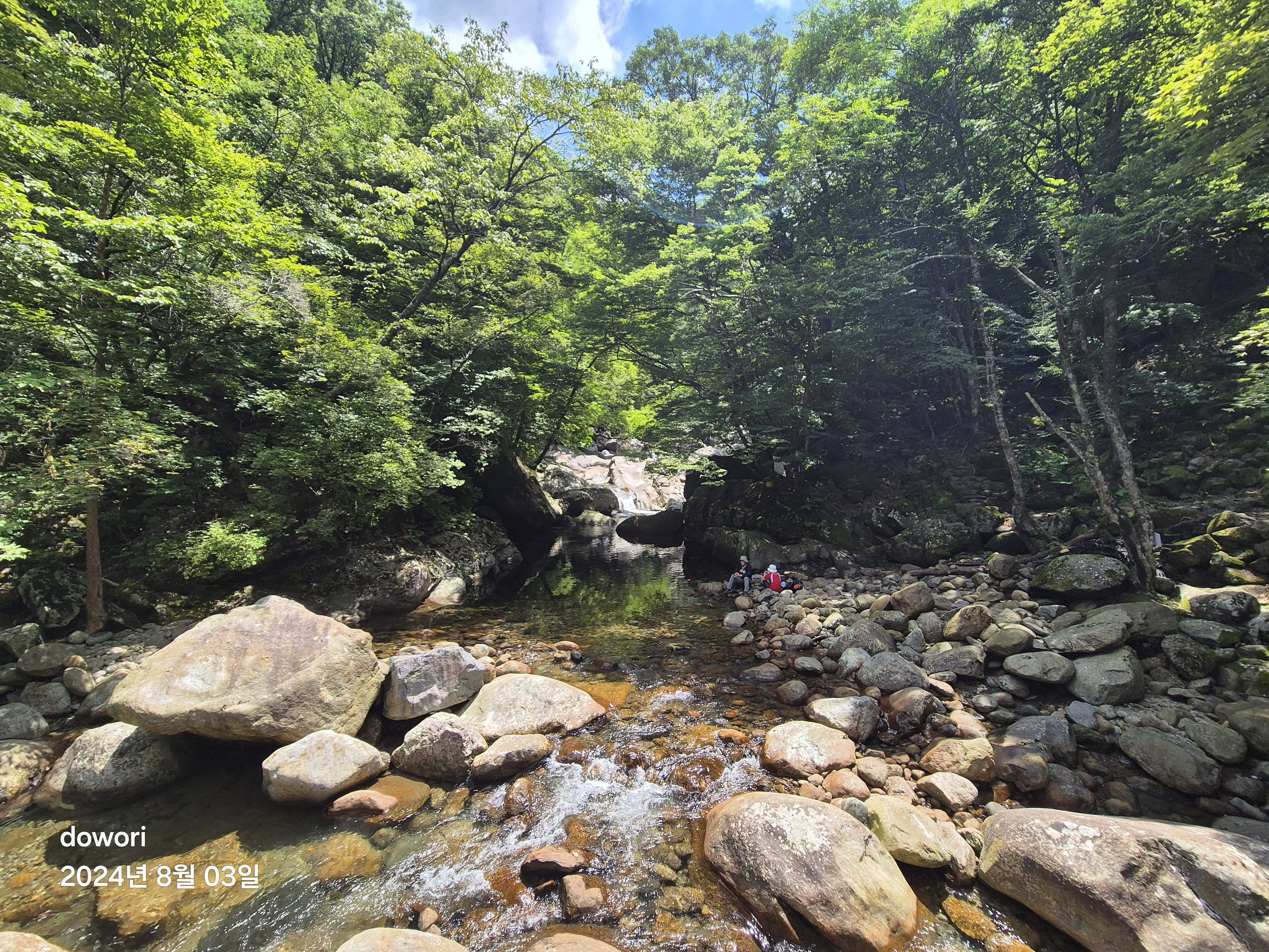 도착한 추성의 솔밭계곡에 들어가니 바위가 뜨겁다.