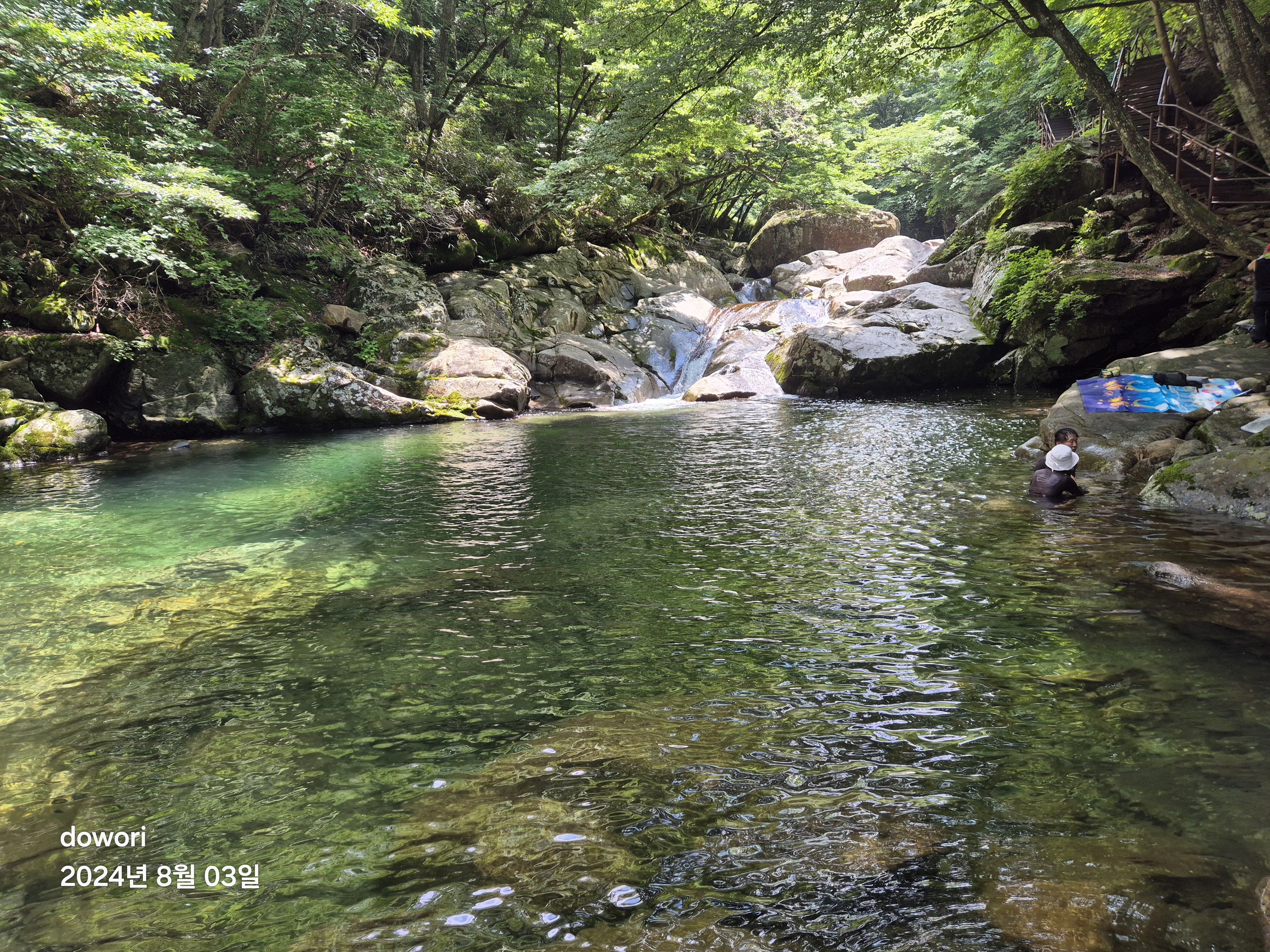 이미 일부 산객은 물속으로 텀벙뛰어 들어있다.
