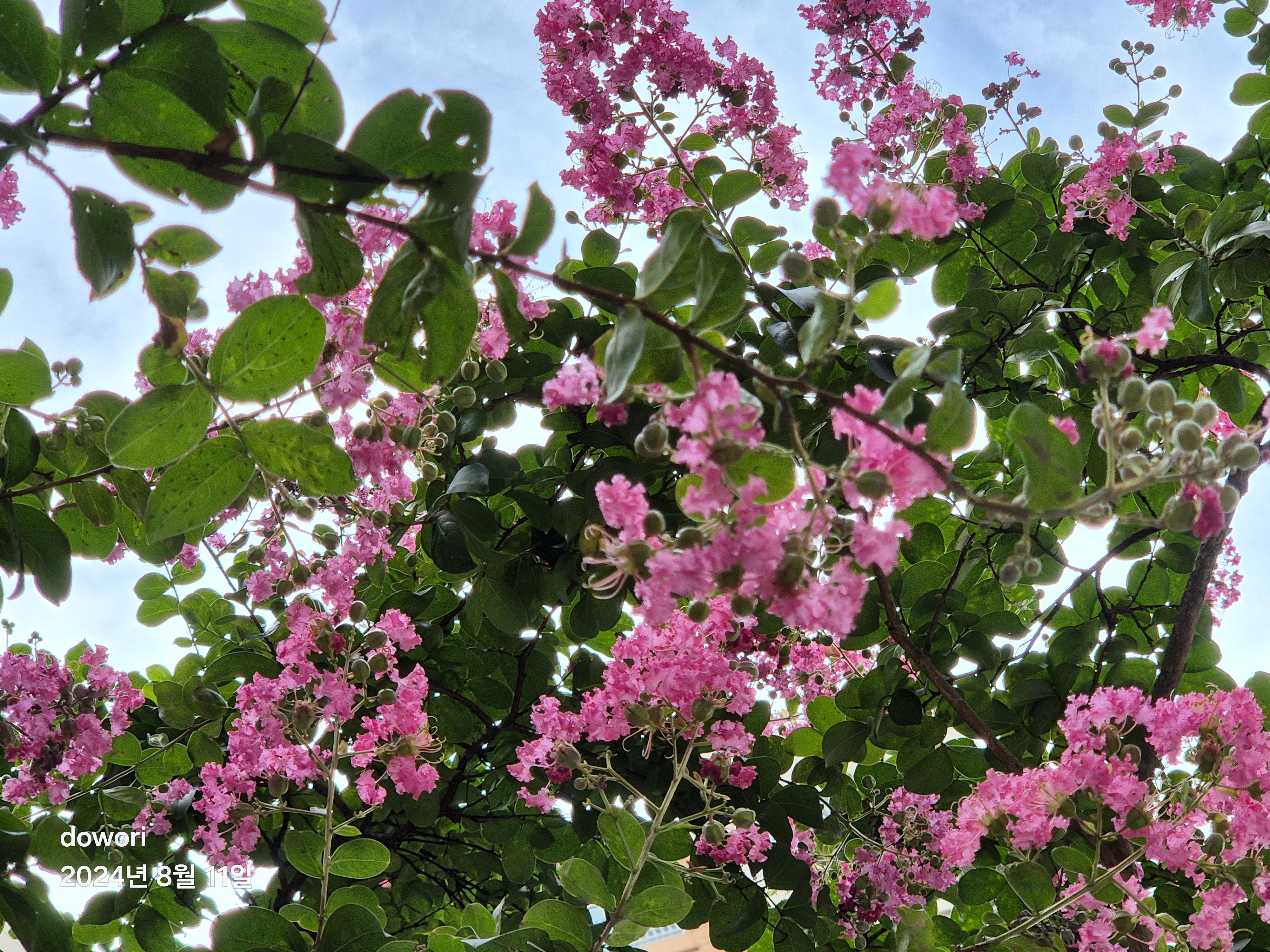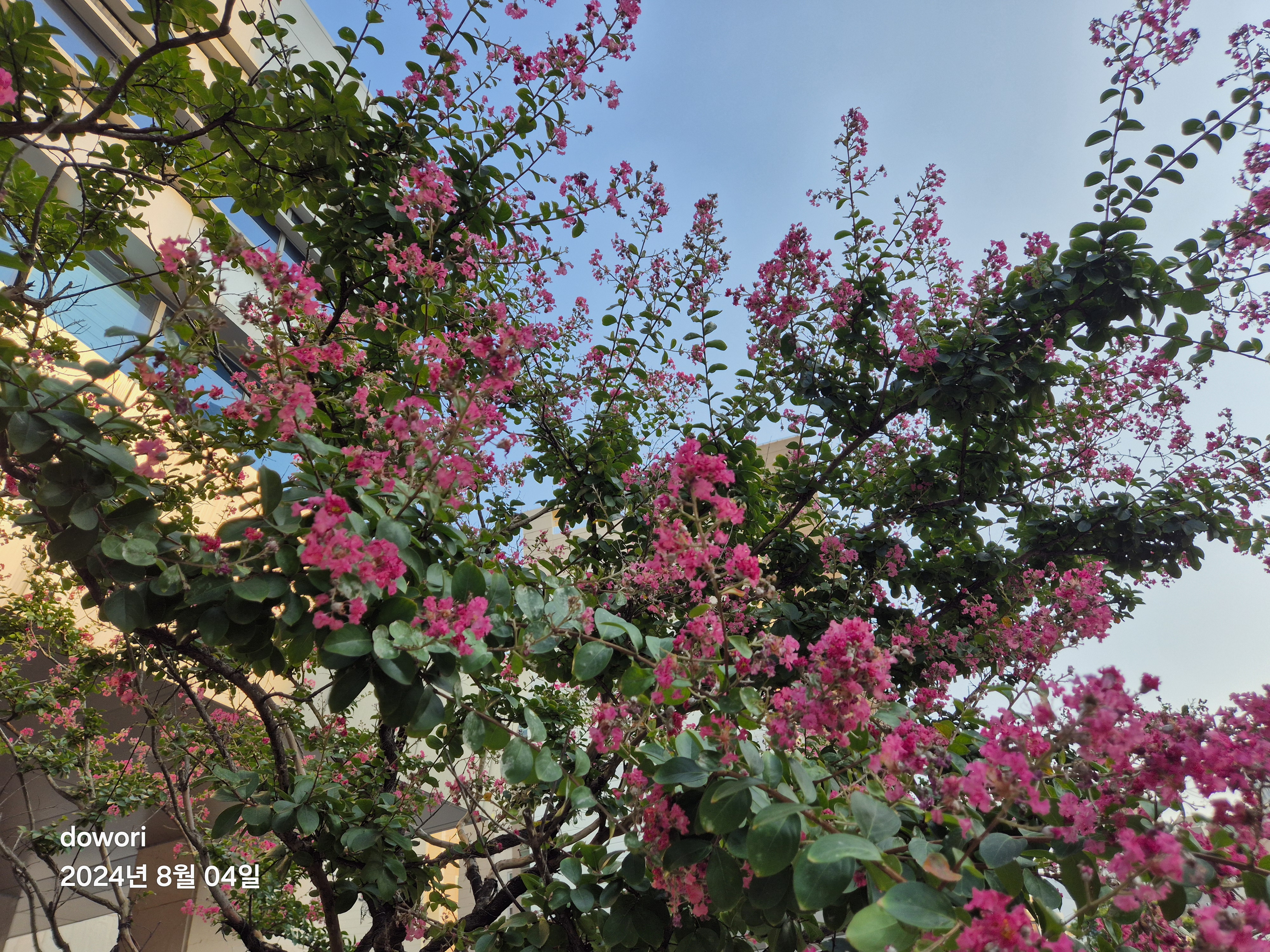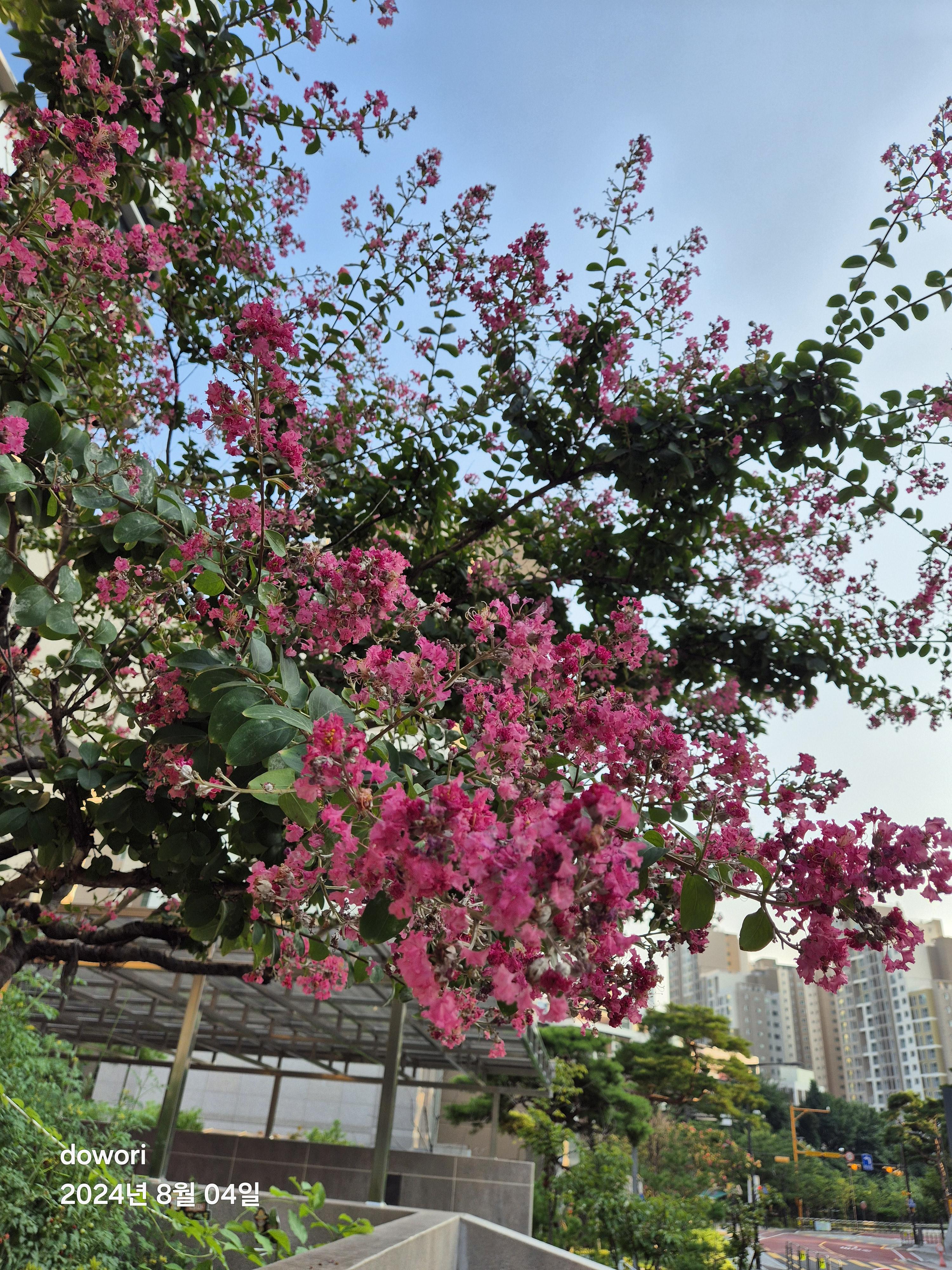 뜨거운 여름철동안 피어있는 꽃나무.