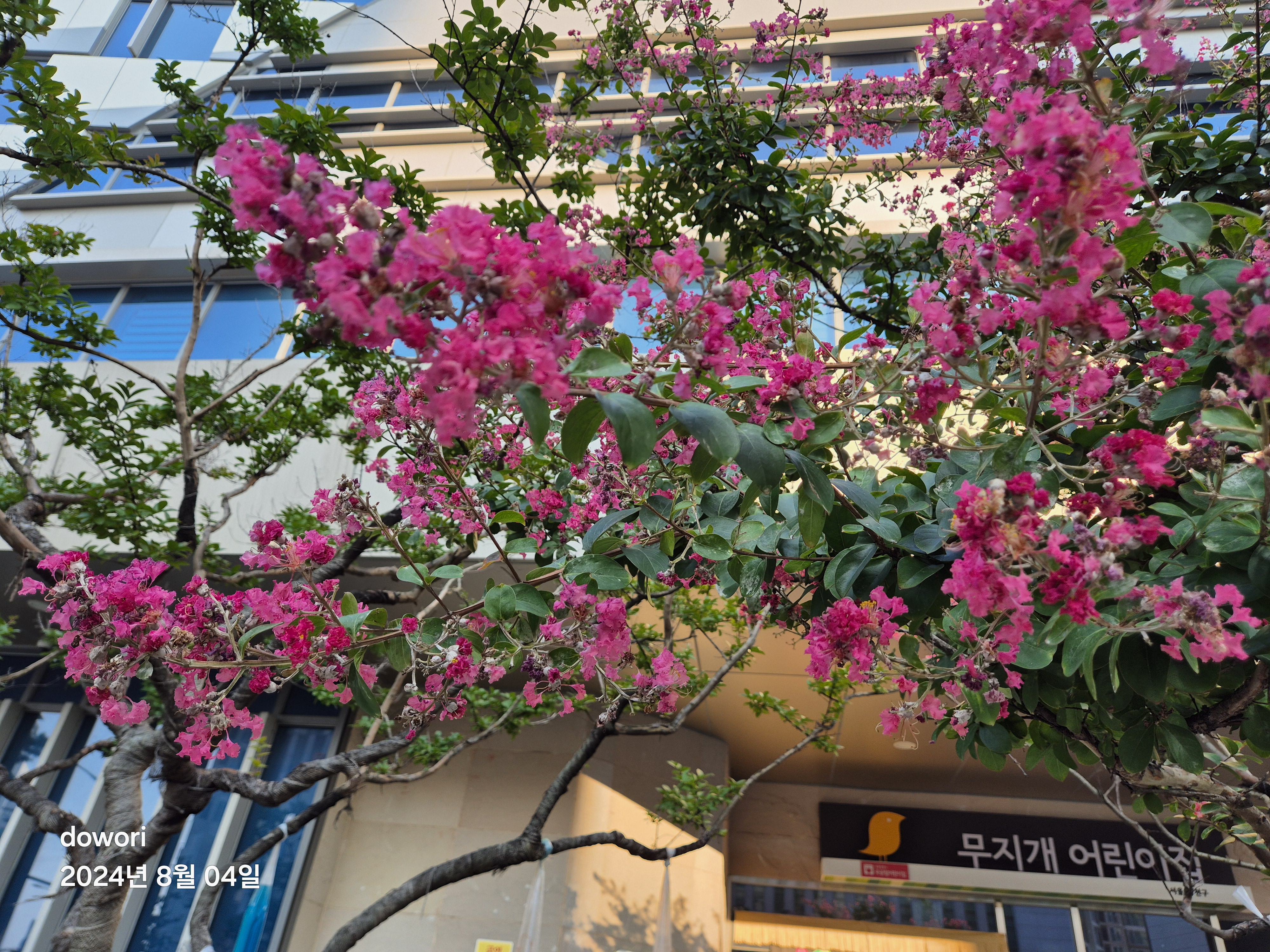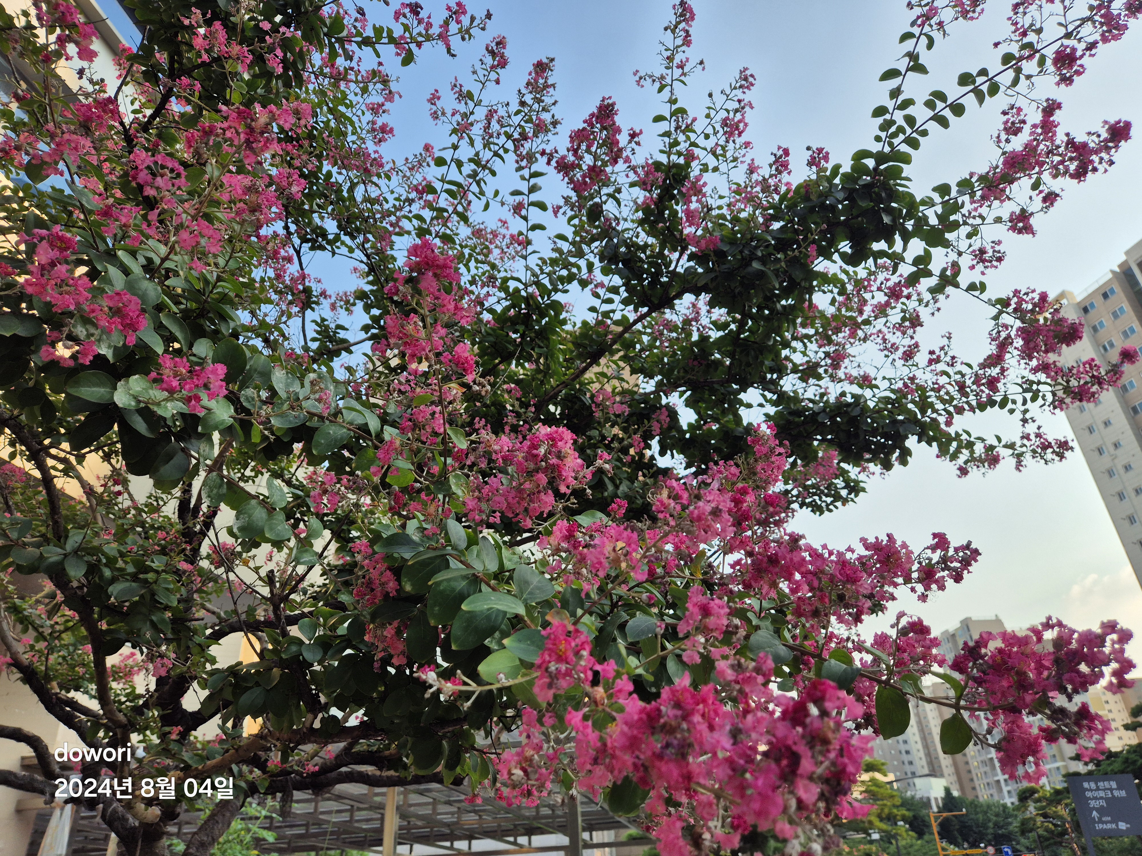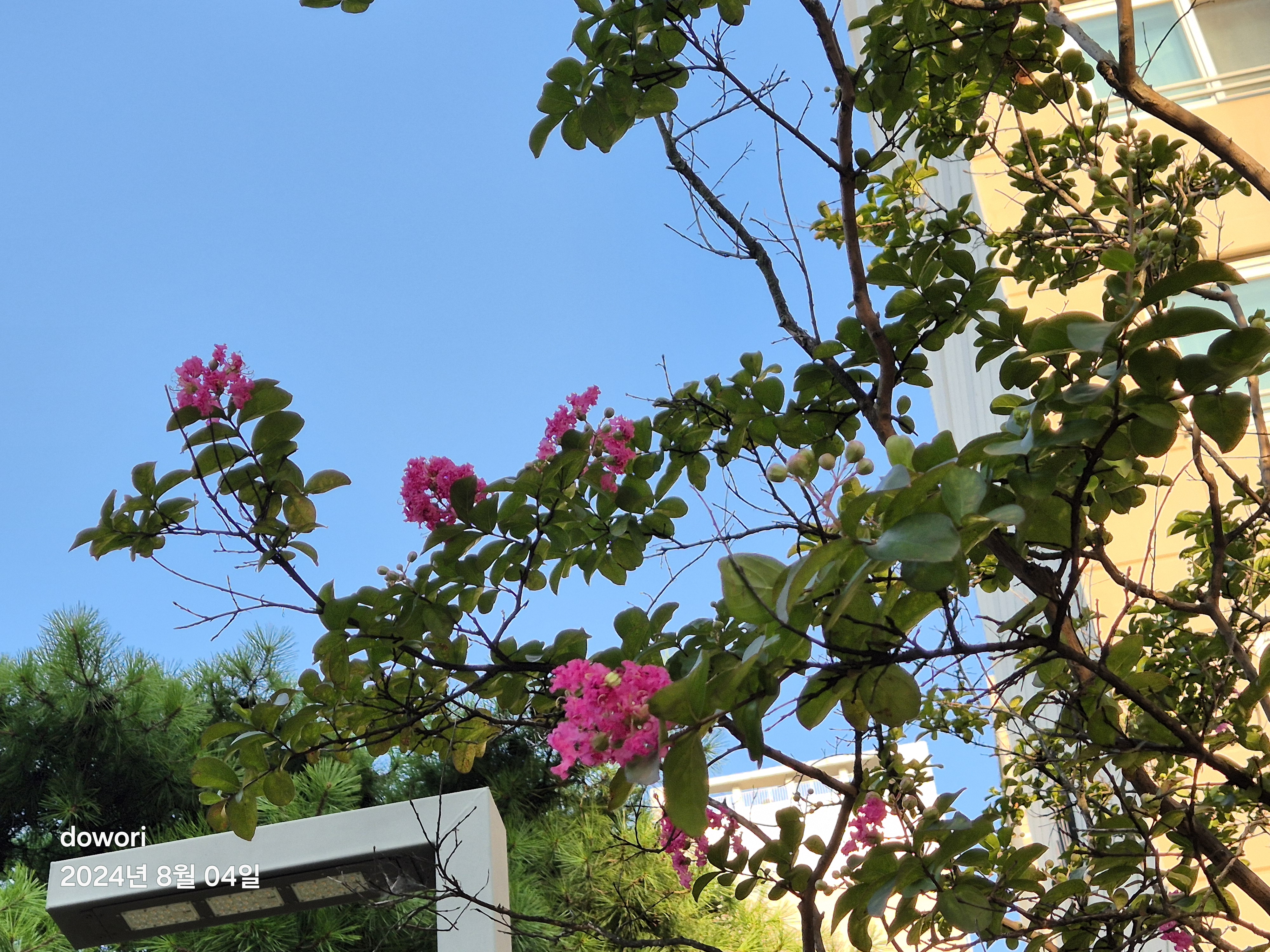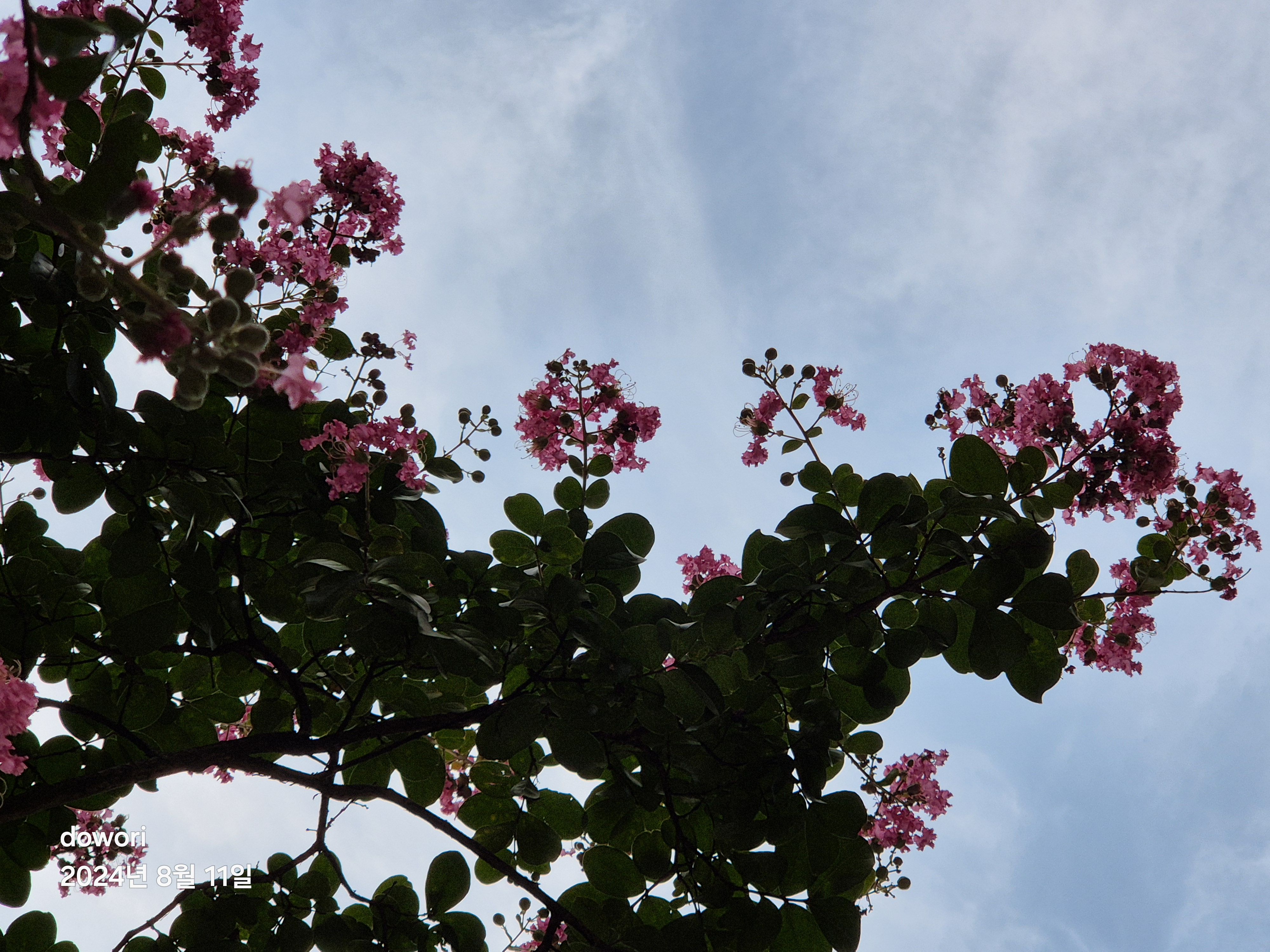 뜨거운 여름철동안 피어있는 꽃나무.