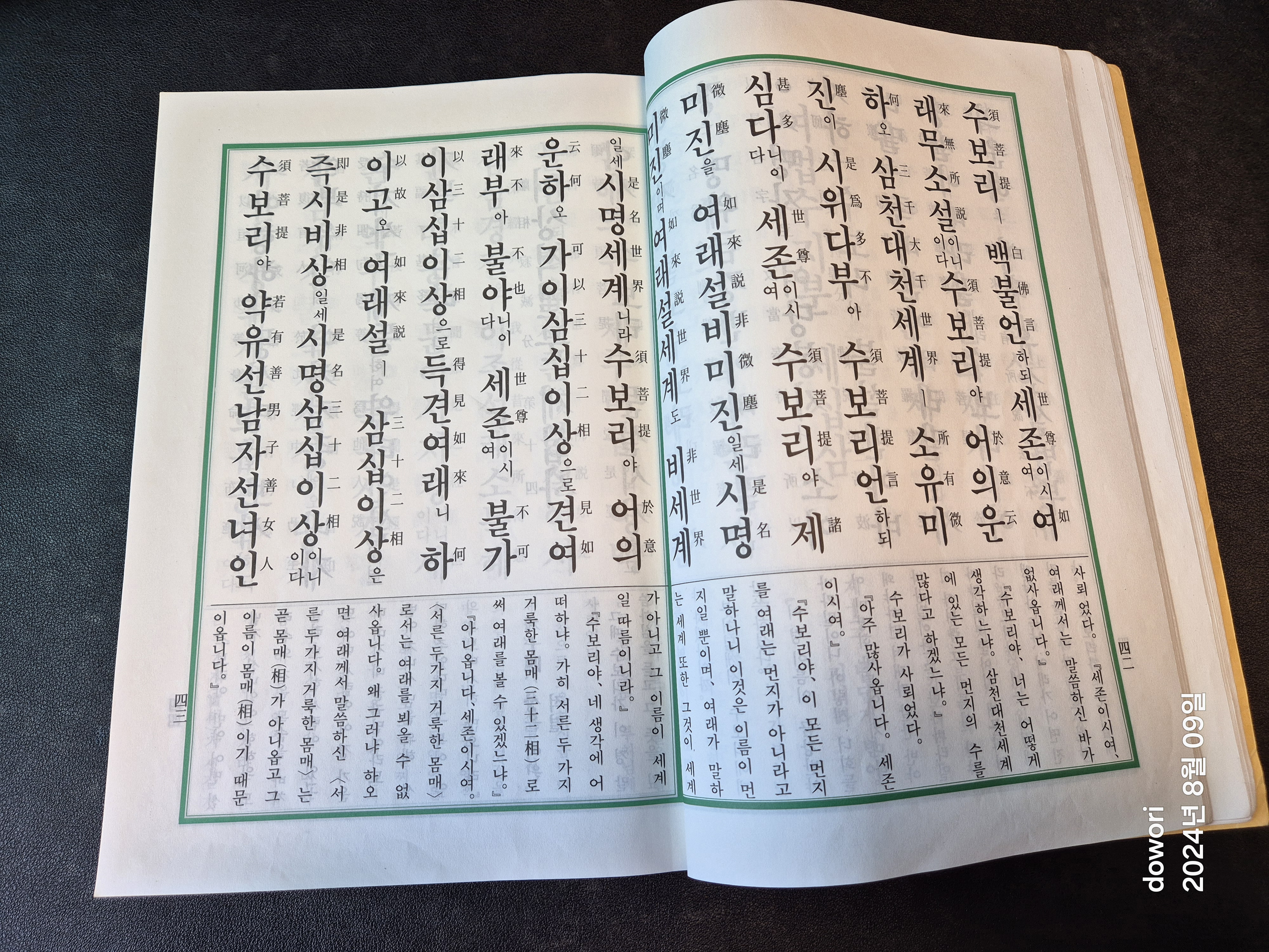 7월초부터 사찰에서 얻어온 금강반야바라밀경을 베껴 써 왔다.