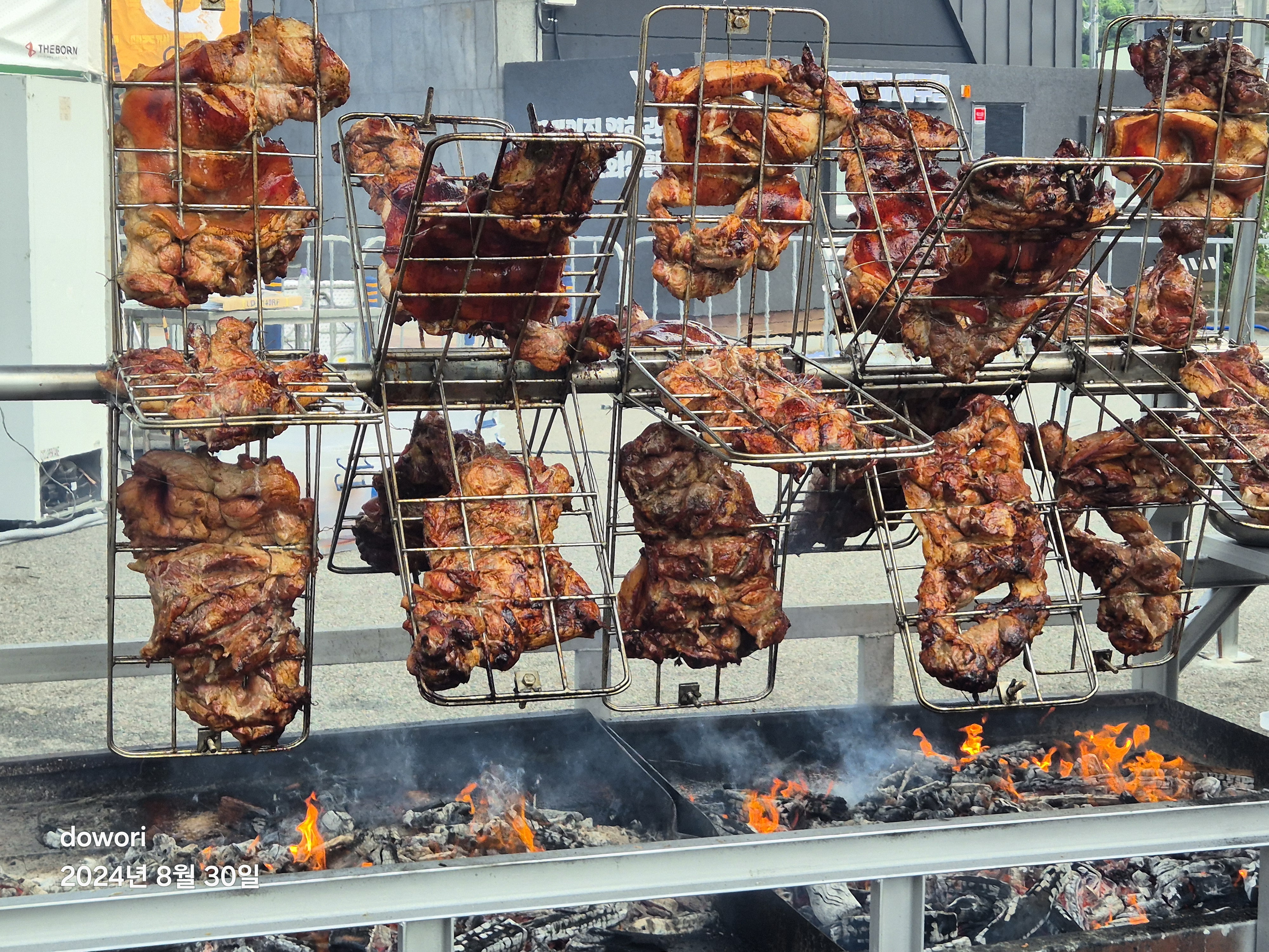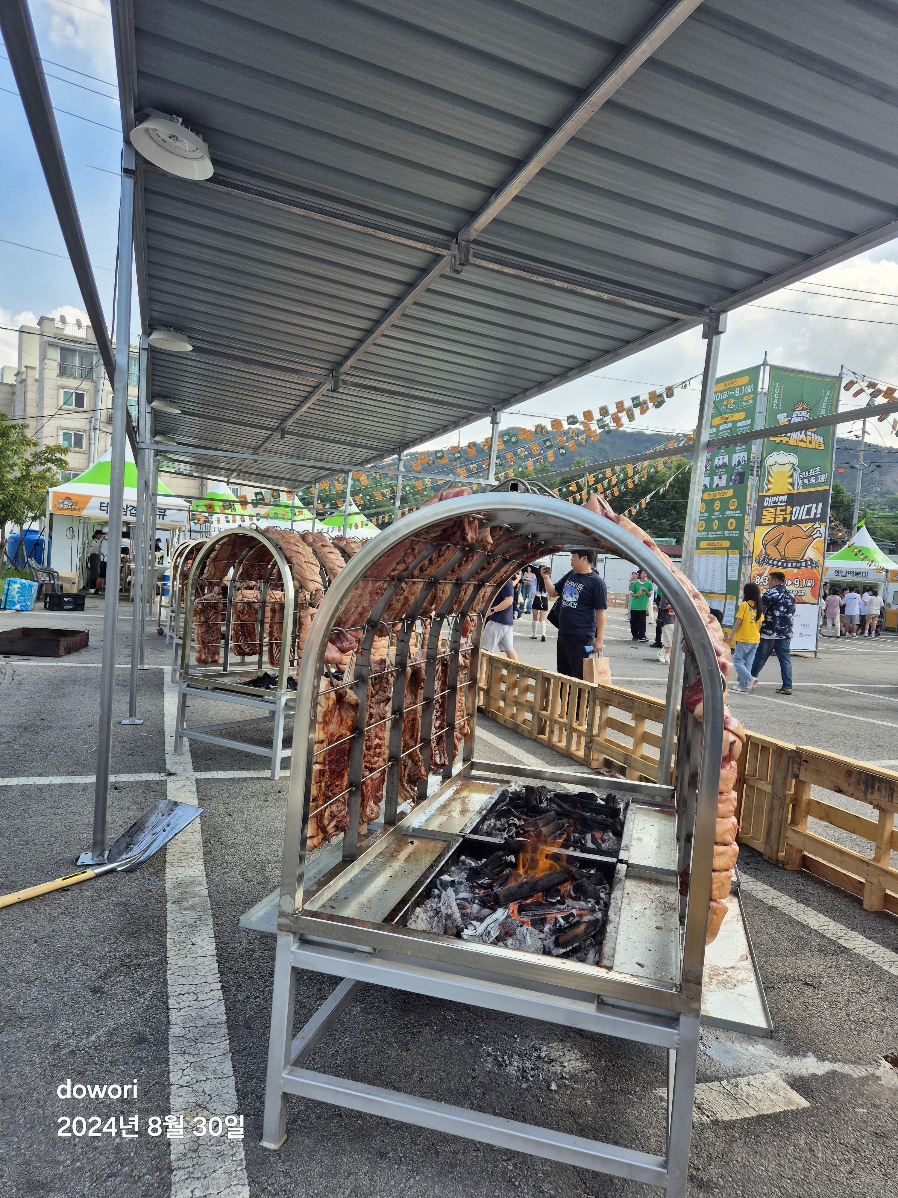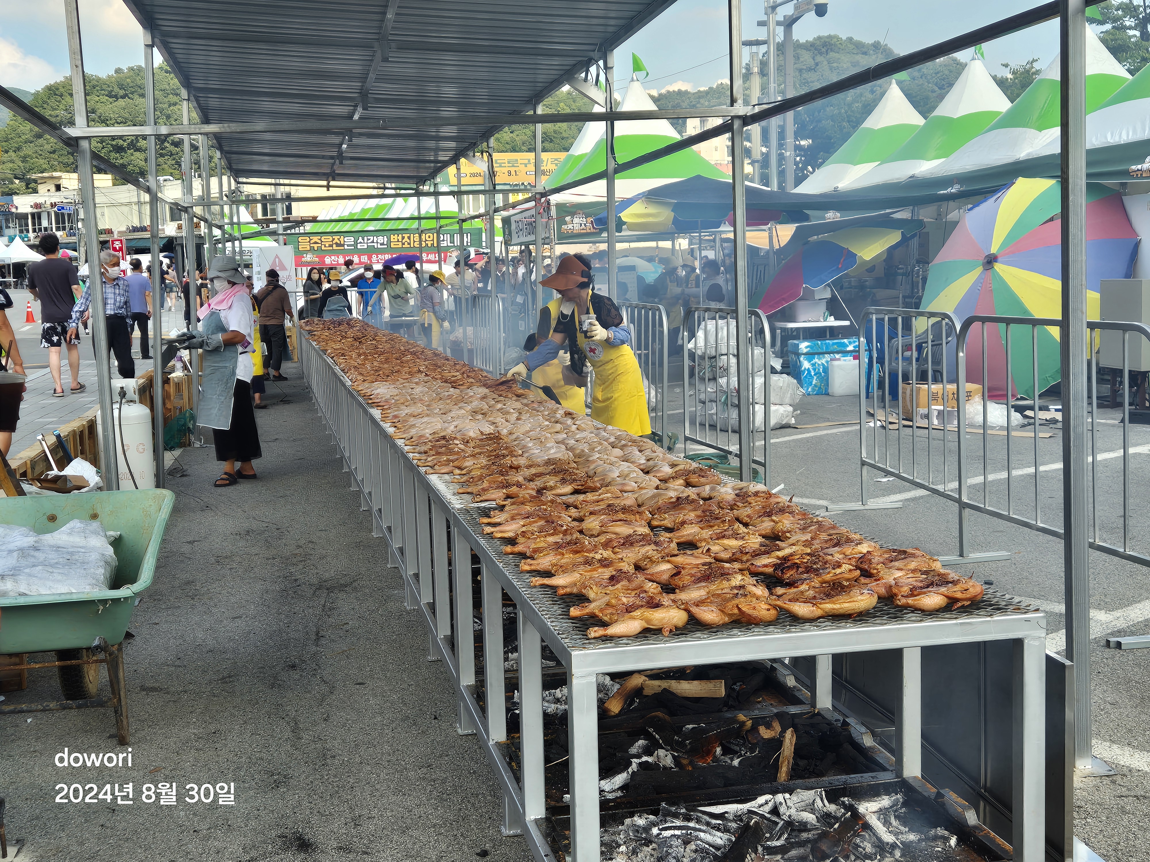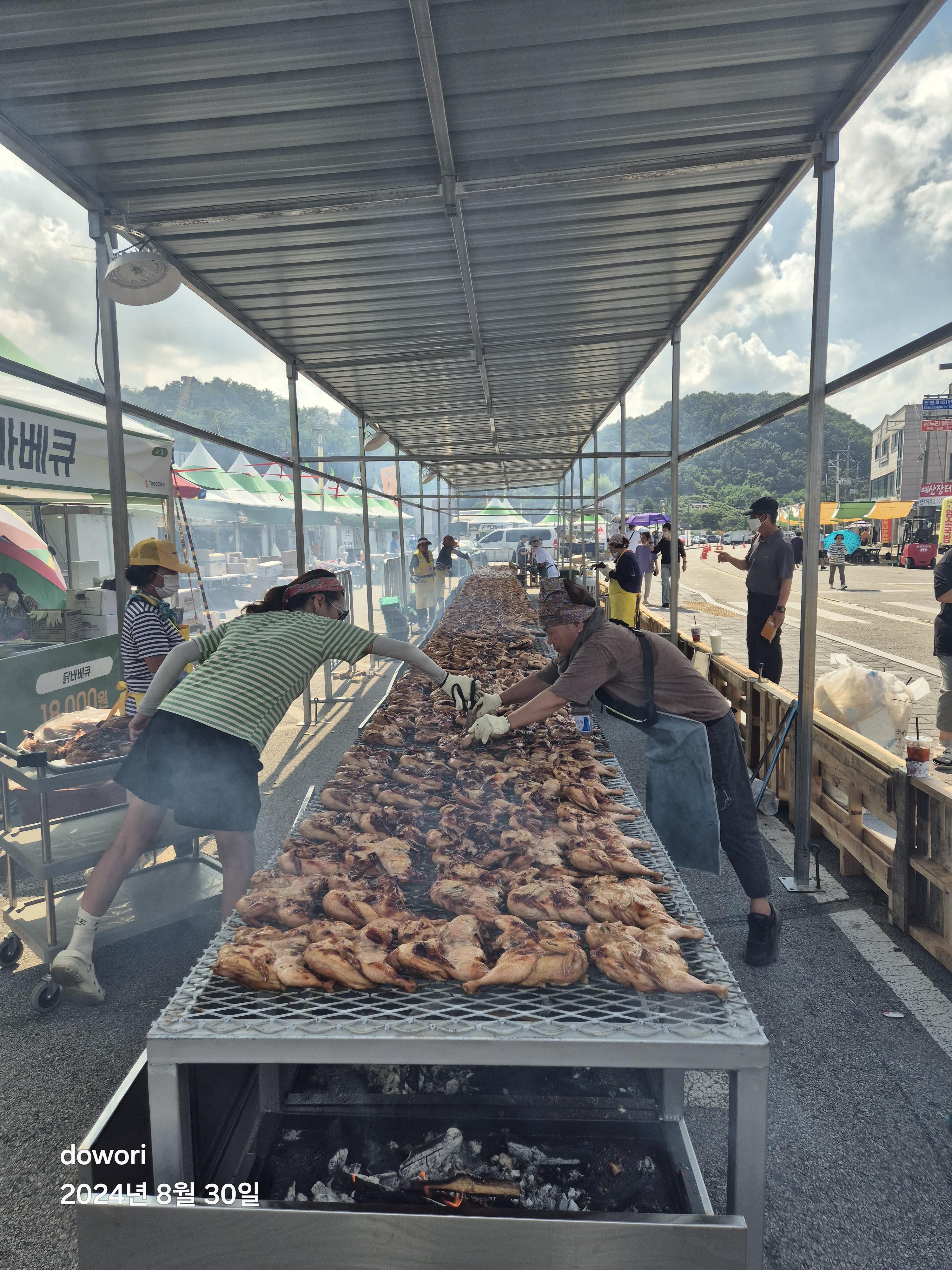 수만은 인파에 사흘동안 치루어지는 페스티발에 엄청난 통닭과 돼지고기가