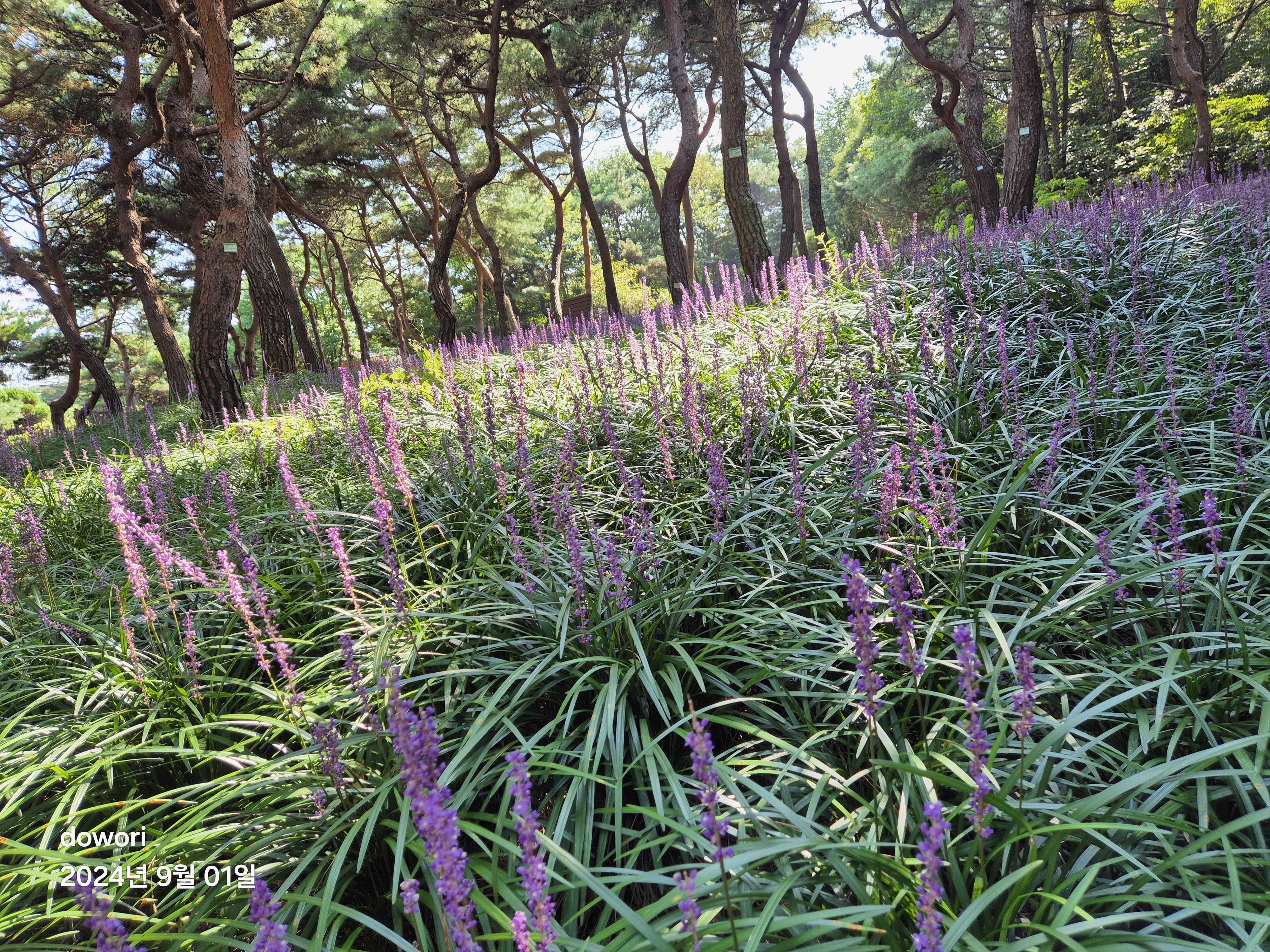 채 되지않아 원점으로 회귀하고 소나무숲아래 맥문동군락을 감상하고는